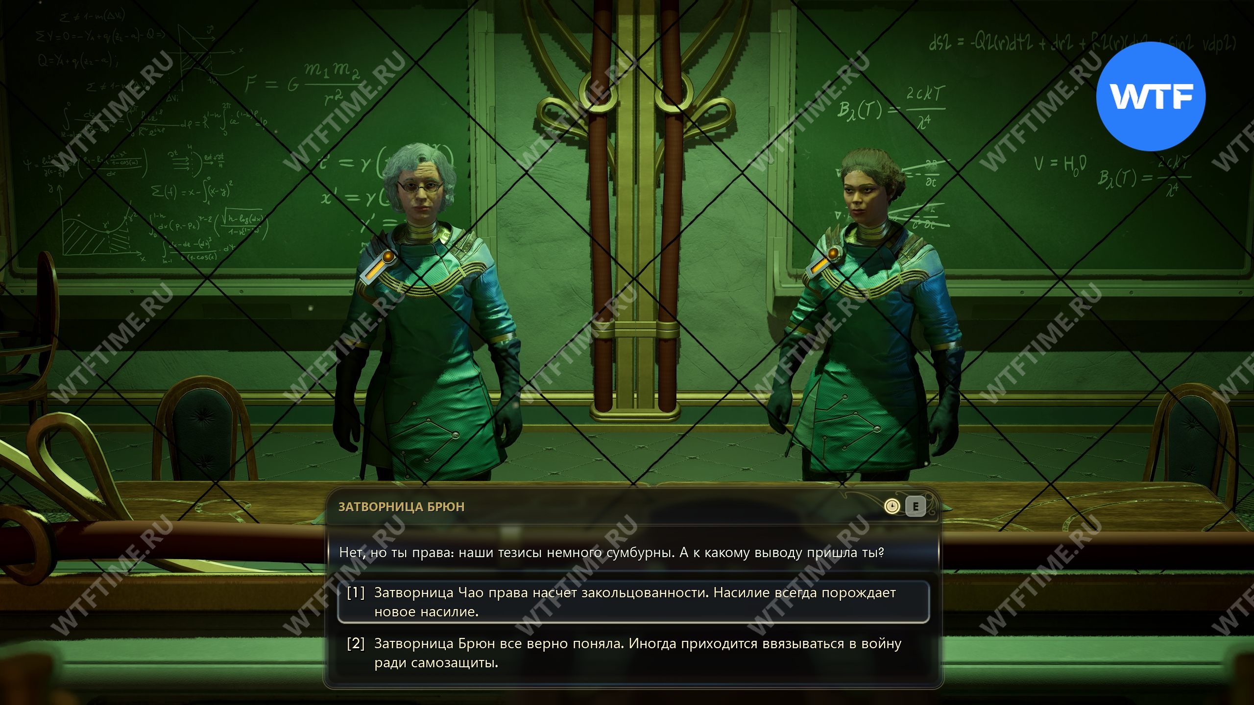 Это приведет вас в небольшой дворик с врагами. Из него пройдите через двери на юго-западе, чтобы попасть в небольшую комнату с затворницами Брюн и Чао, выполняющими вычисления на доске.
