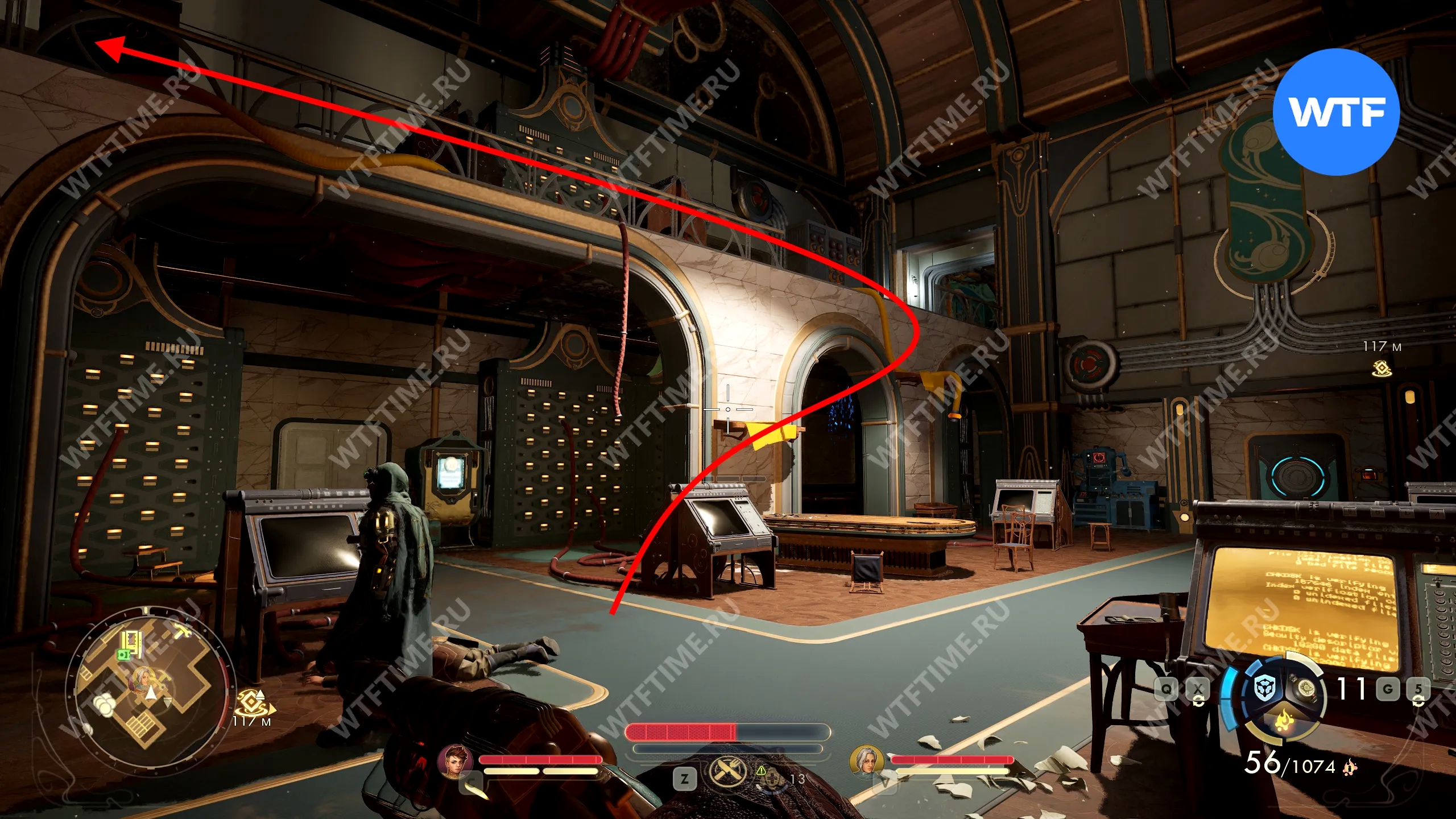 Если нужных навыков у вас нет, то выйдите на балкон через проем с красными стрелками справа и идите по нему налево, чтобы найти хорошо спрятанное вентиляционное отверстие.