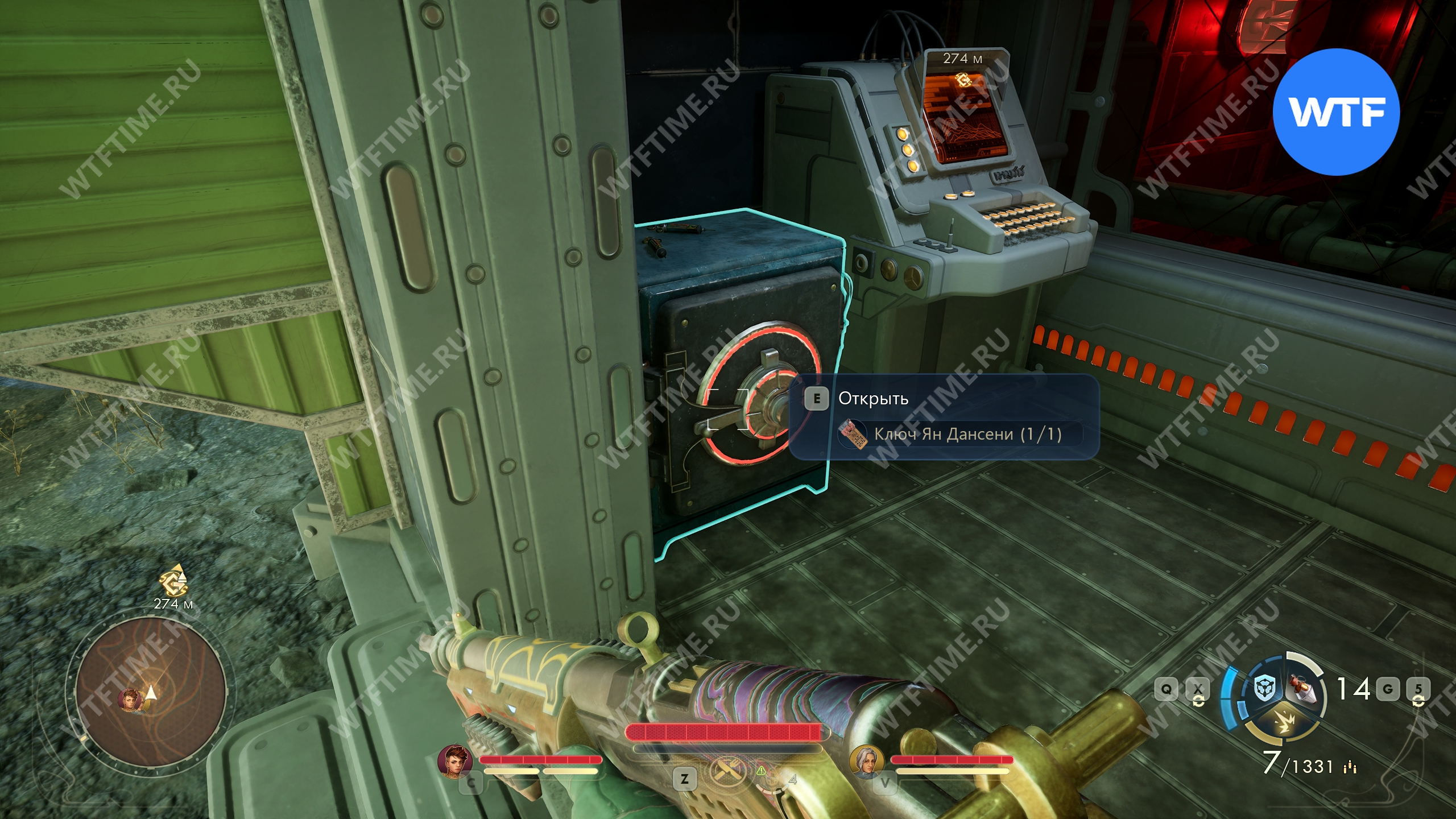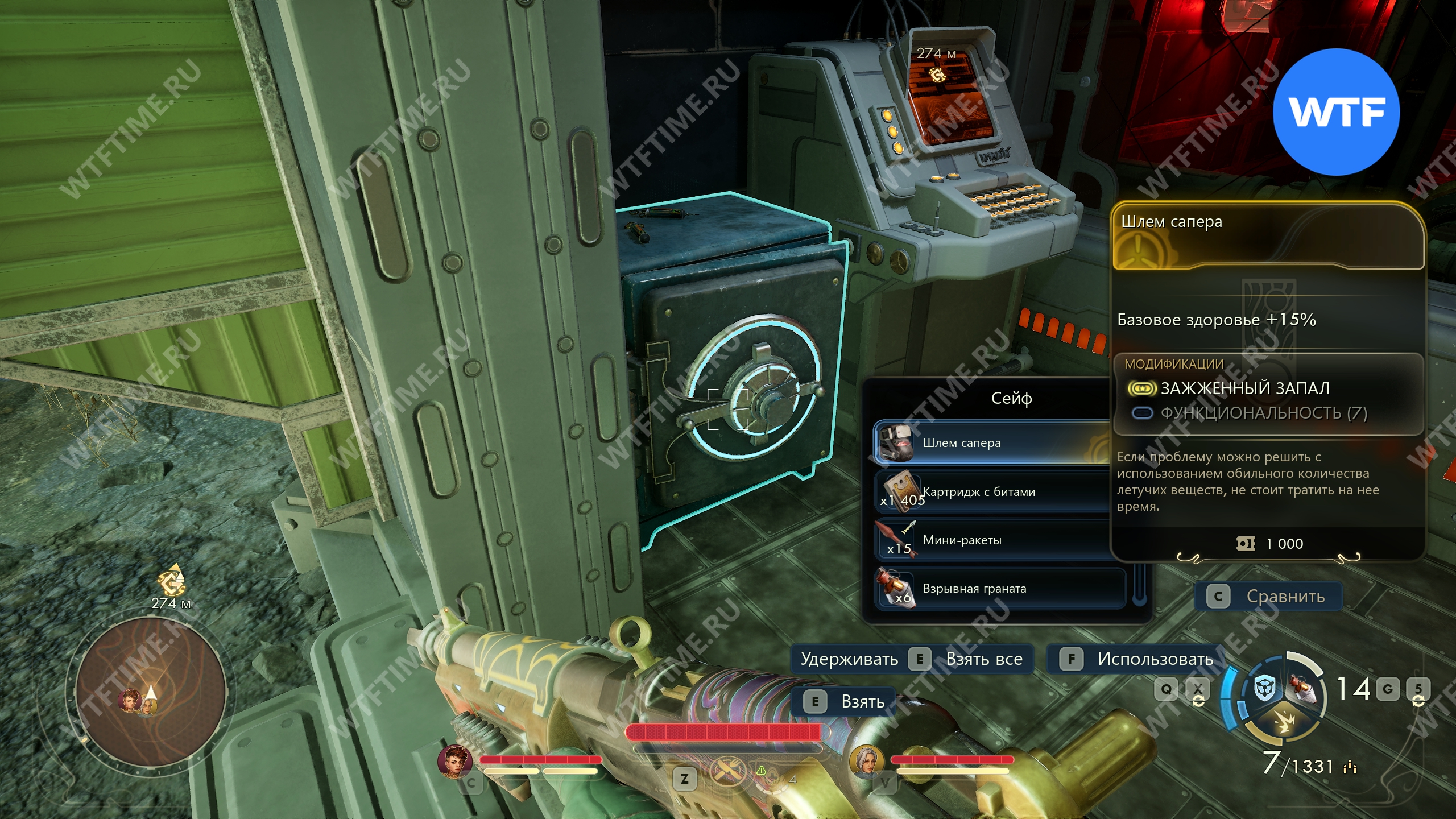 Затем идите к небольшому зеленому зданию в самой дальней точке базы и откройте сейф, используя найденный ранее ключ. Внутри лежит уникальный «Шлем сапера», 1405 бит, набор мини-ракет и гранат.