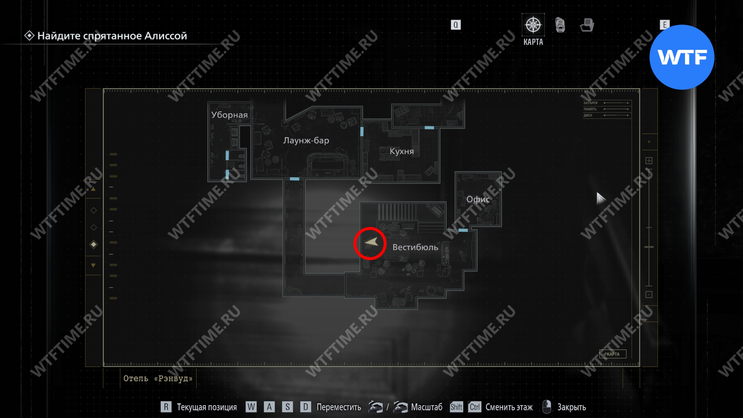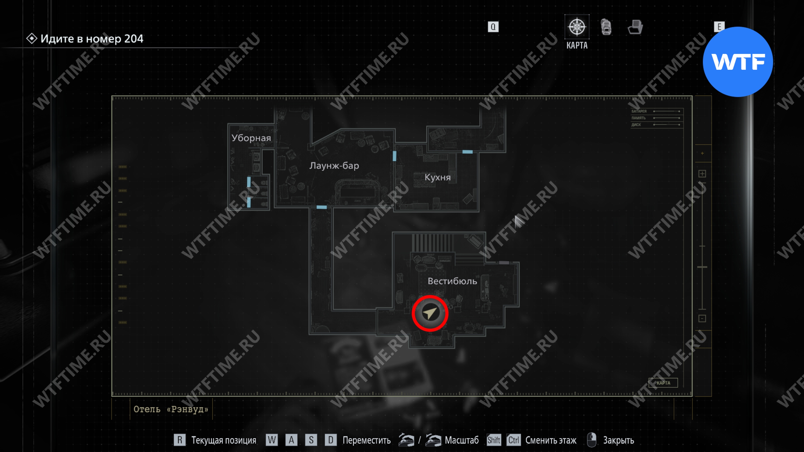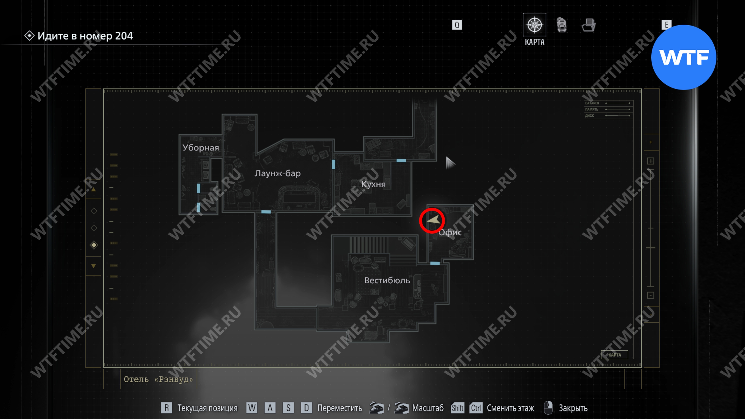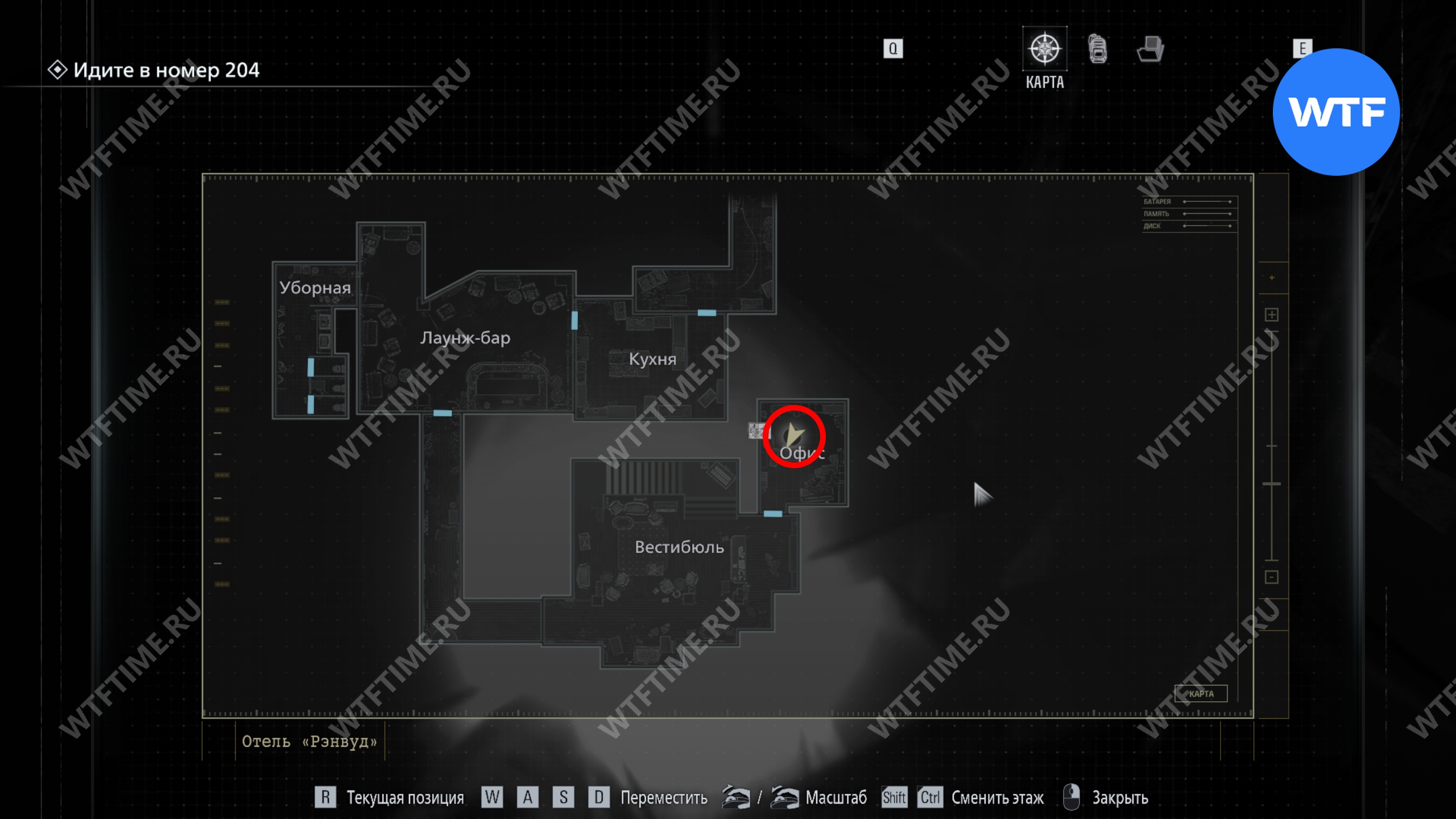 В офисе на стене справа от стола также висит план отеля «Рэнвуд», который позволит вам открыть карту этой локации. Обратите внимание, что документом он не считается и для достижения не нужен.