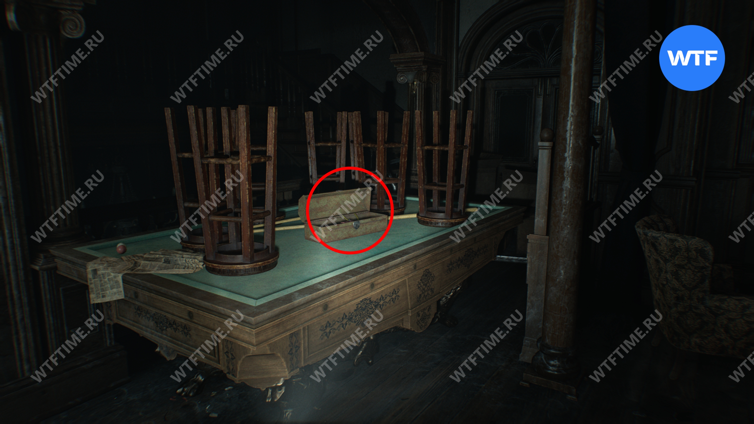 Вернитесь в вестибюль и поднимитесь по лестнице на второй этаж. Сразу после этого на бильярдном столе слева от вас вы найдете кусачки.