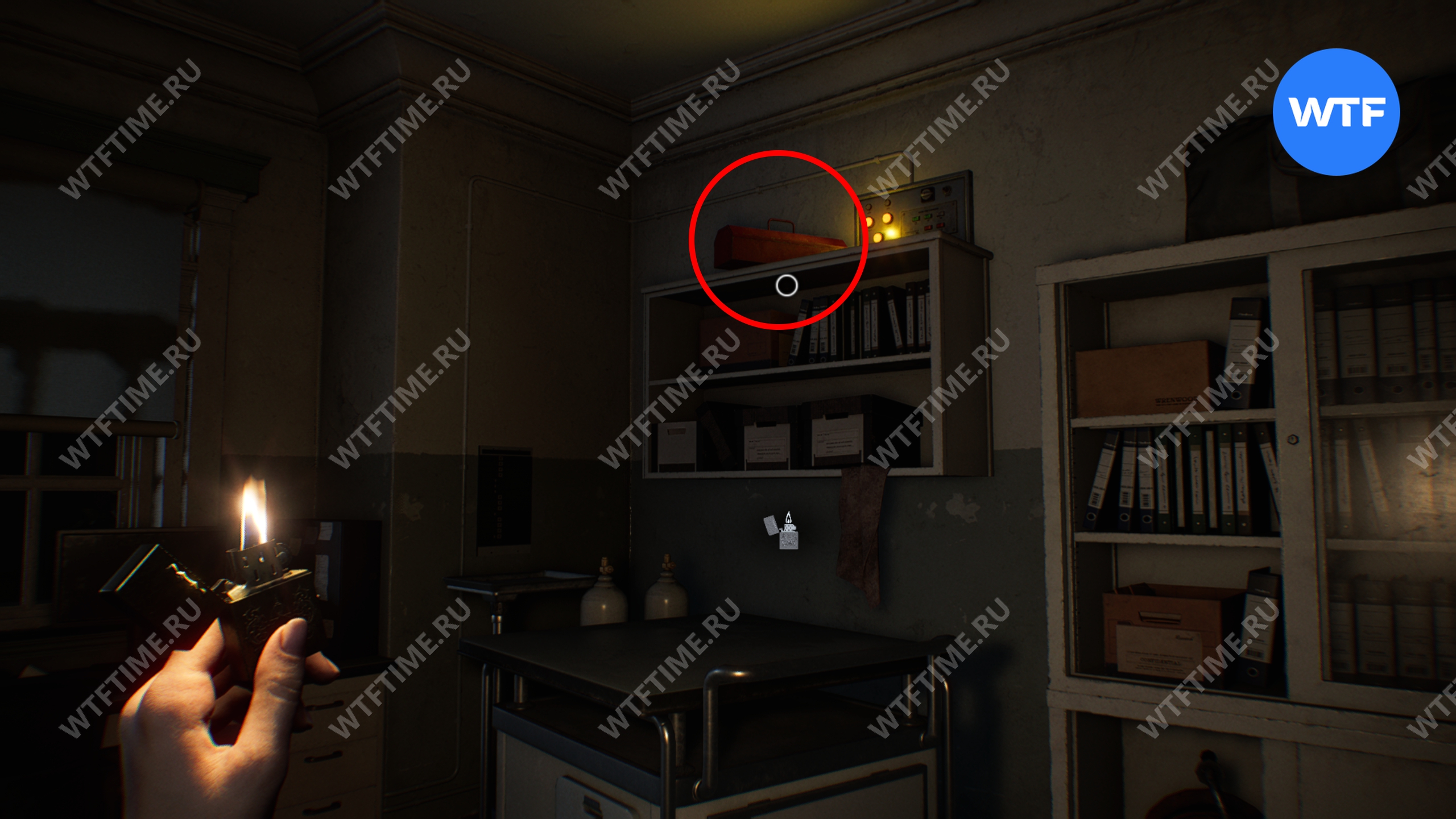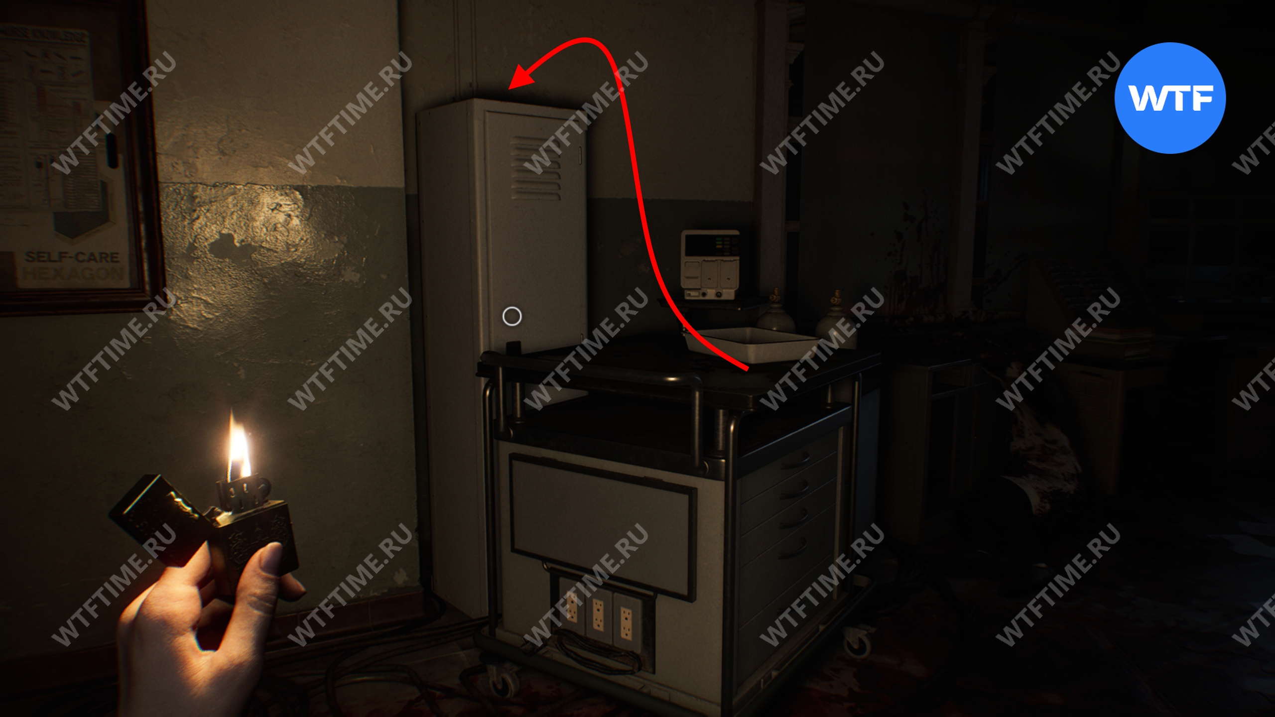 Теперь отправляйтесь в палату 202 и откройте шкаф в дальнем левом углу. Внутри вы найдете записку на картонной коробке, в которой будет сказано, что отвертка теперь лежит в ящике с инструментами на посту медсестры.