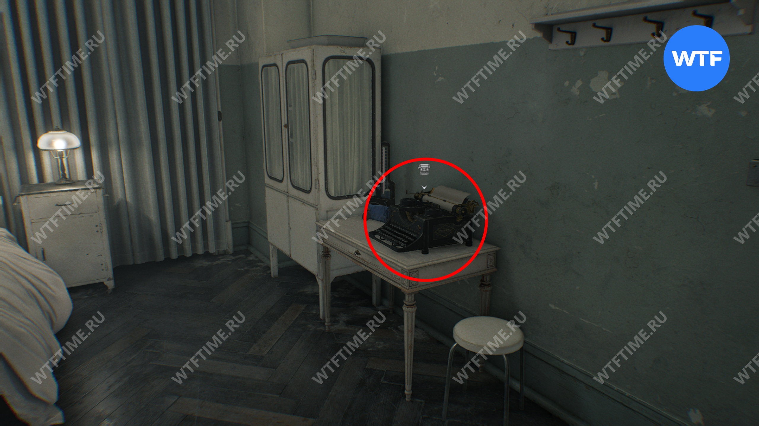 Теперь с этим ключом отправляйтесь к палате 201, в которую ведет дверь с ангелом. Вы проходили мимо неё по коридору чуть ранее. Прямо у входа будет стоять печатная машинка, так что вы наконец-то сможете сохраниться.