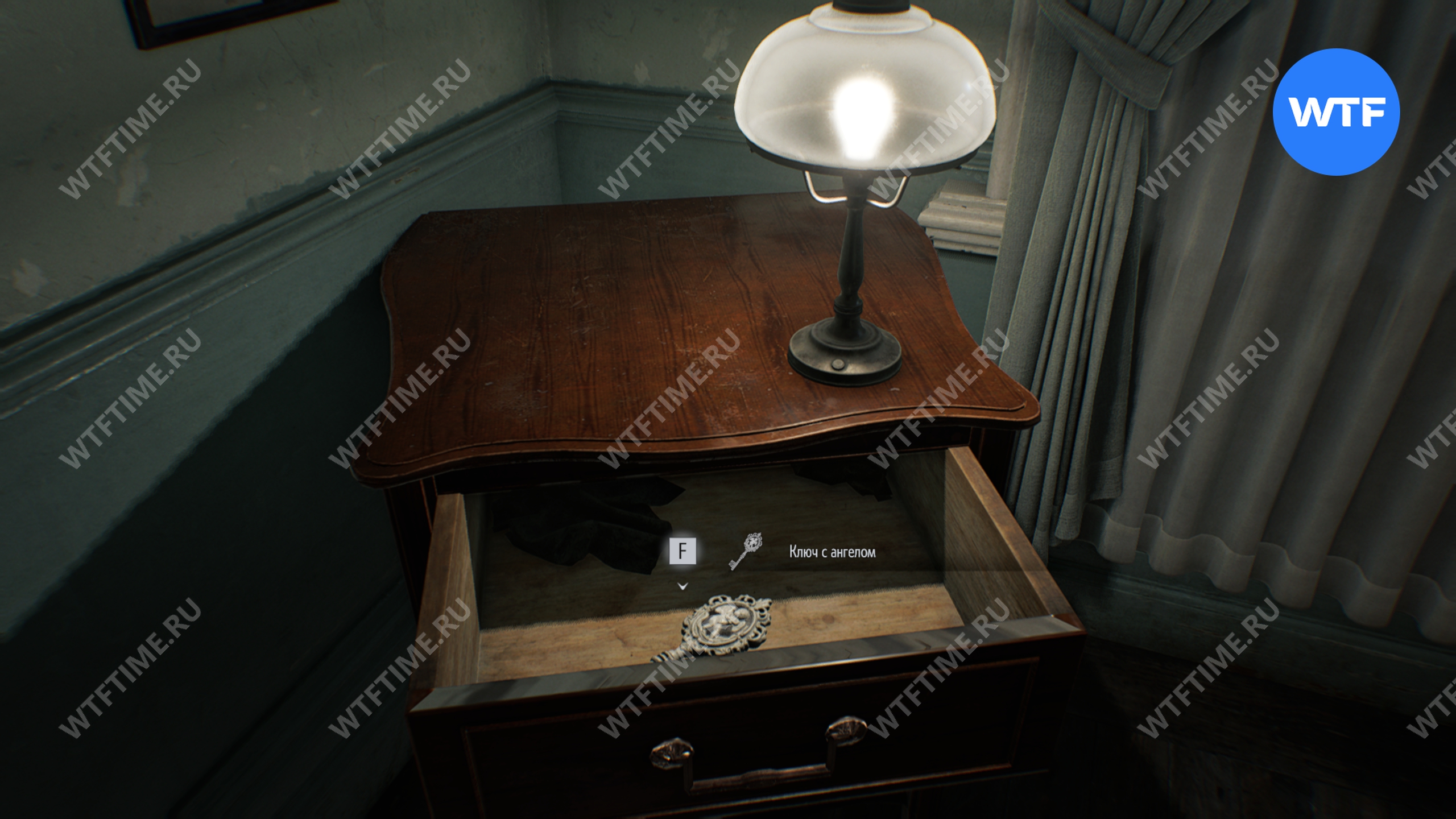 Однако пока наша цель — это тумбочка, стоящая в тупике после запертой решетки и предохранительно щитка. Откройте ящик и заберите оттуда ключ с ангелом.