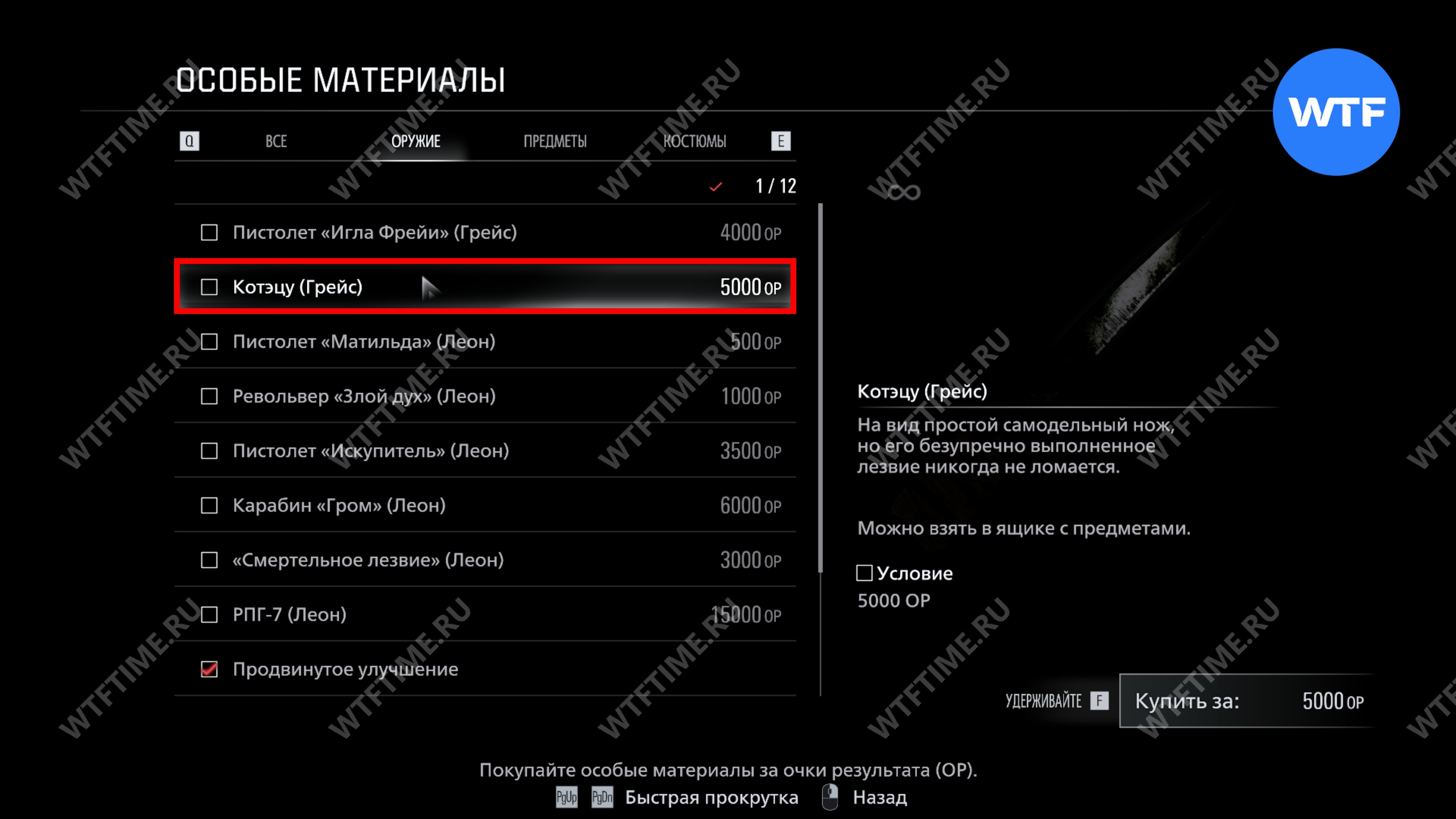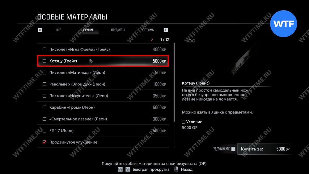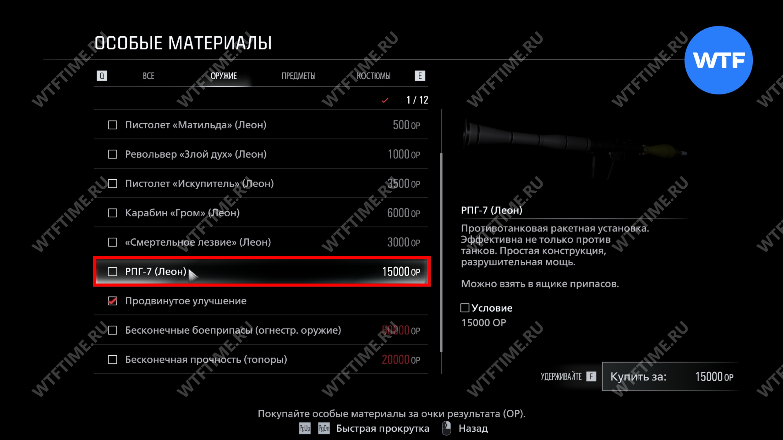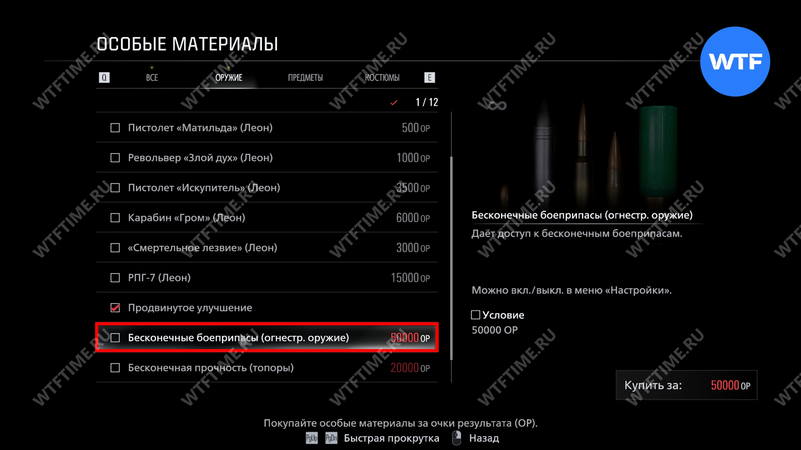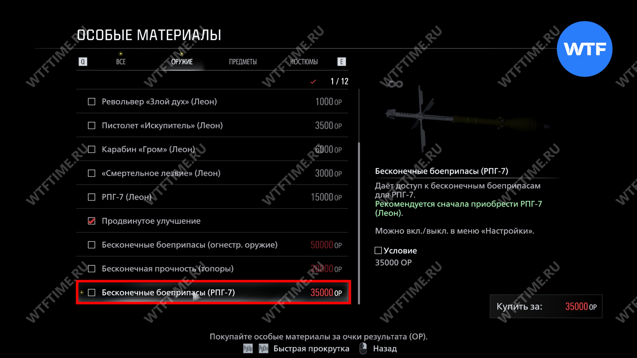 Важно. Не тратьте ОР на другие предметы, так как они будут нужны вам для покупки бесконечных патронов и РПГ перед прохождением сложности Безумие.