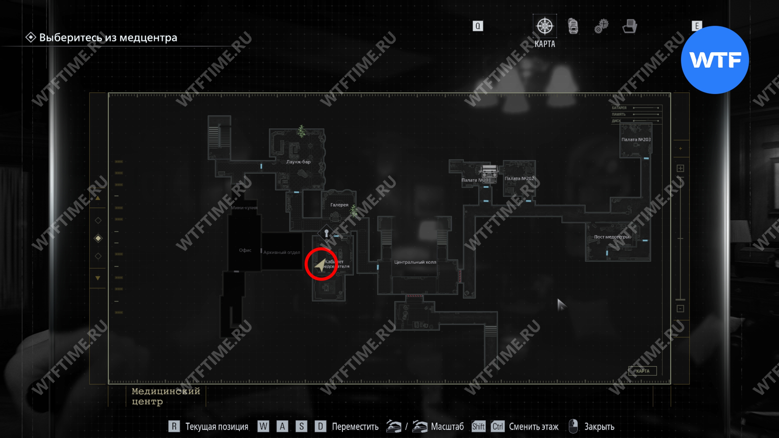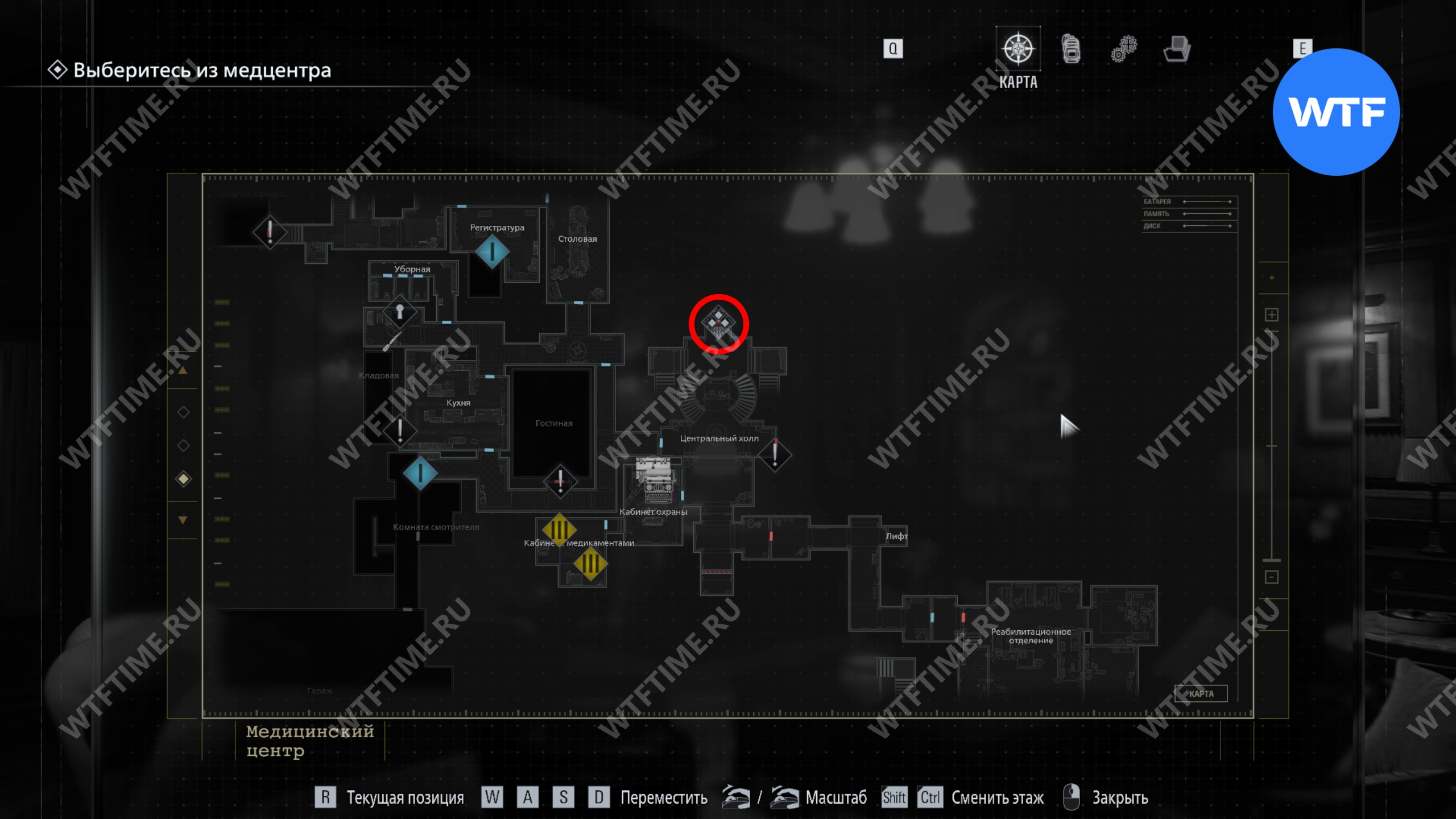 Обратите внимание. К этому моменту у вас могут возникнуть проблемы с местами в инвентаре, но вы всегда можете вернуться в кабинет охраны на первом этаже медцентра и воспользоваться там ящиком с предметами.