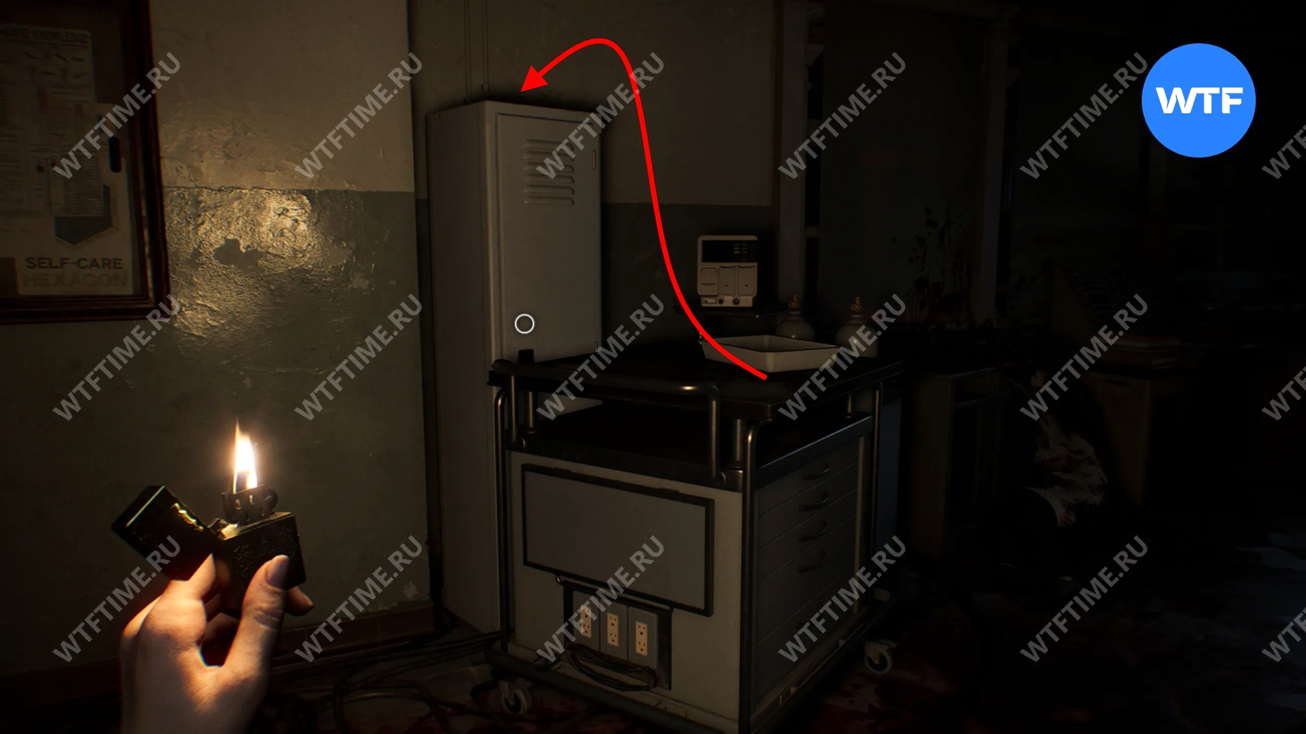 При первом прохождении медцентра за Грейс вы доберетесь до поста медсестры, где должны забрать отвертку из ящика для инструментов. Прежде чем передвигать тележку, заберитесь на неё и заберите монету с крышки шкафчика, который она блокирует.