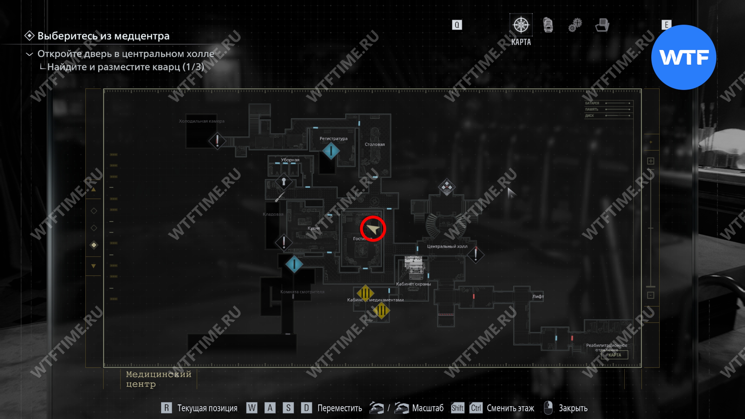 - 1 этаж, западное крыло, коридор к северо-западу от регистратуры