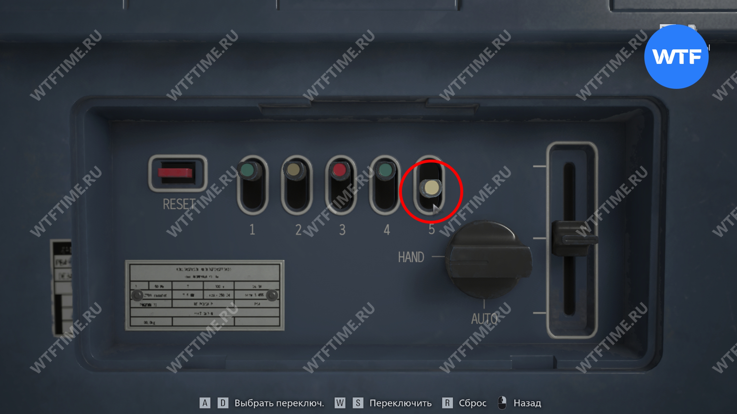 Теперь опустите небольшой желтый переключатель под номером 5 вниз.