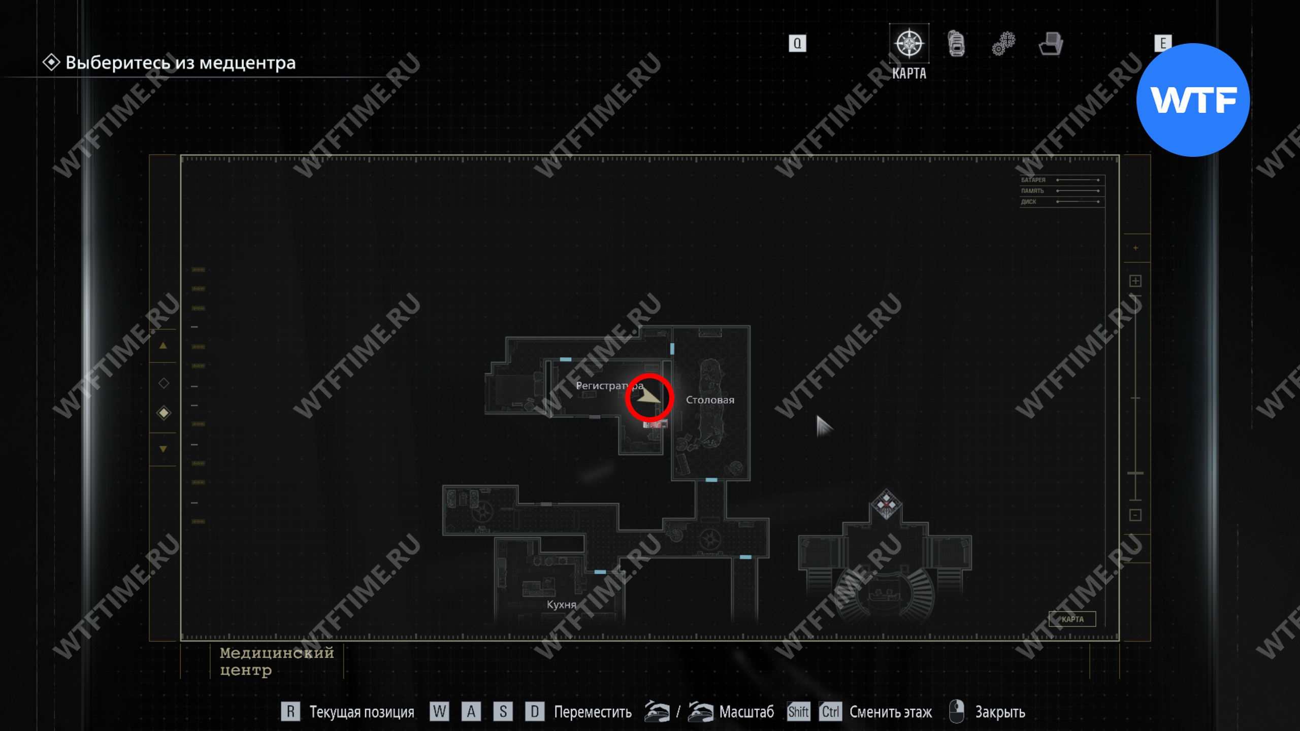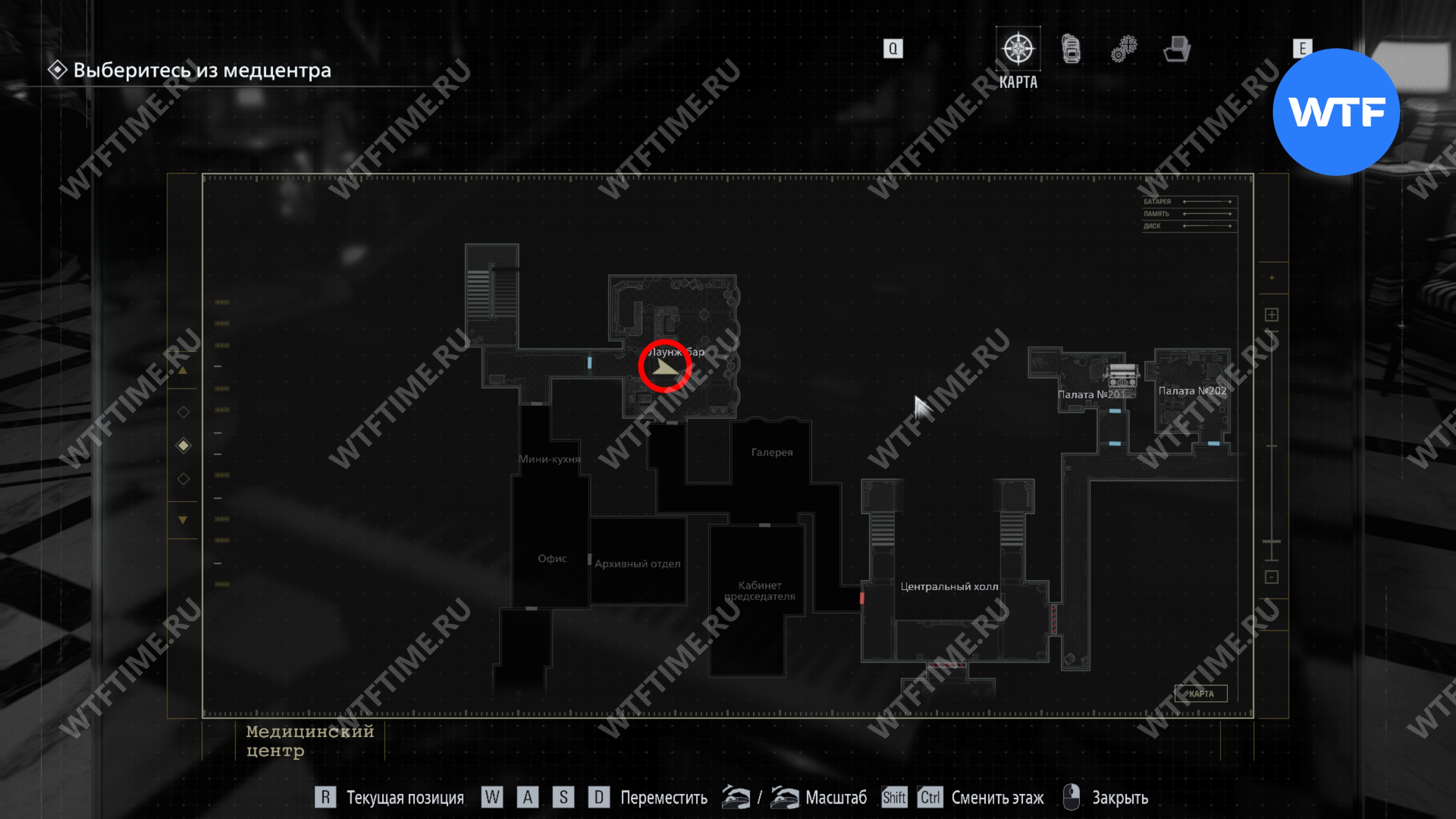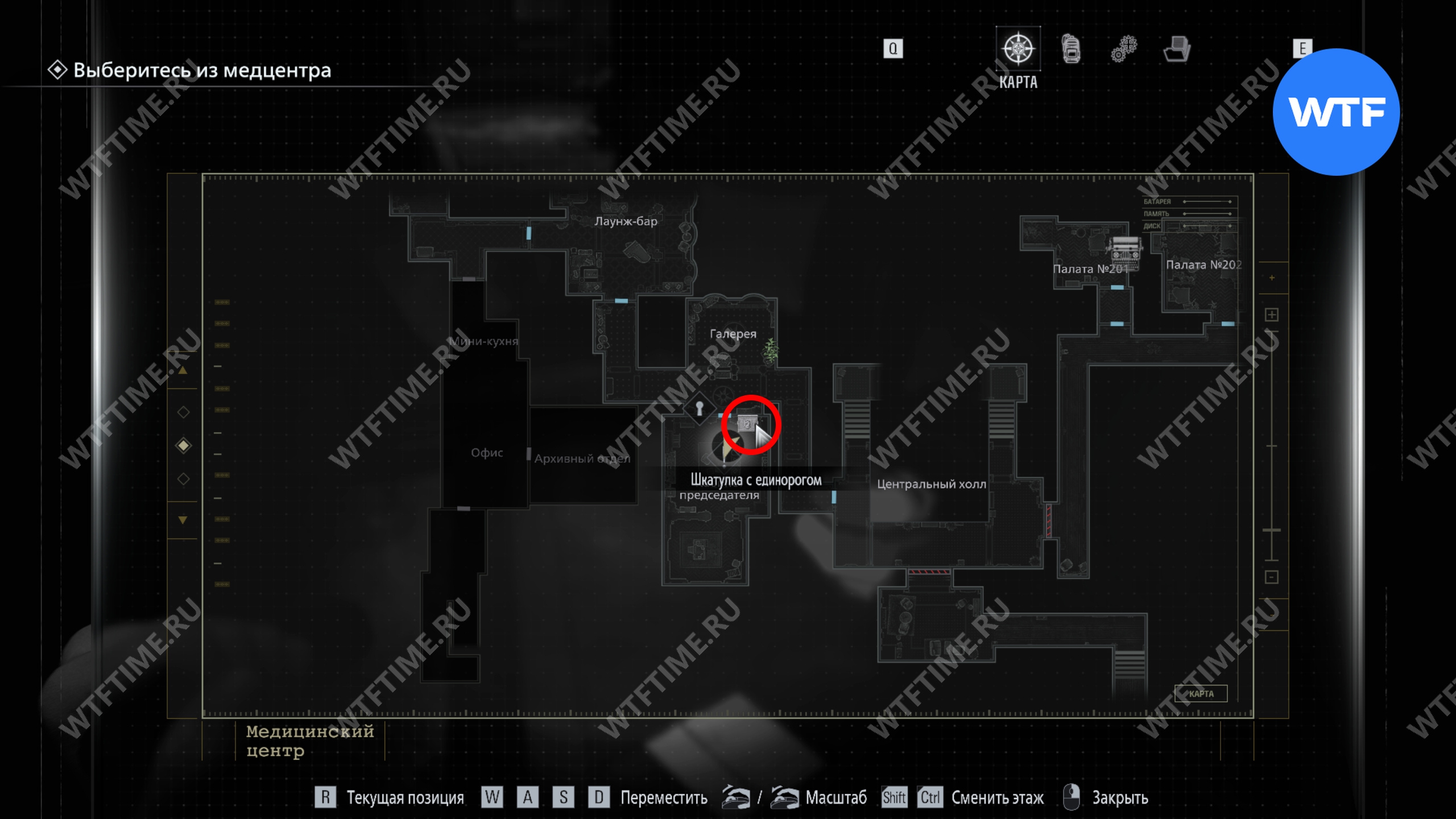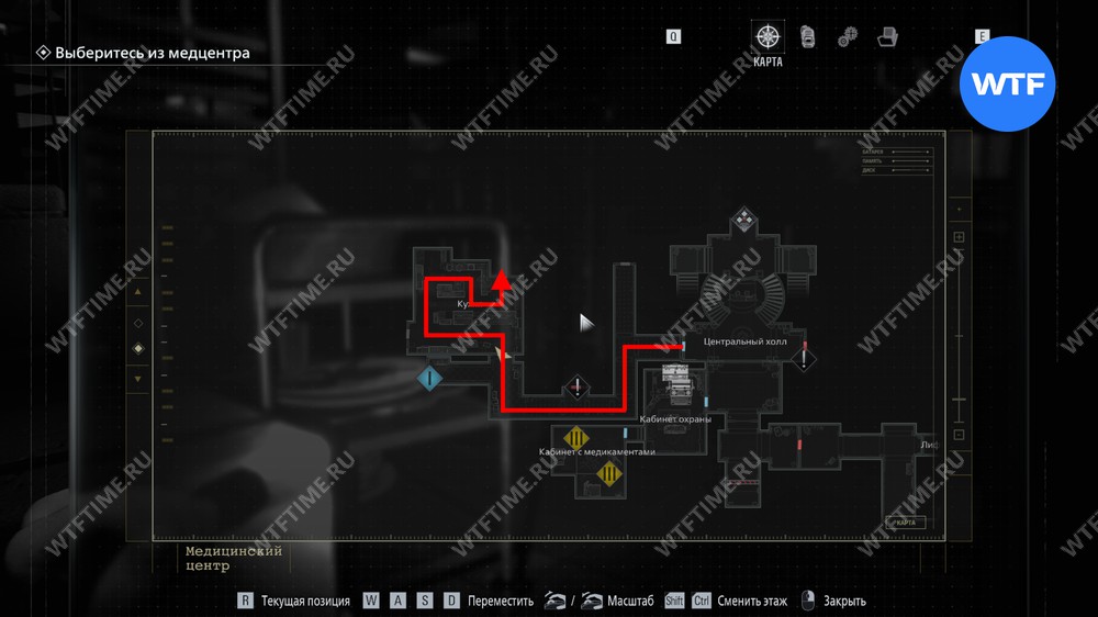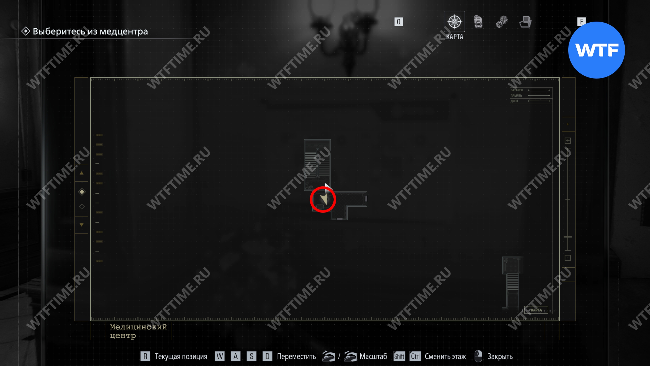 Теперь поднимитесь по лестнице и на стене прямо перед вами увидите карту восточного крыла.