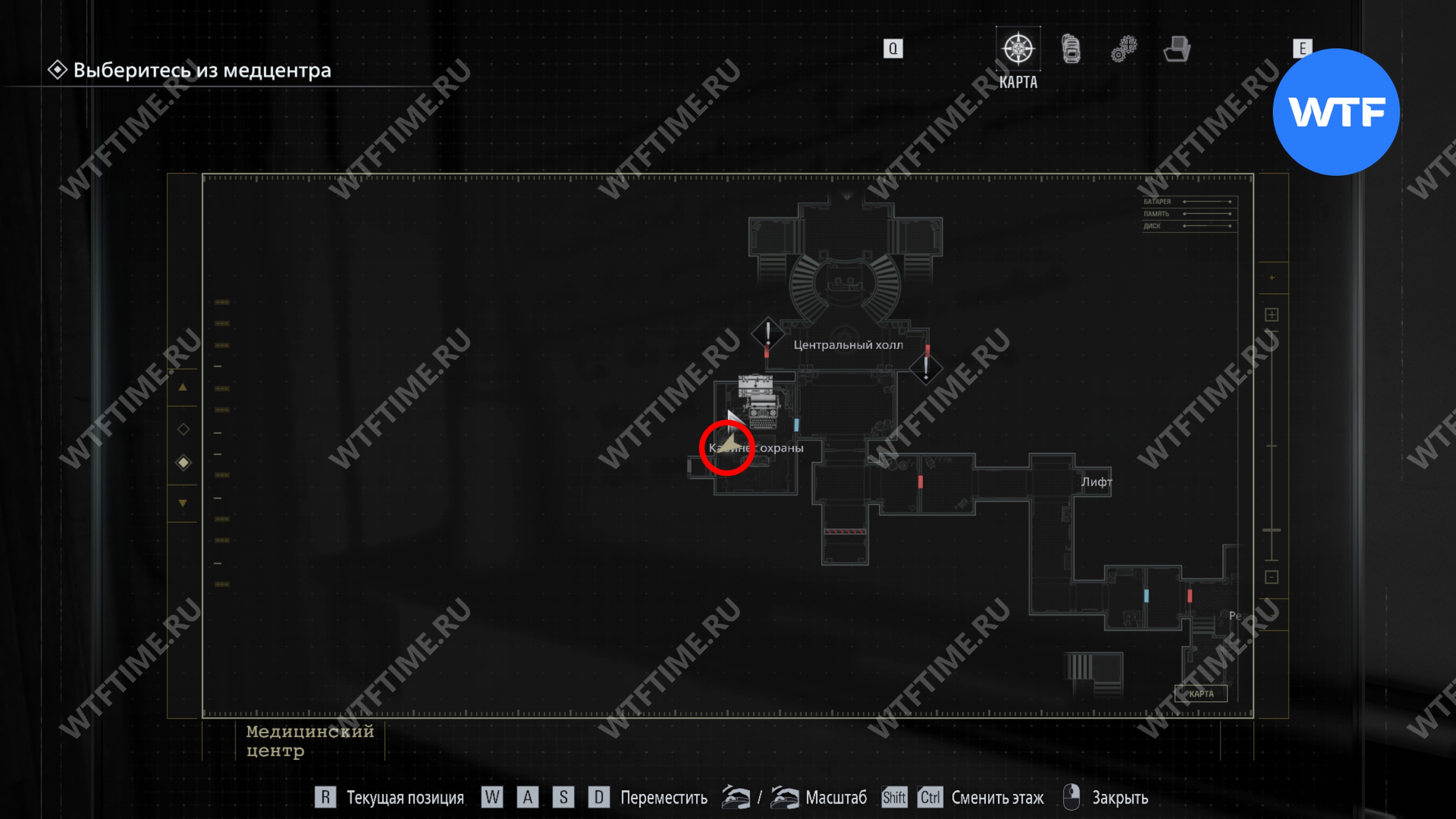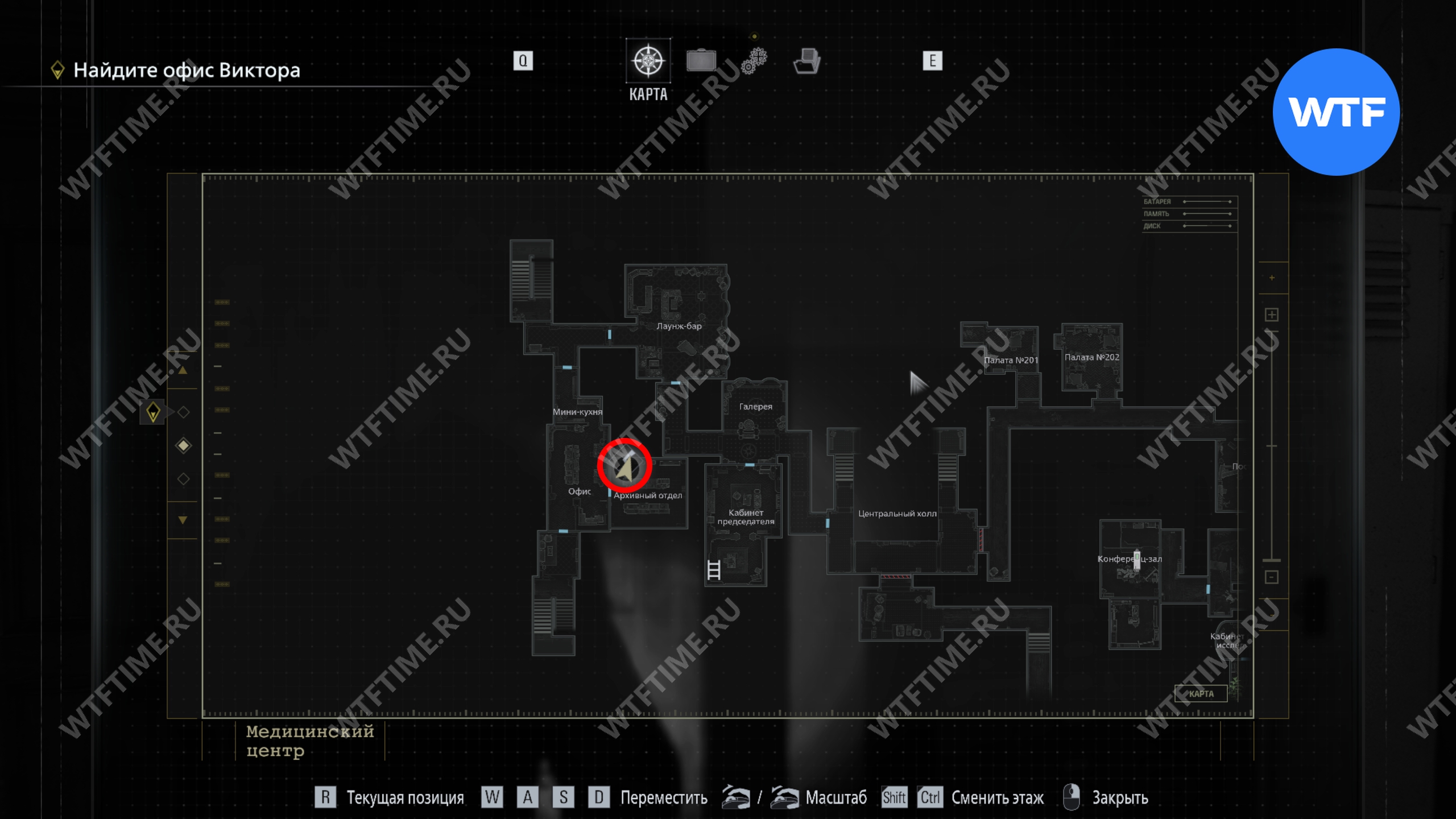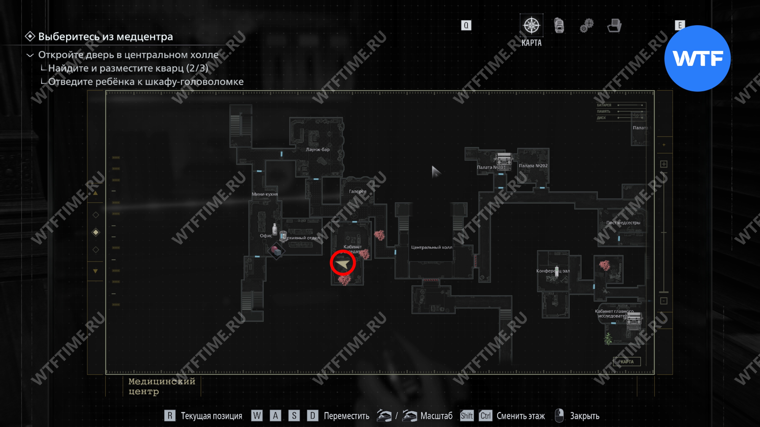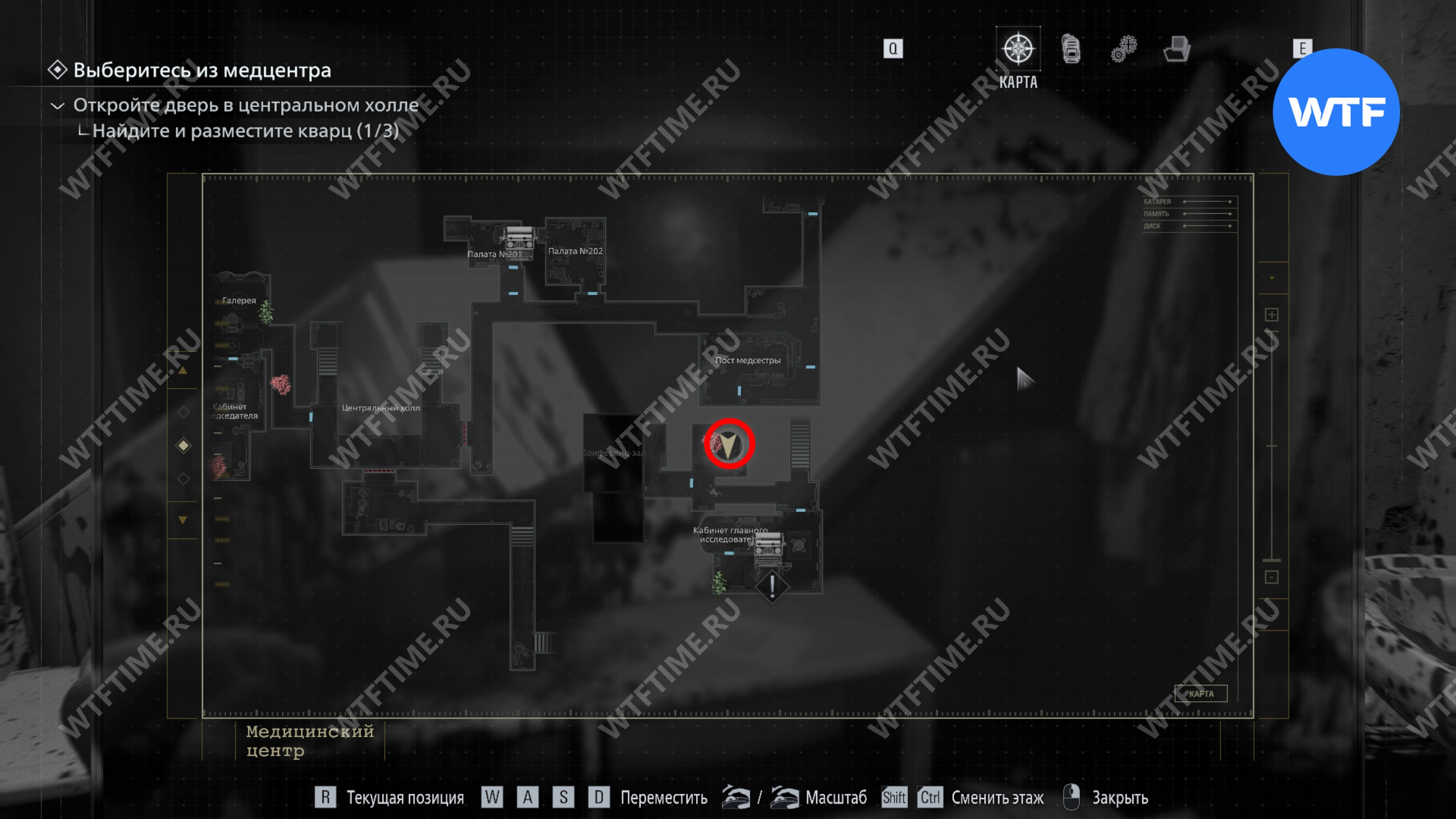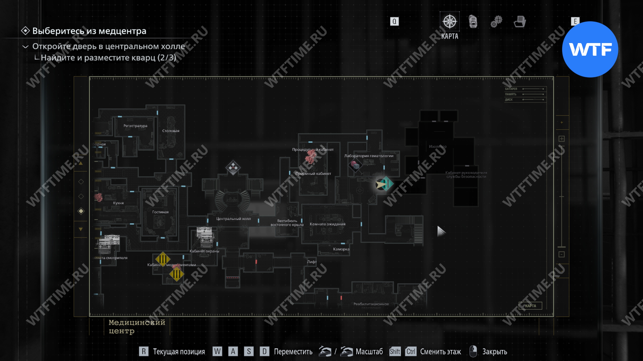 Теперь поднимитесь по лестнице и на стене прямо перед вами увидите карту восточного крыла.