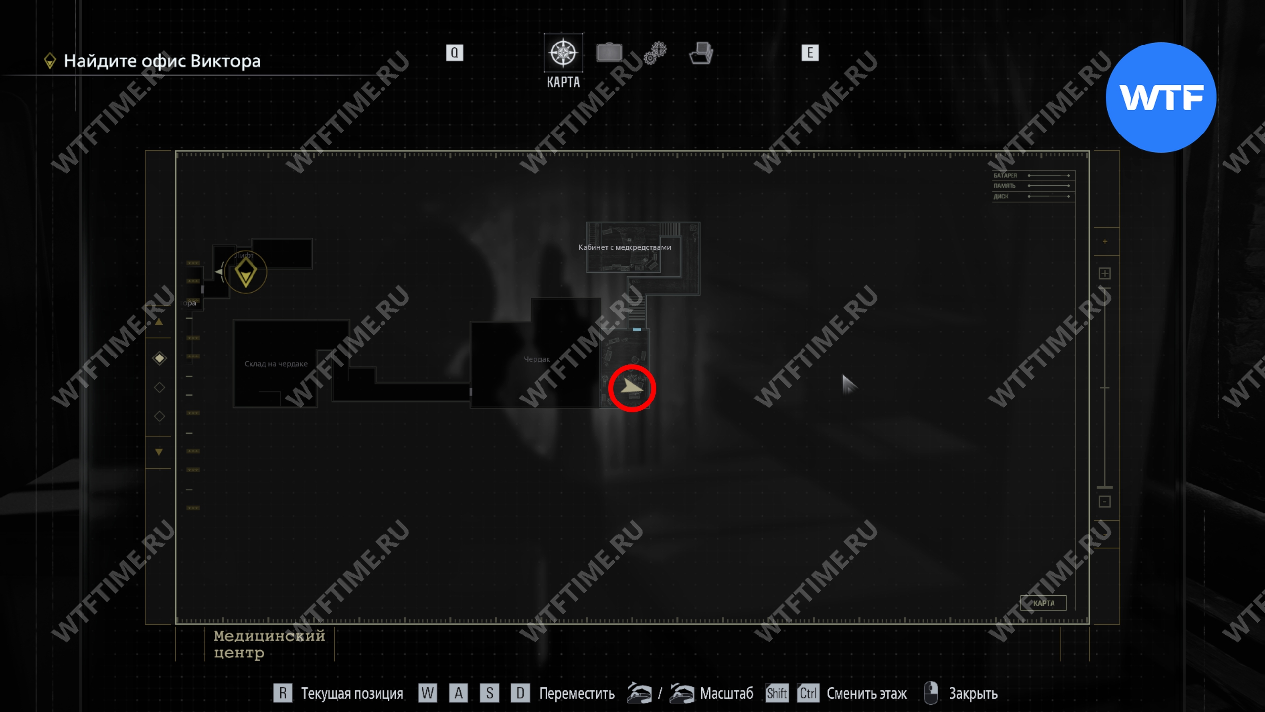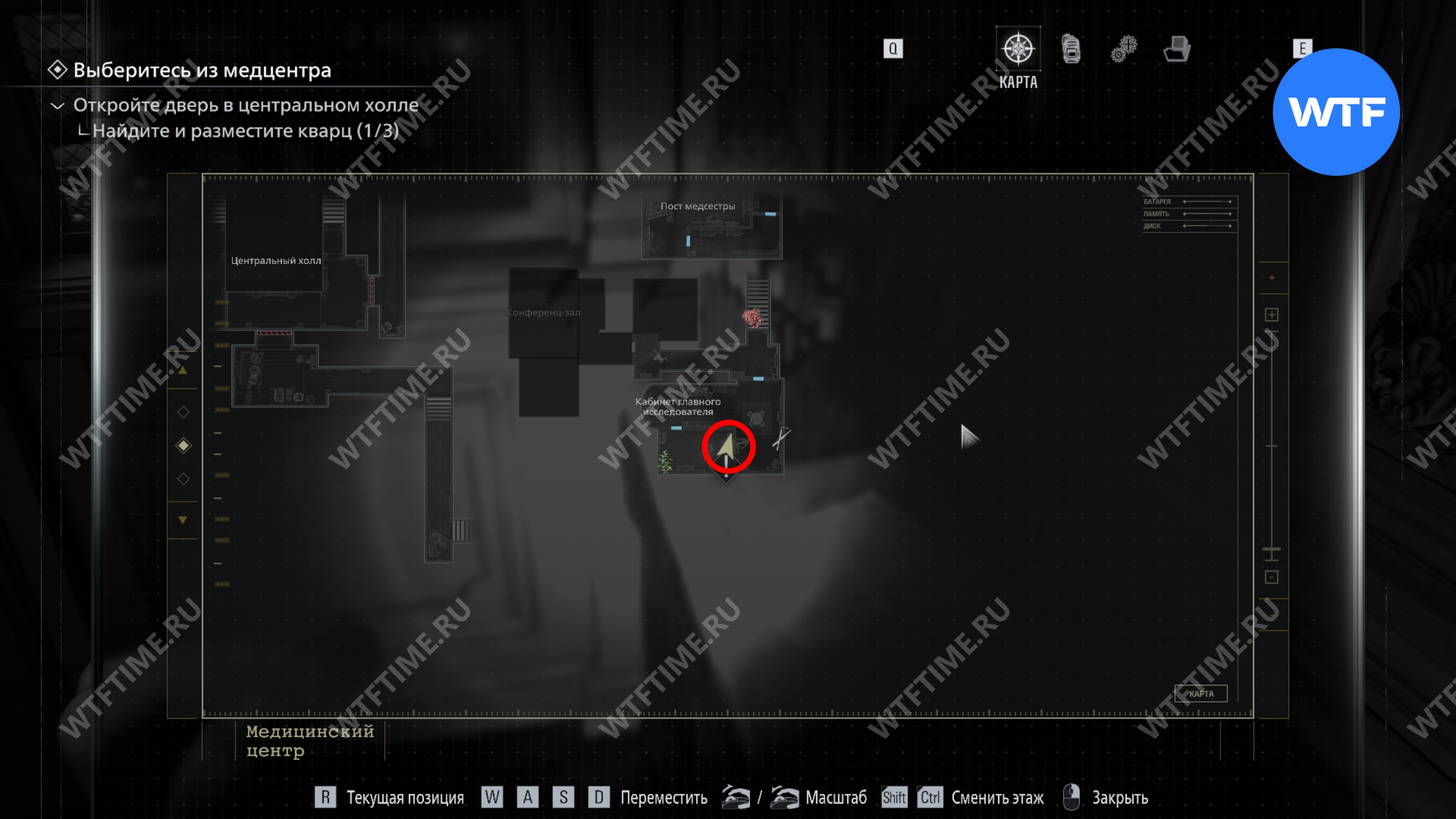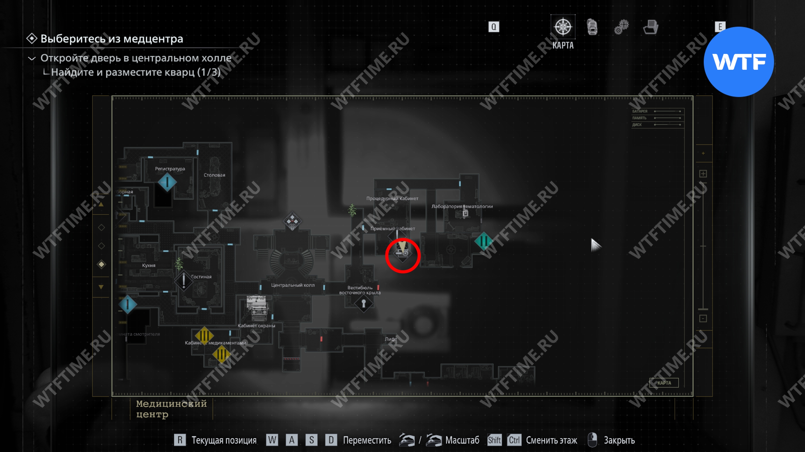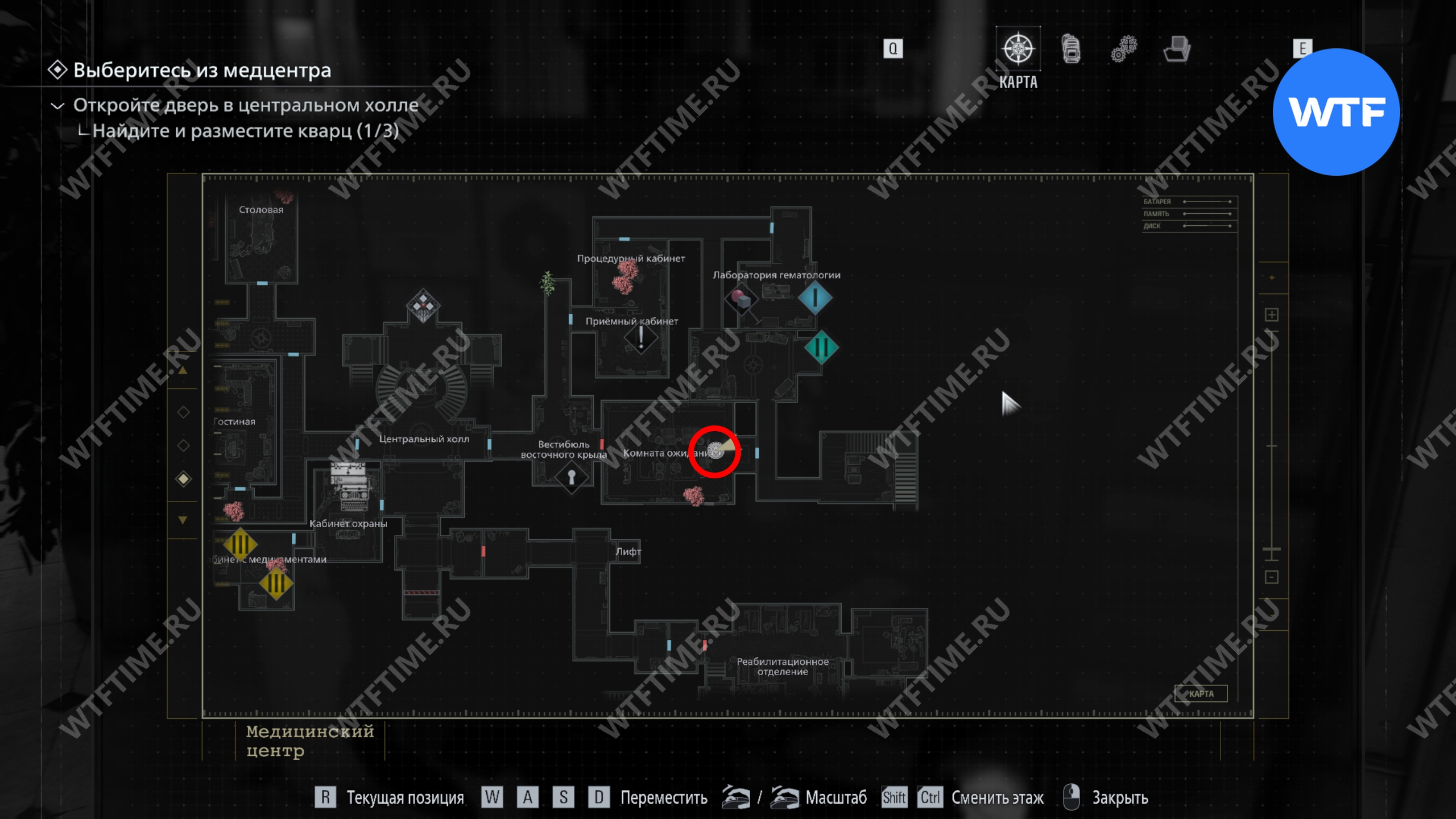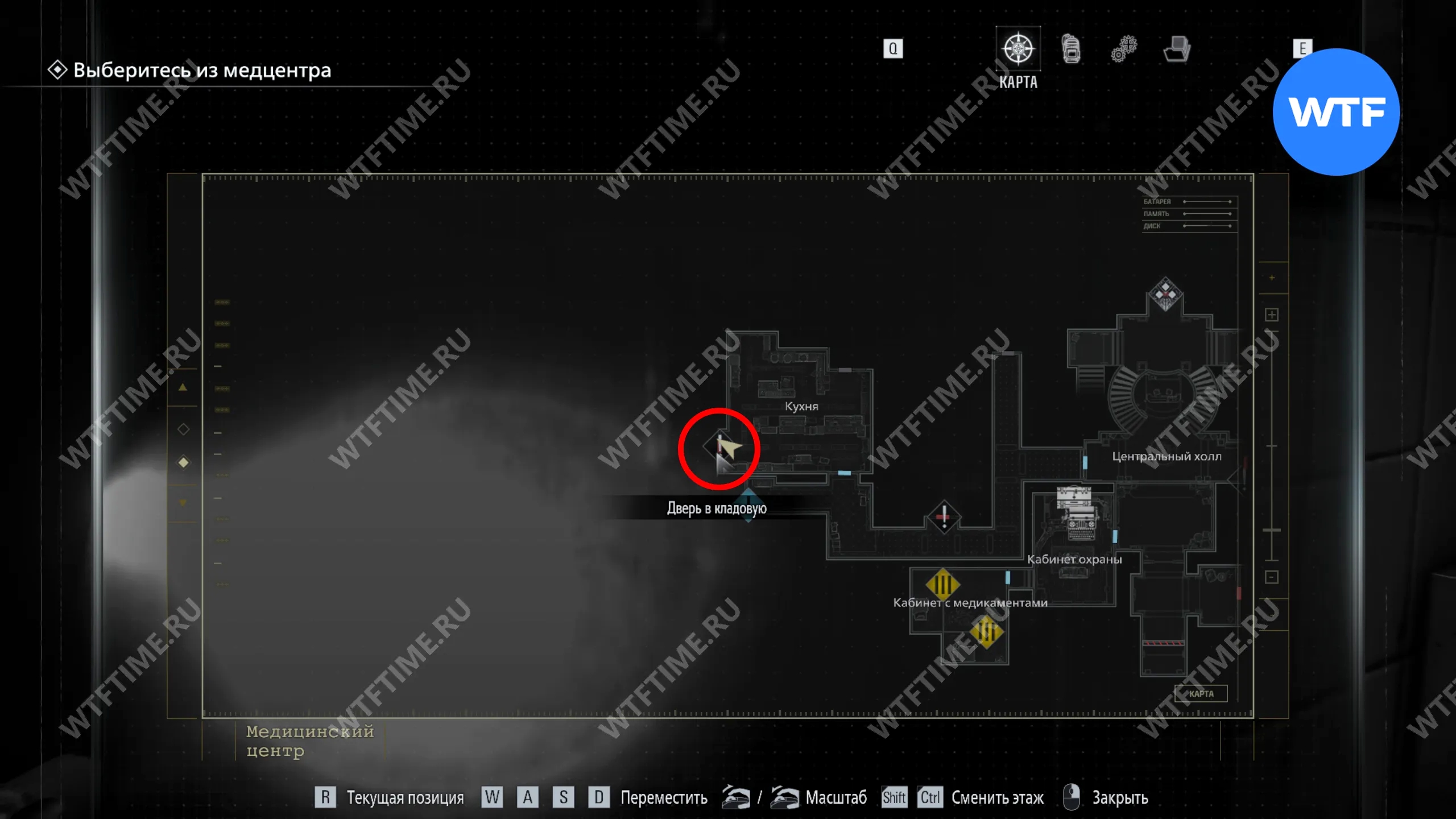 Теперь поднимитесь по лестнице и на стене прямо перед вами увидите карту восточного крыла.