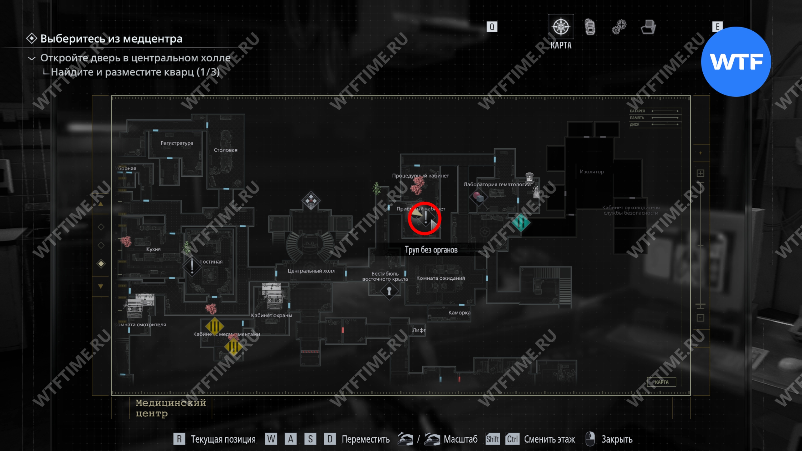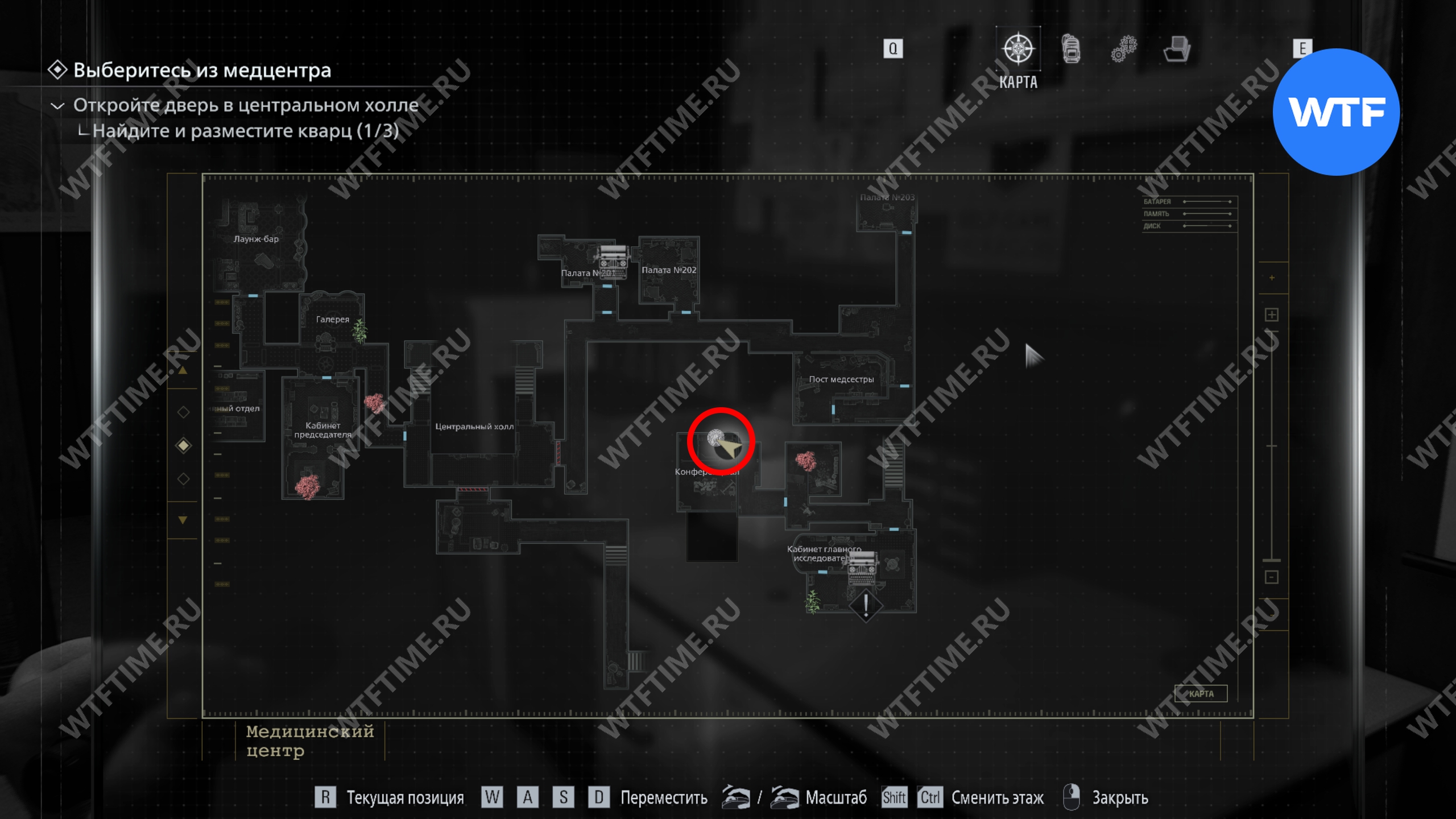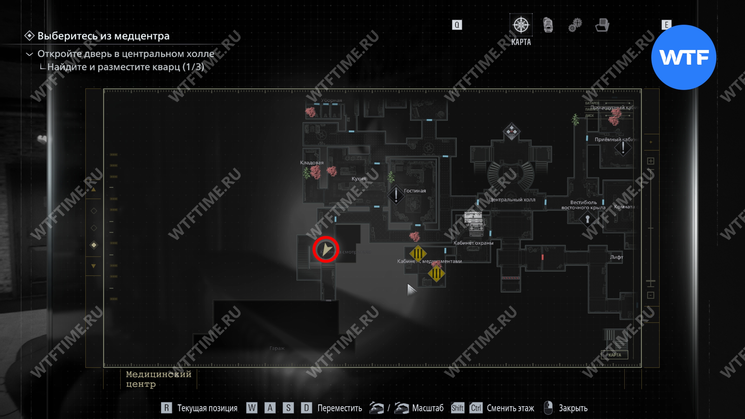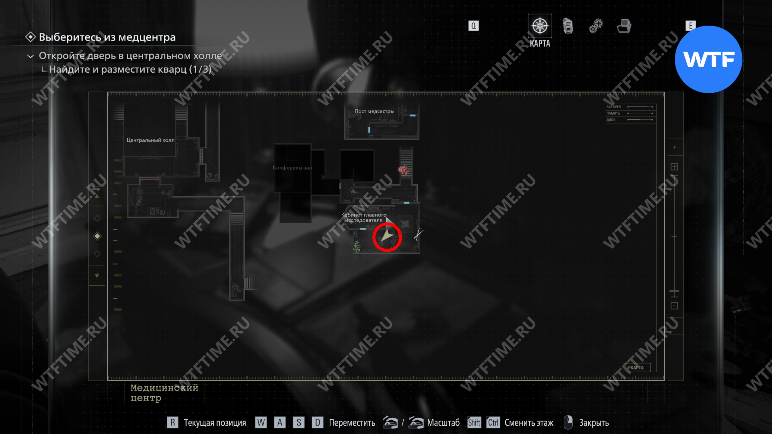 Теперь поднимитесь по лестнице и на стене прямо перед вами увидите карту восточного крыла.