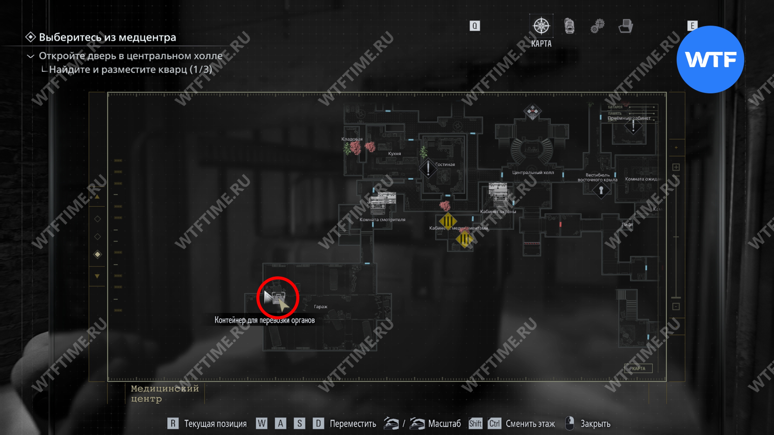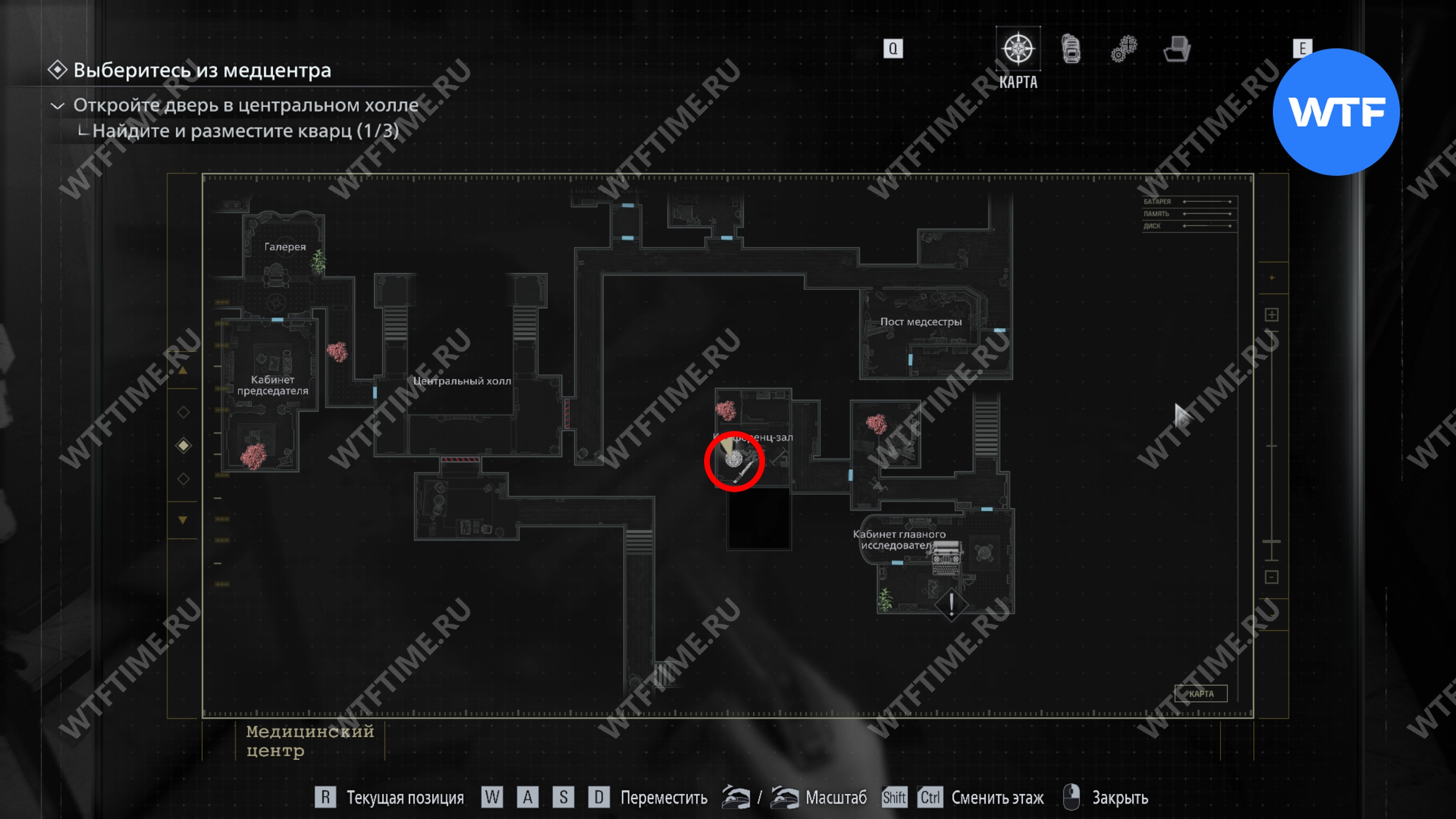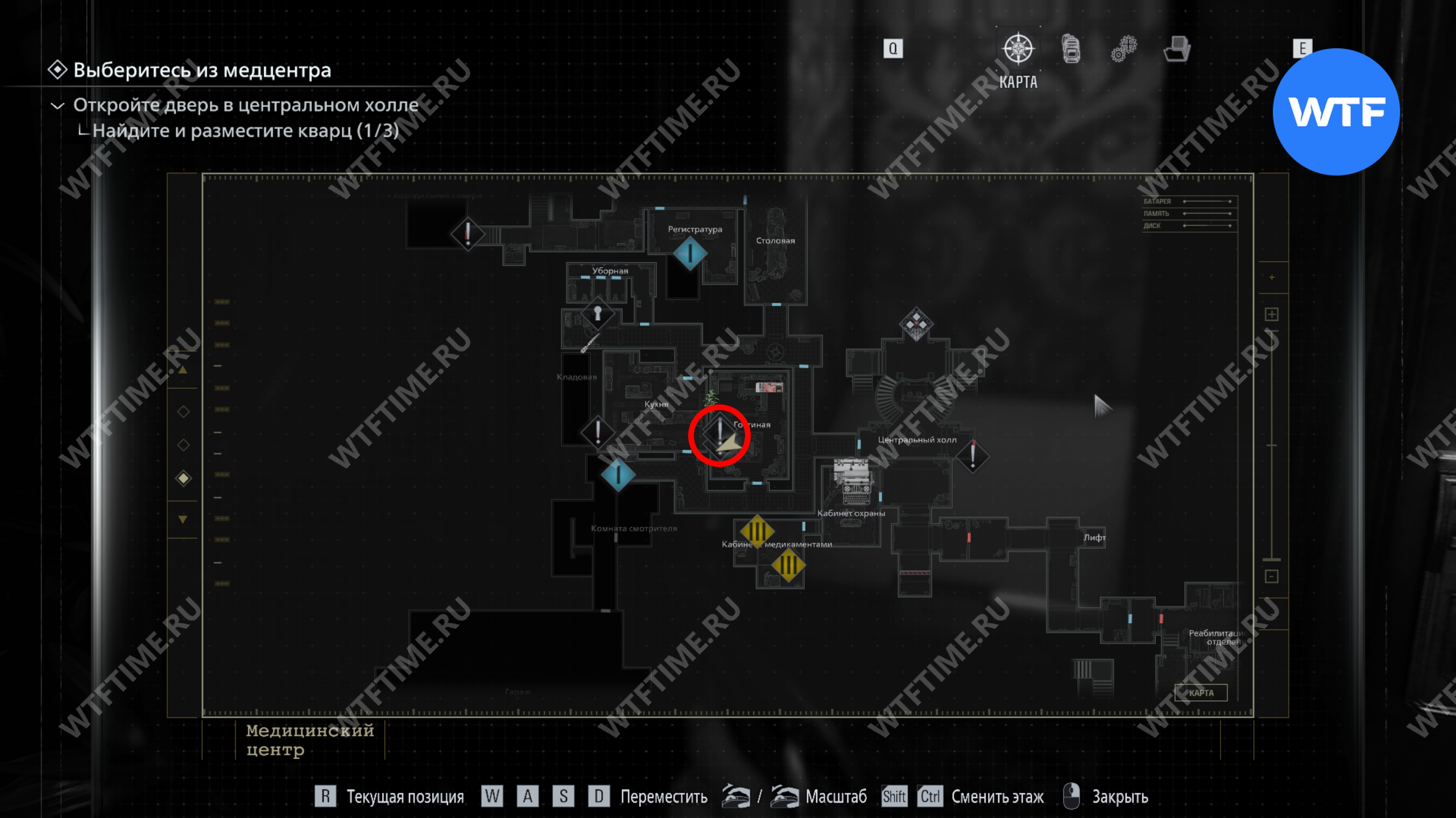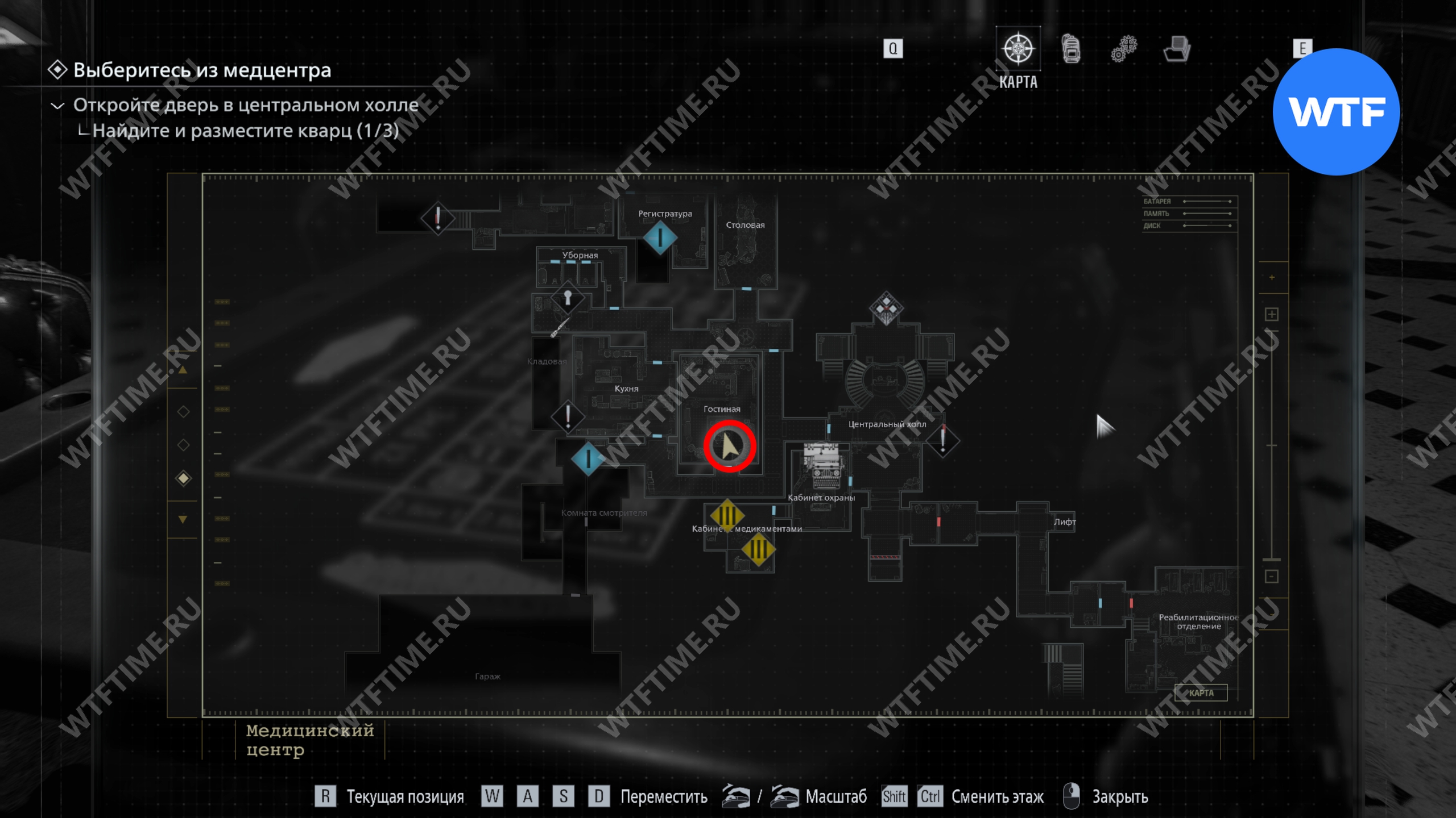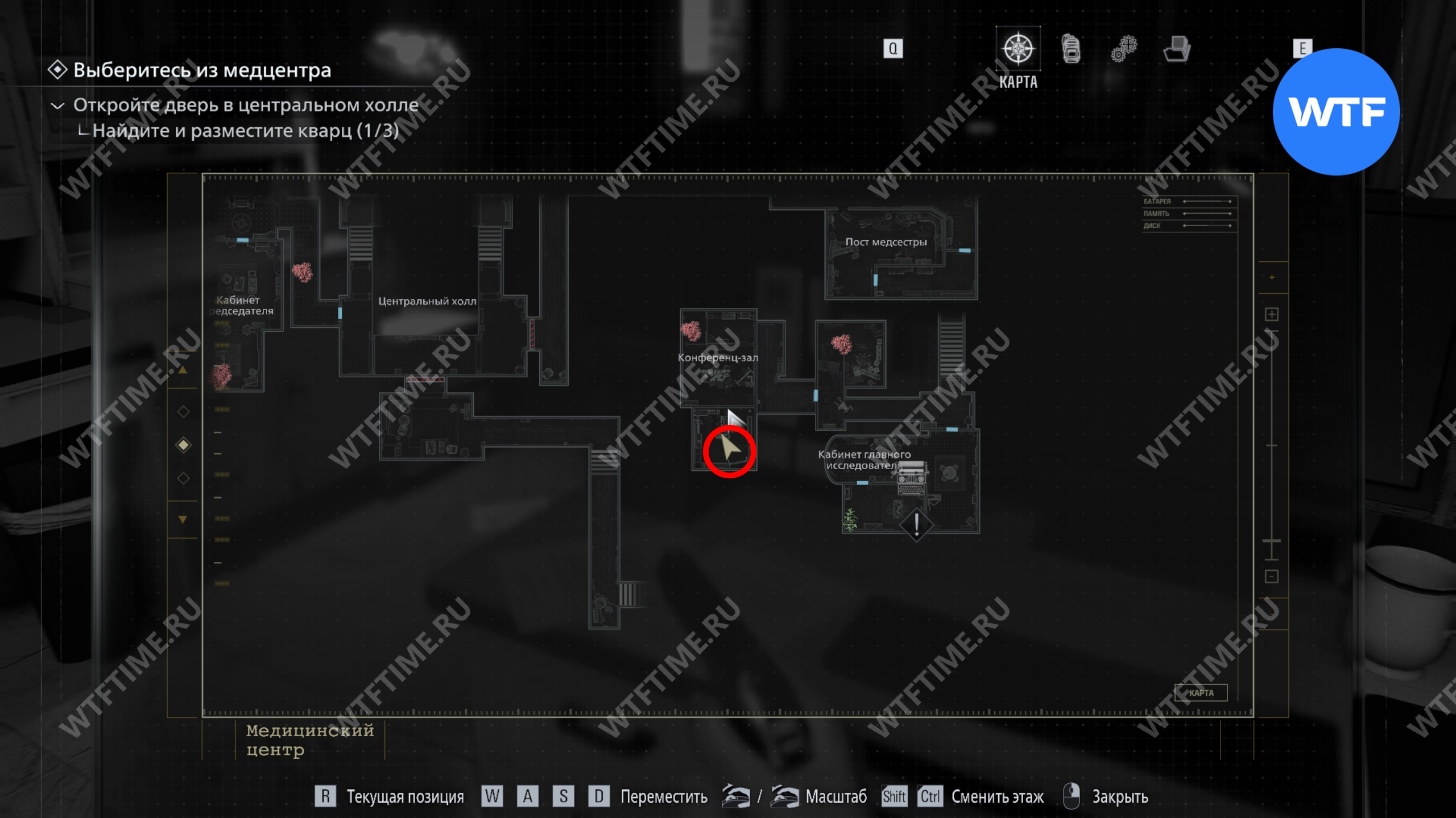 Теперь поднимитесь по лестнице и на стене прямо перед вами увидите карту восточного крыла.