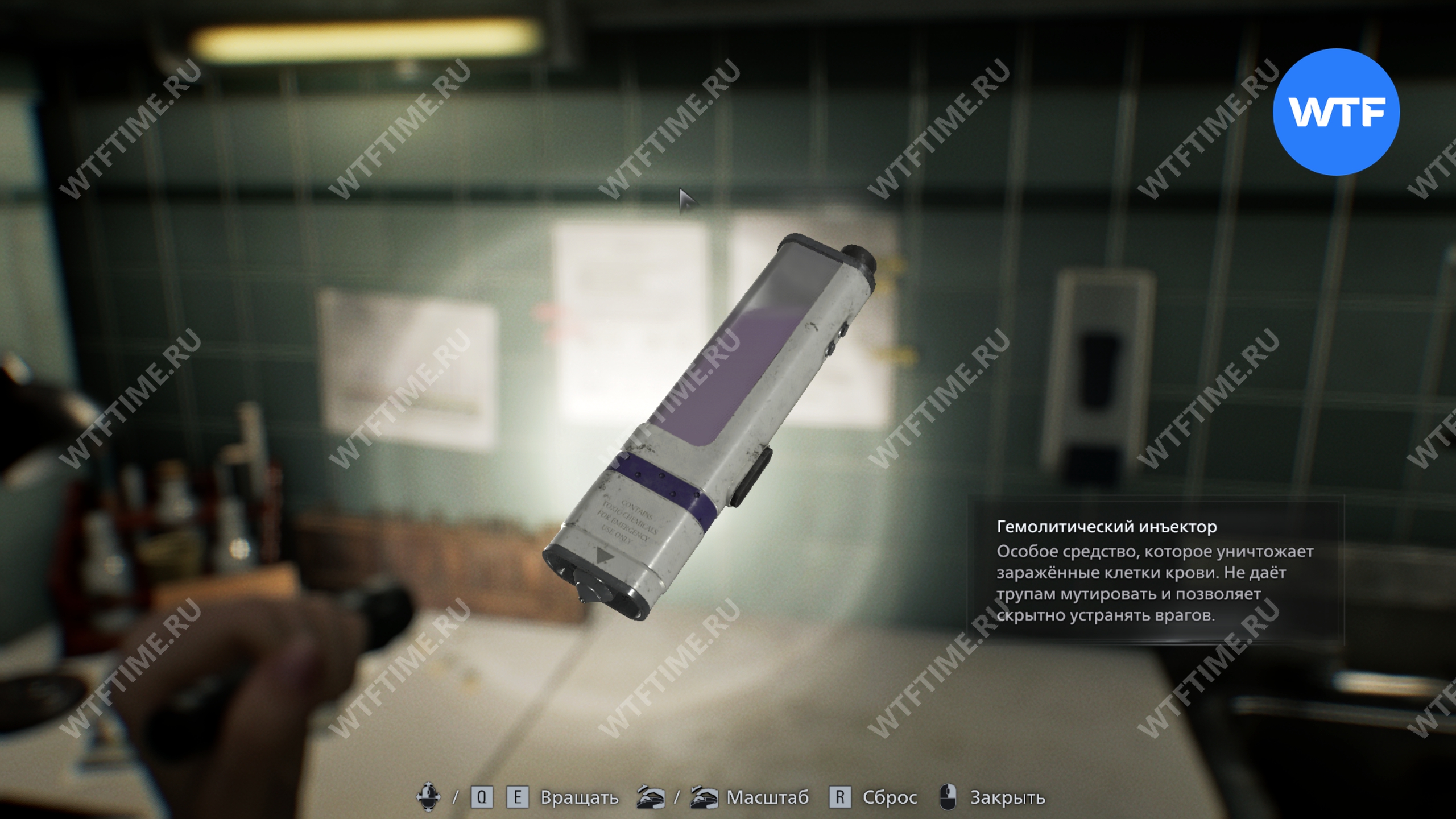 И вестибюля идите на север и войдите в приемный кабинет. Там на столе вы найдете гемолитический инъектор. За его первое применение вы получите достижение «Смертельная доза».