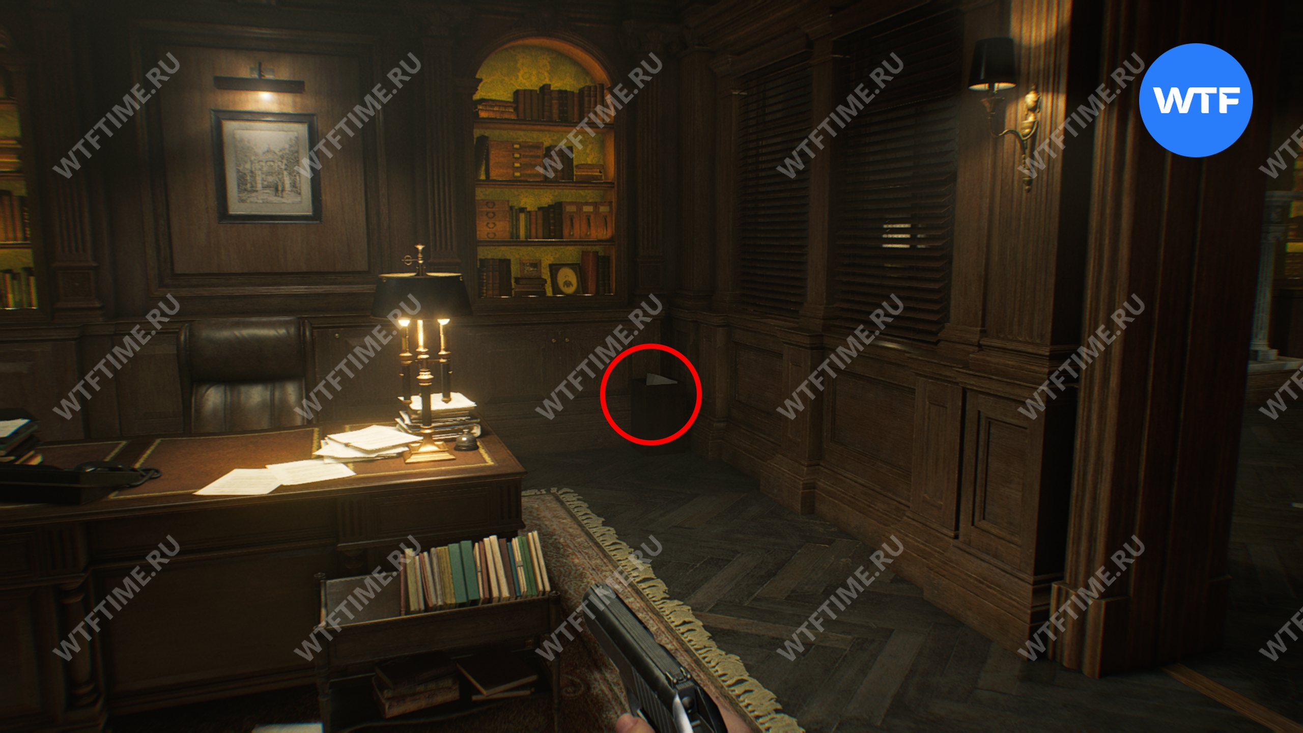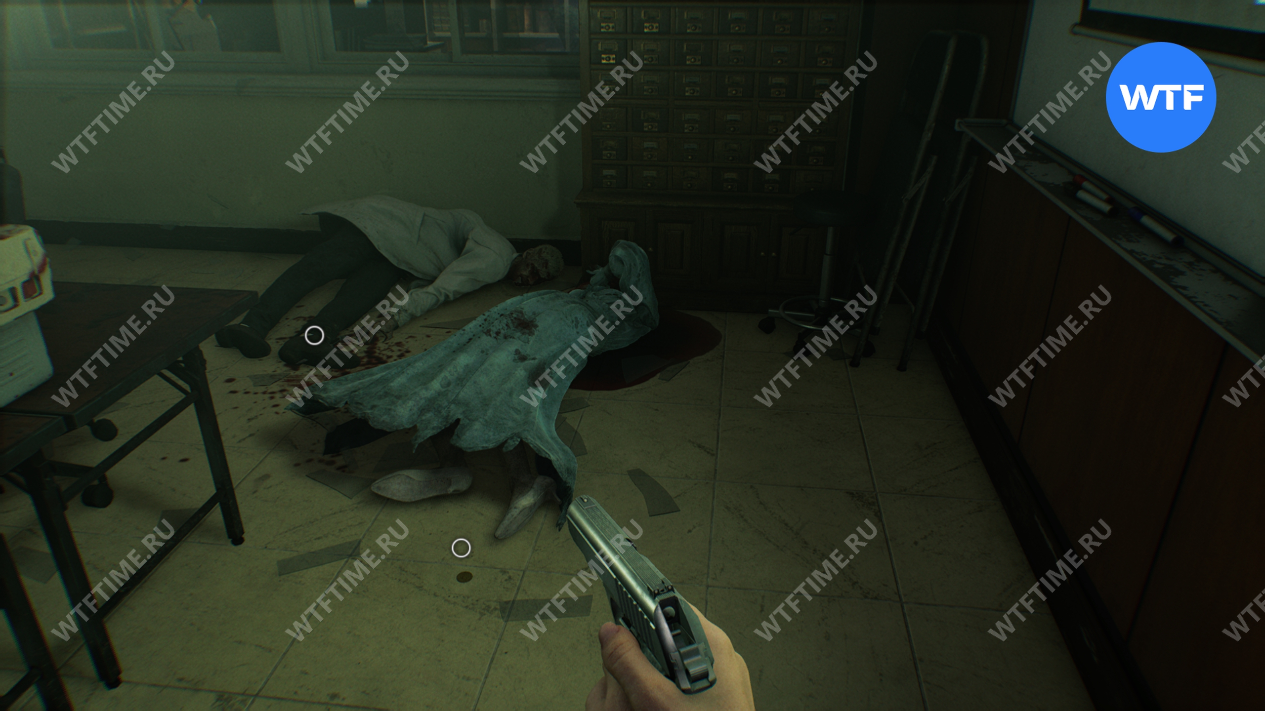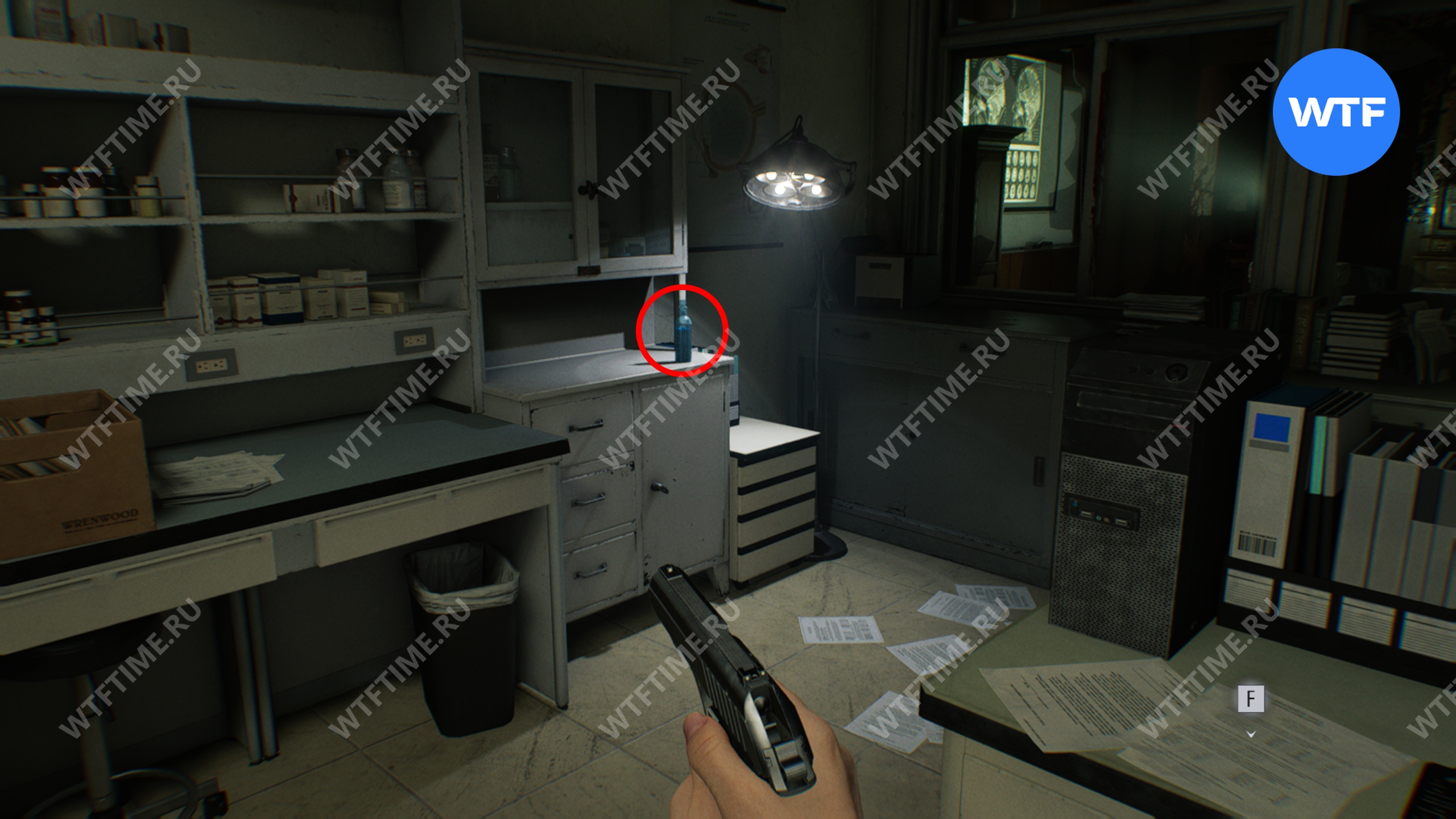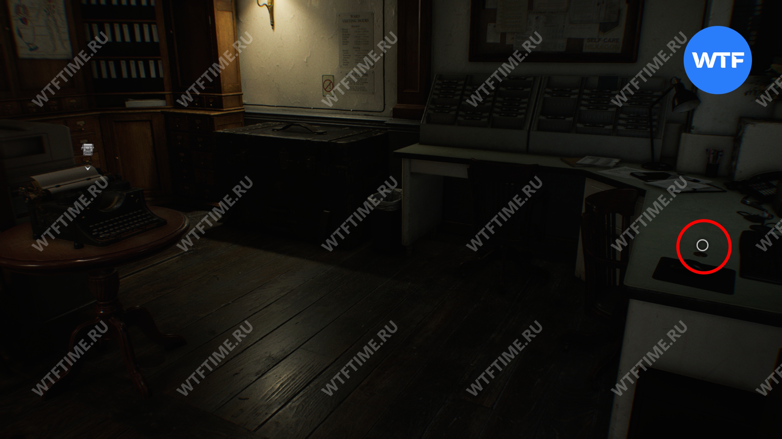 Прежде чем покидать кабинет, не забудьте сохраниться, а также подобрать вашу первую отмычку с одного из столов. Отмычки позволяют открывать запертые ящики тумбочек, внутри которых лежит редкий металл для изготовления патронов для «Реквиема».