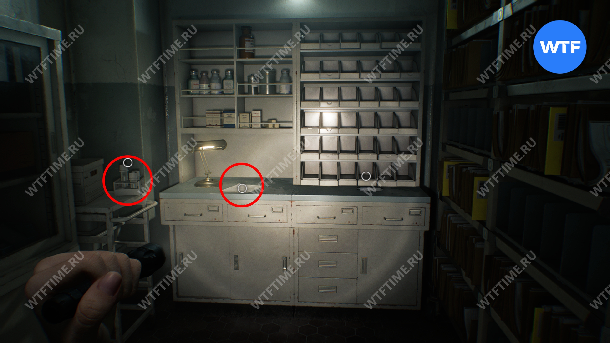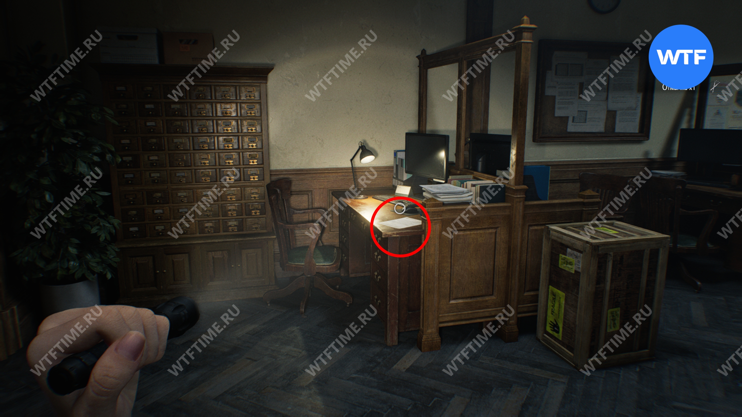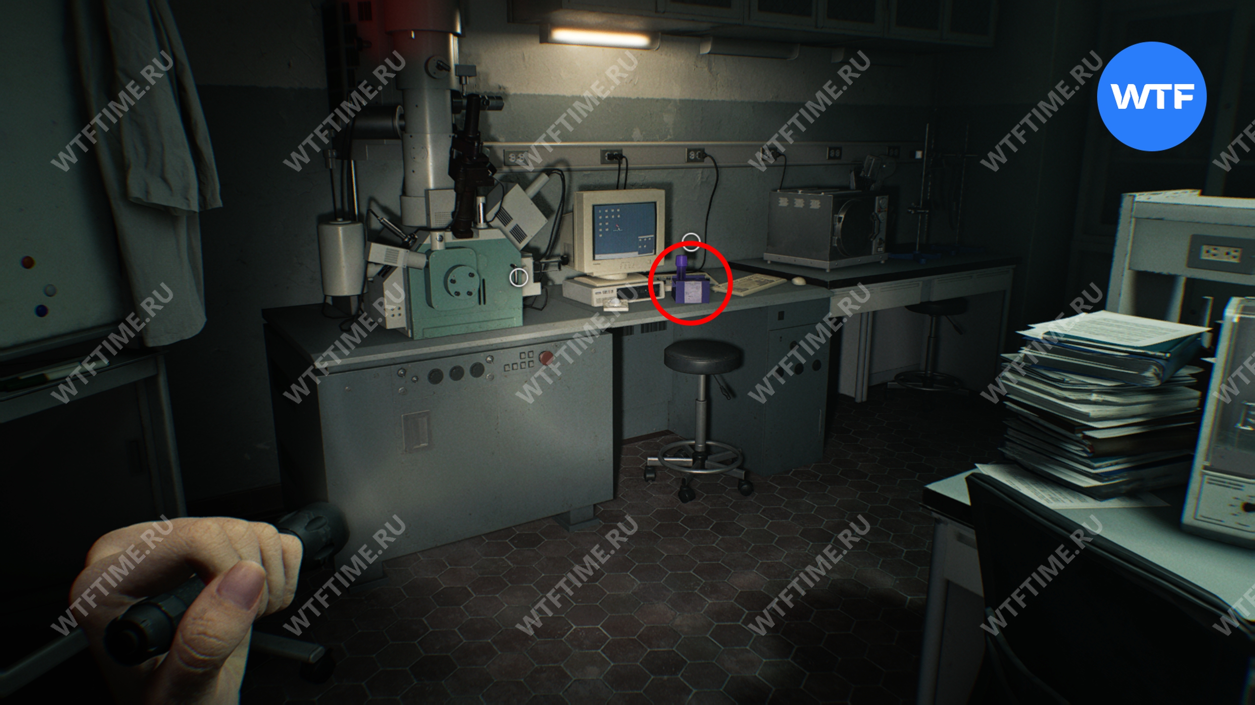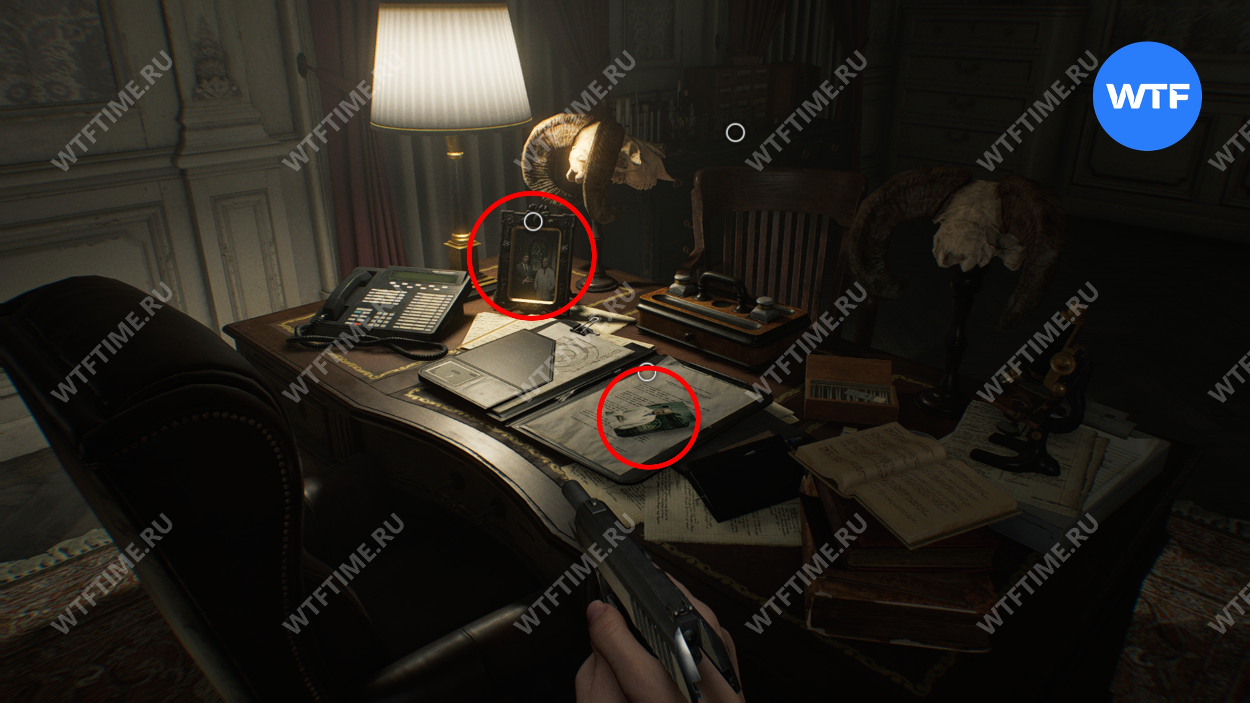 Теперь войдите в кабинет главного исследователя. Здесь вам нужно собрать 3 фотографии, которые считаются документами: две лежат на столе и еще одна на шкафу напротив.