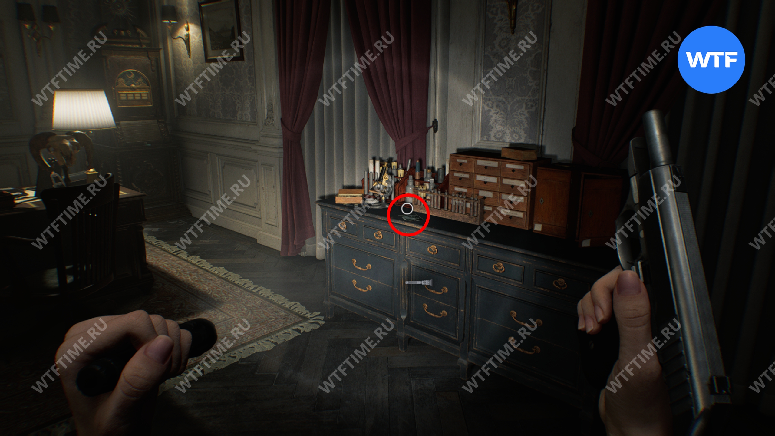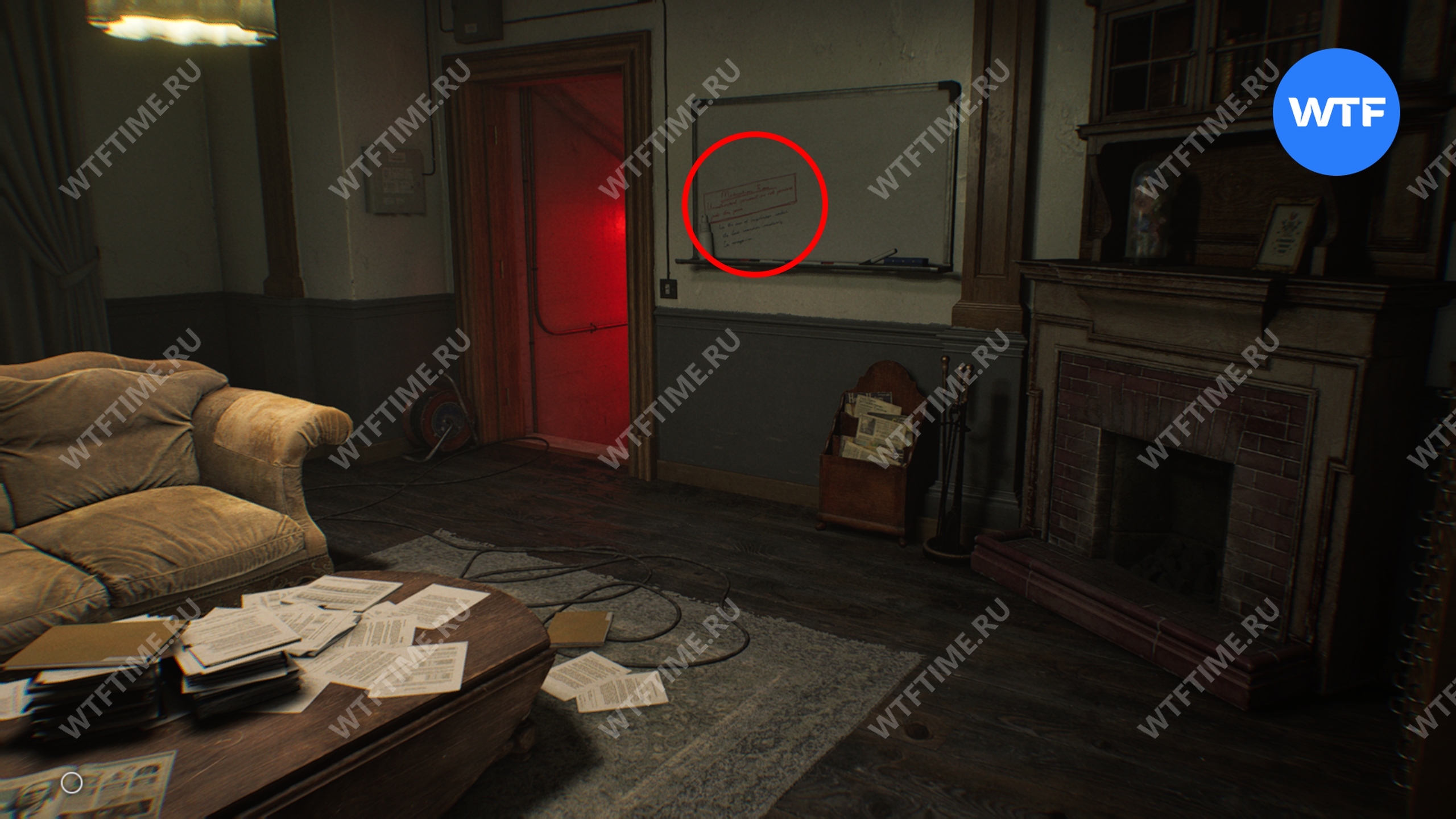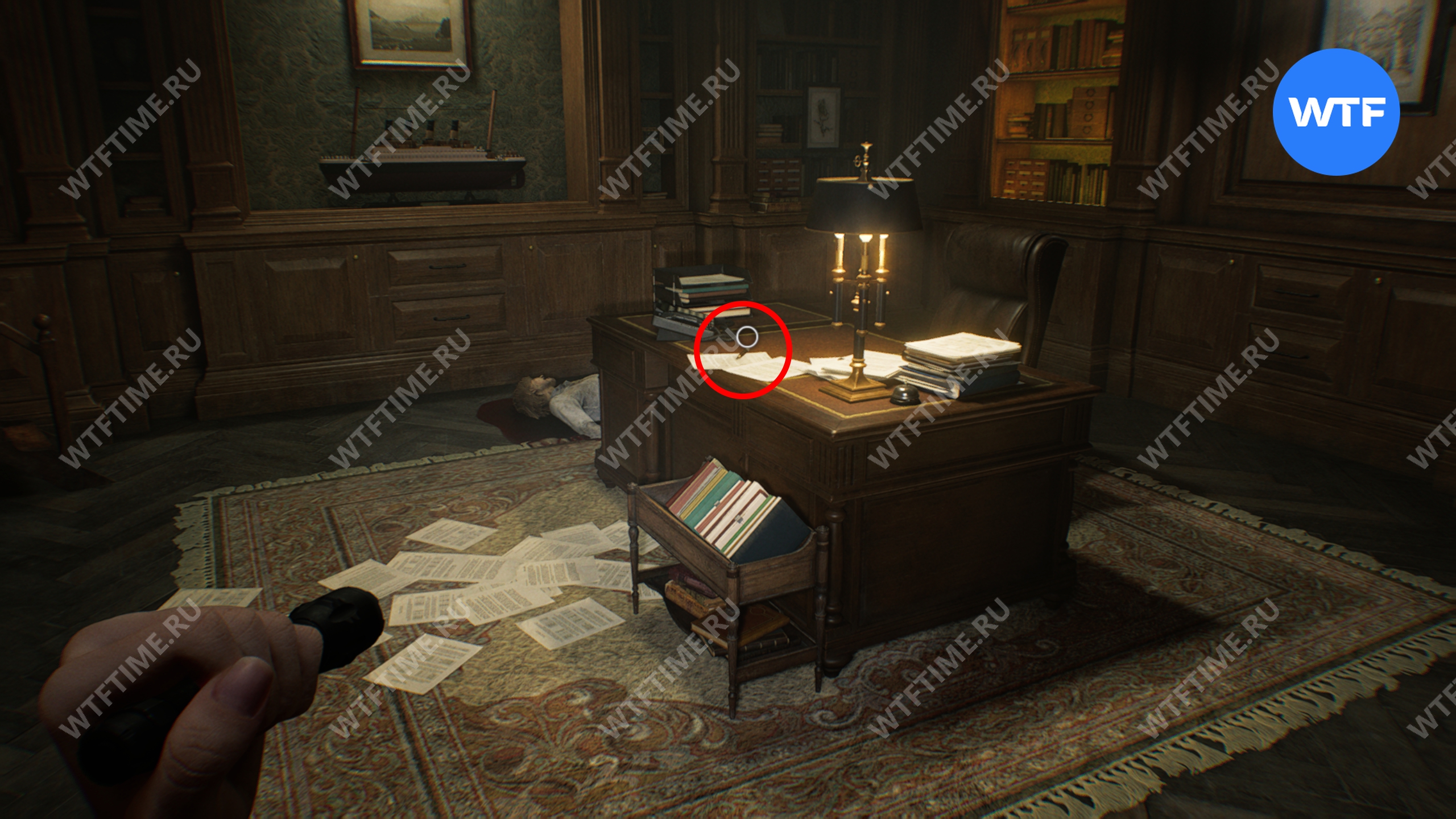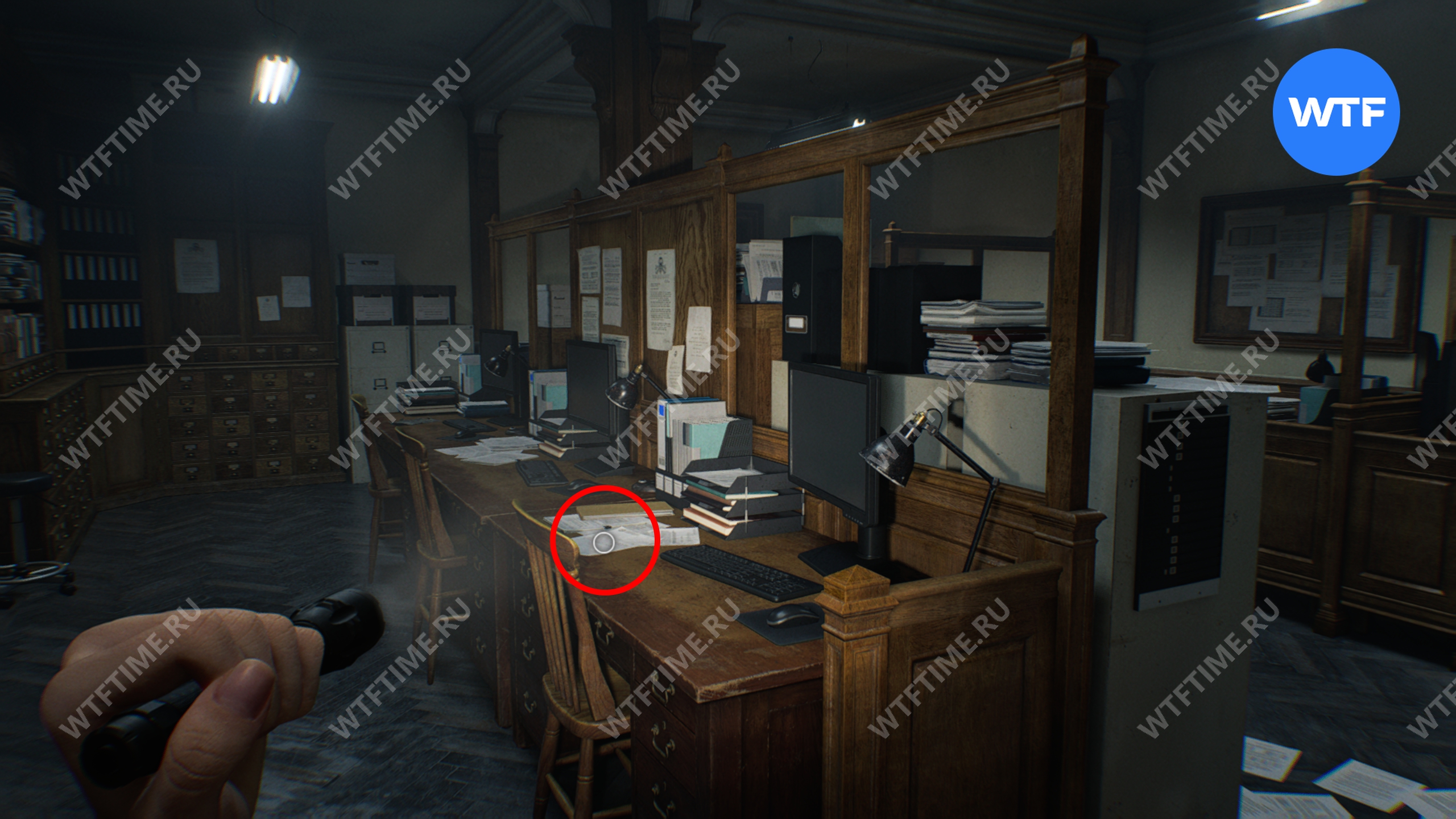 Теперь войдите в кабинет главного исследователя. Здесь вам нужно собрать 3 фотографии, которые считаются документами: две лежат на столе и еще одна на шкафу напротив.