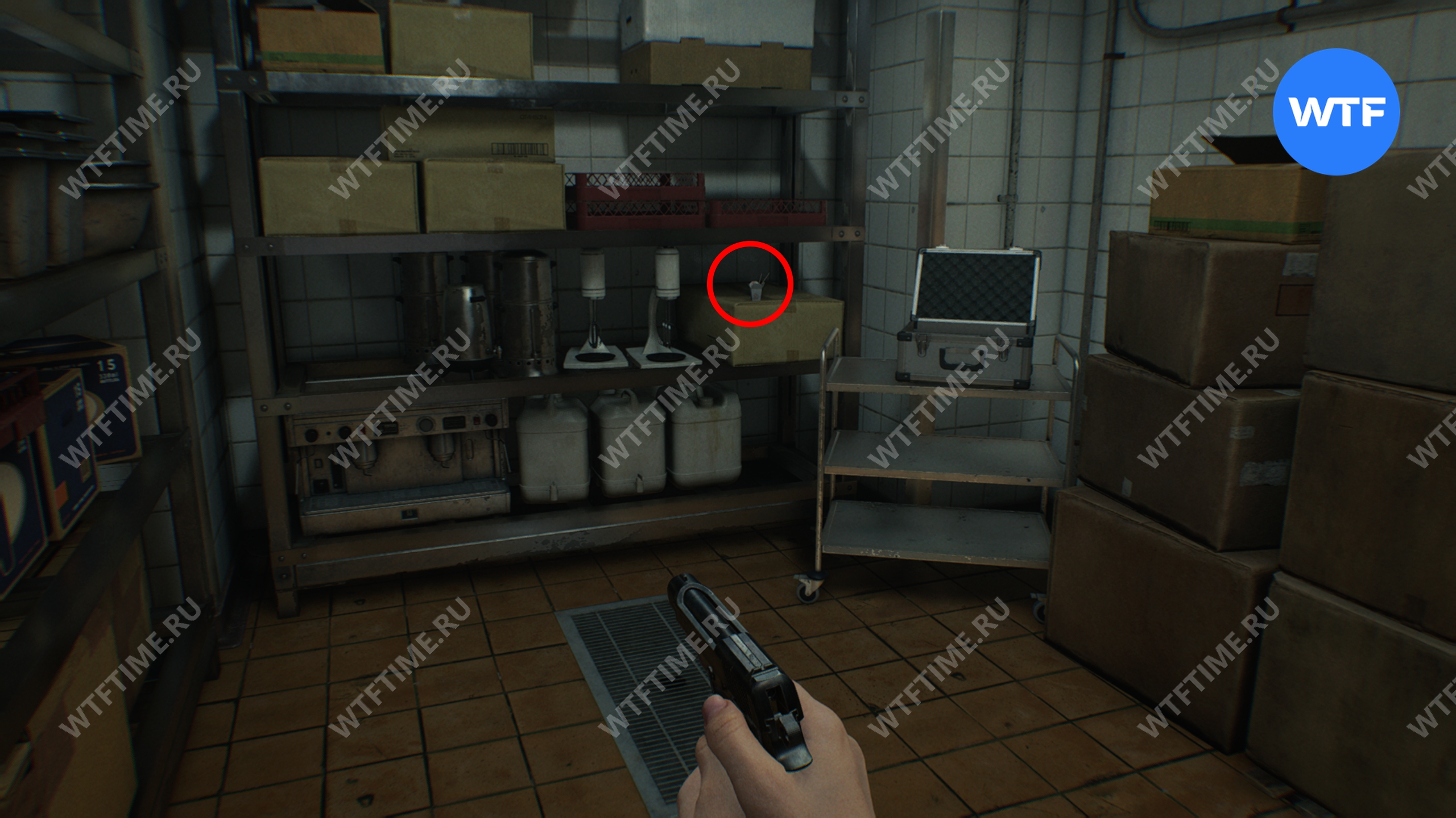 Еще одна деформированная дверь есть в подсобке рядом с регистратурой, но внутри вы найдете только припасы.