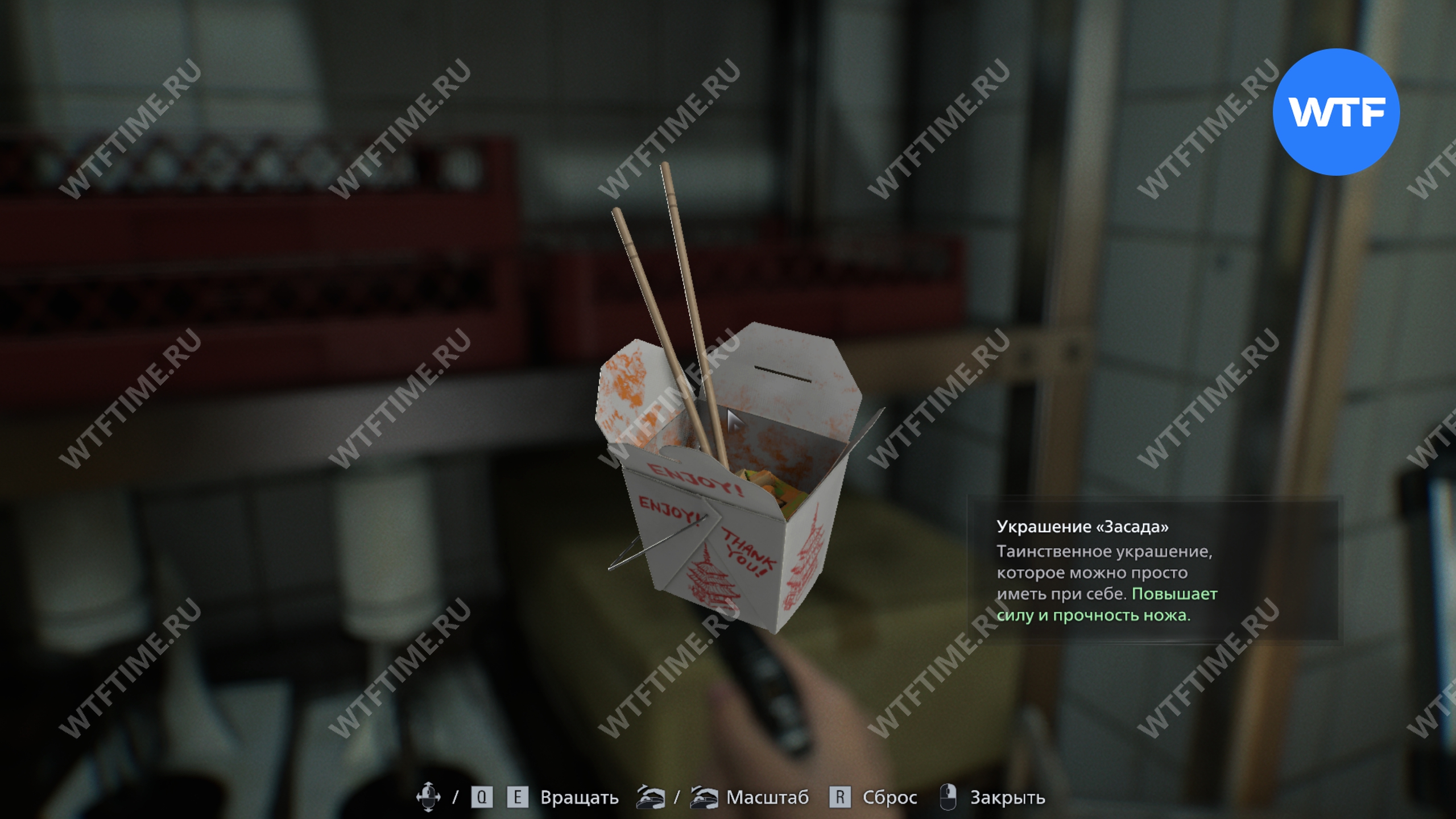 Получив ключ, вернитесь к двери в кладовую и войдите внутрь. Там вы найдете различные припасы, а также украшение «Засада», повышающее силу и прочность ножа. Оно лежит на стеллаже у дальней стены.