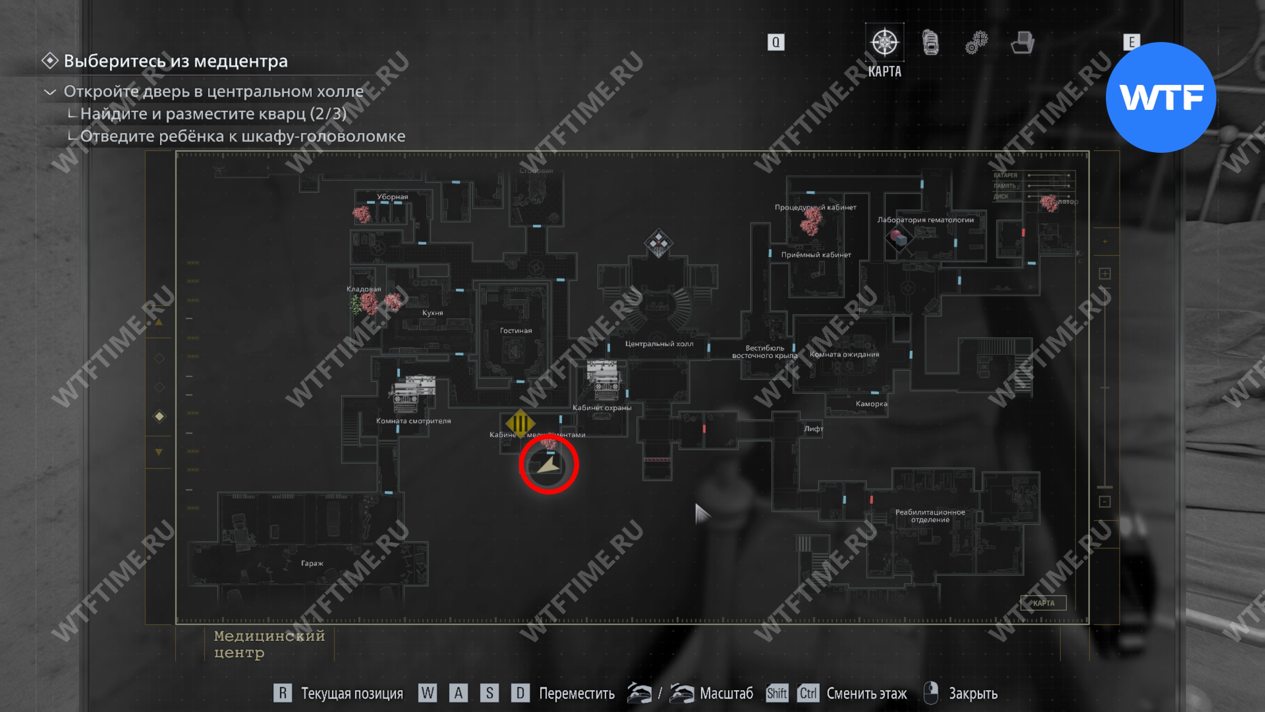 Затем откройте камеру с Эмили и доставьте её к шкафу-головоломке в кабинете руководителя службы безопасности. Если до этого вы не успели расчистить путь, то можете усадить её на диван в кабинете охраны.