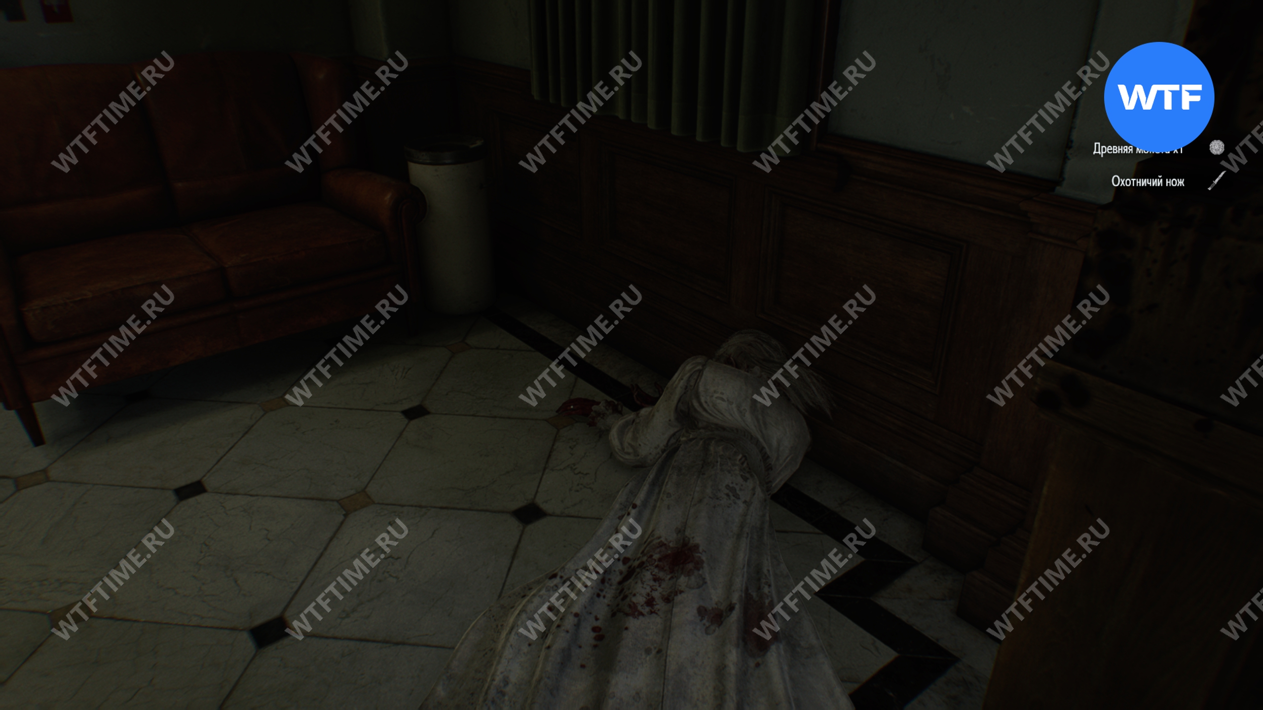 В дальней части конференц-зала вы встретите еще одну поющую зараженную в белом платье. Убейте её, чтобы получить древнюю монету и достижение «Смертельный дуэт».