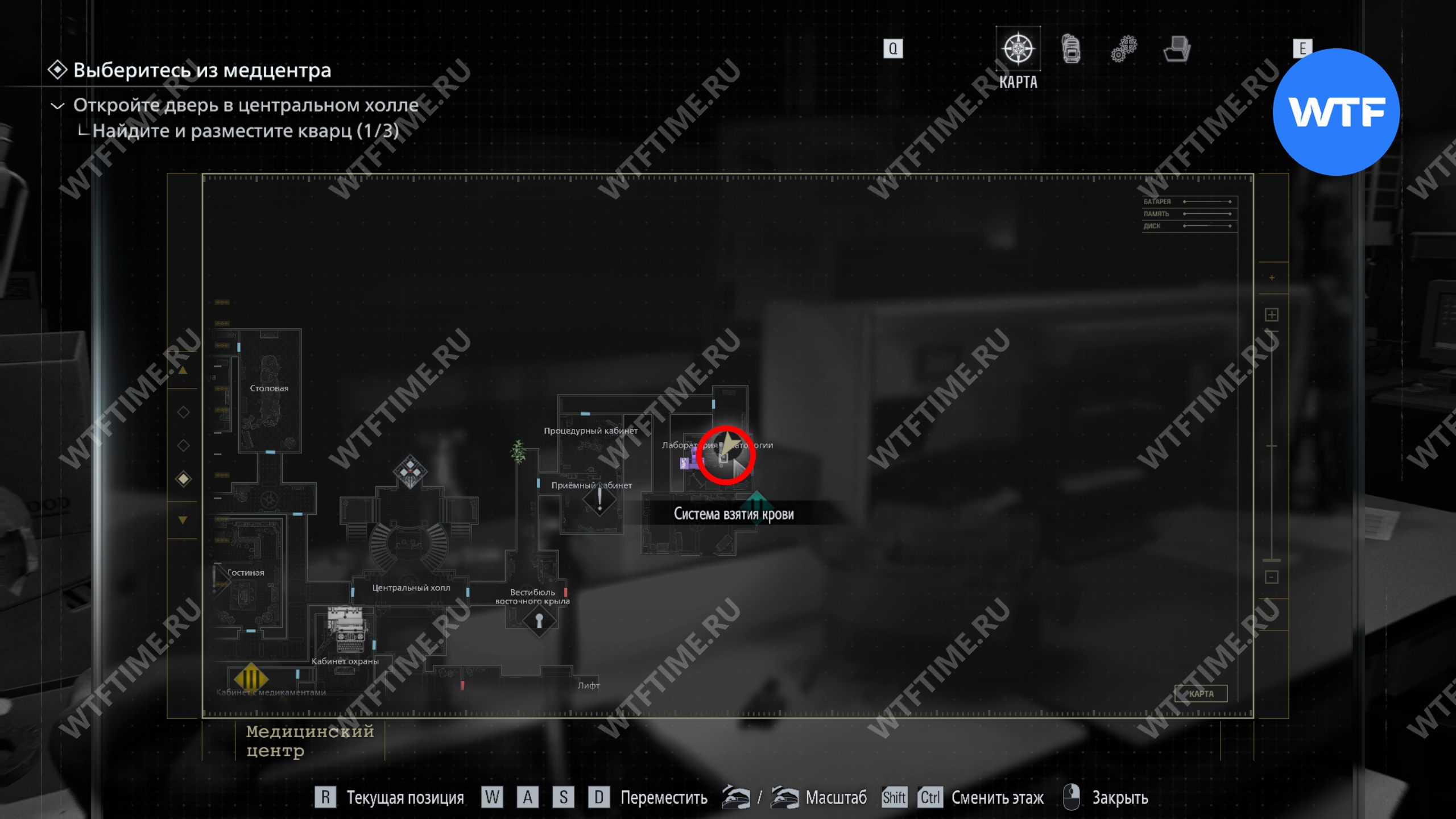Затем вернитесь в лабораторию гематологии и откройте дверь в подсобку при помощи браслета. Там вы найдете запись из дневника Виктора, припасы и пробу крови (реверсивность). Схема анализа показана на последнем скриншоте.