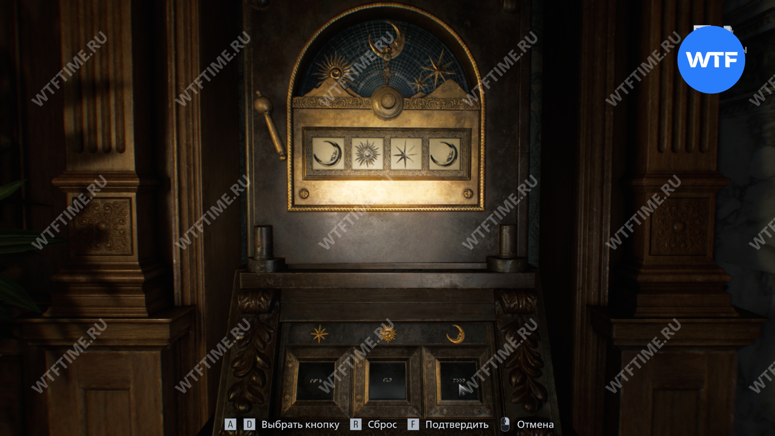 Внутри шкафа в юго-восточном углу приемного кабинета есть запертый сейф. Код к нему вы найдете позже, однако открыть можно уже сейчас. Внутри лежат 3 древние монеты: