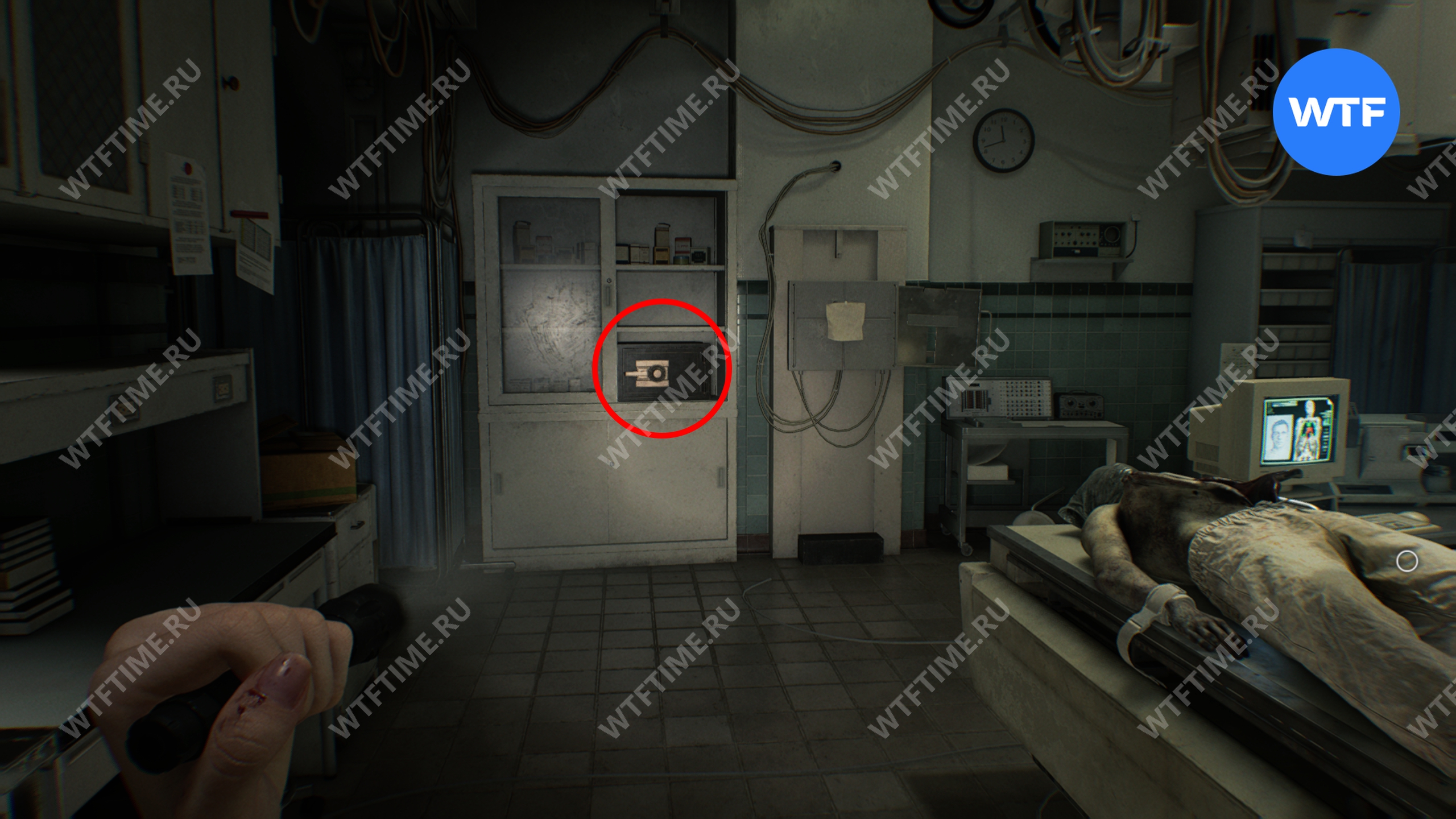 С браслетом вернитесь в кабинет с медикаментами и сначала откройте пустующую камеру. За кроватью вы найдете фигурку мистера Енота.