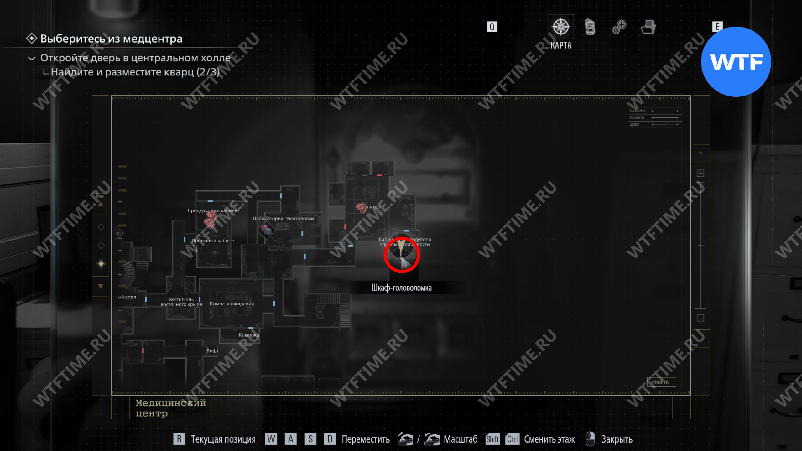 Откройте шкаф-головоломку в кабинете главного исследователя