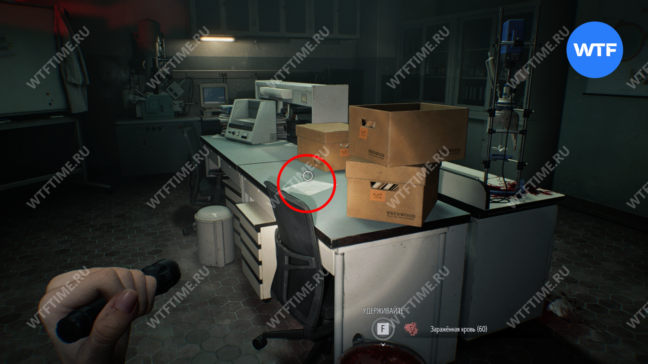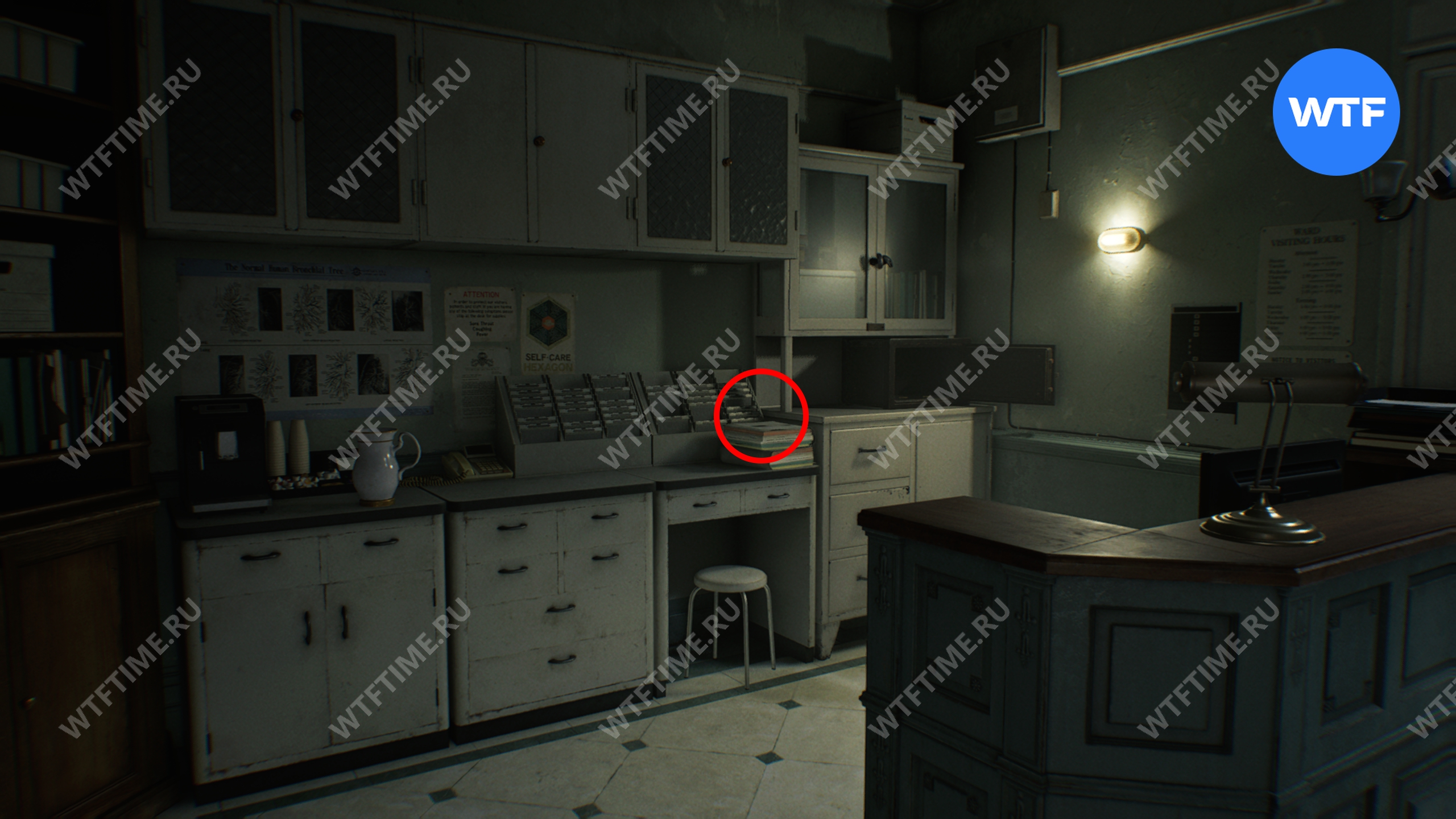 В помещении, где изначально была зараженная, на столе можно подобрать медкарту пациента.