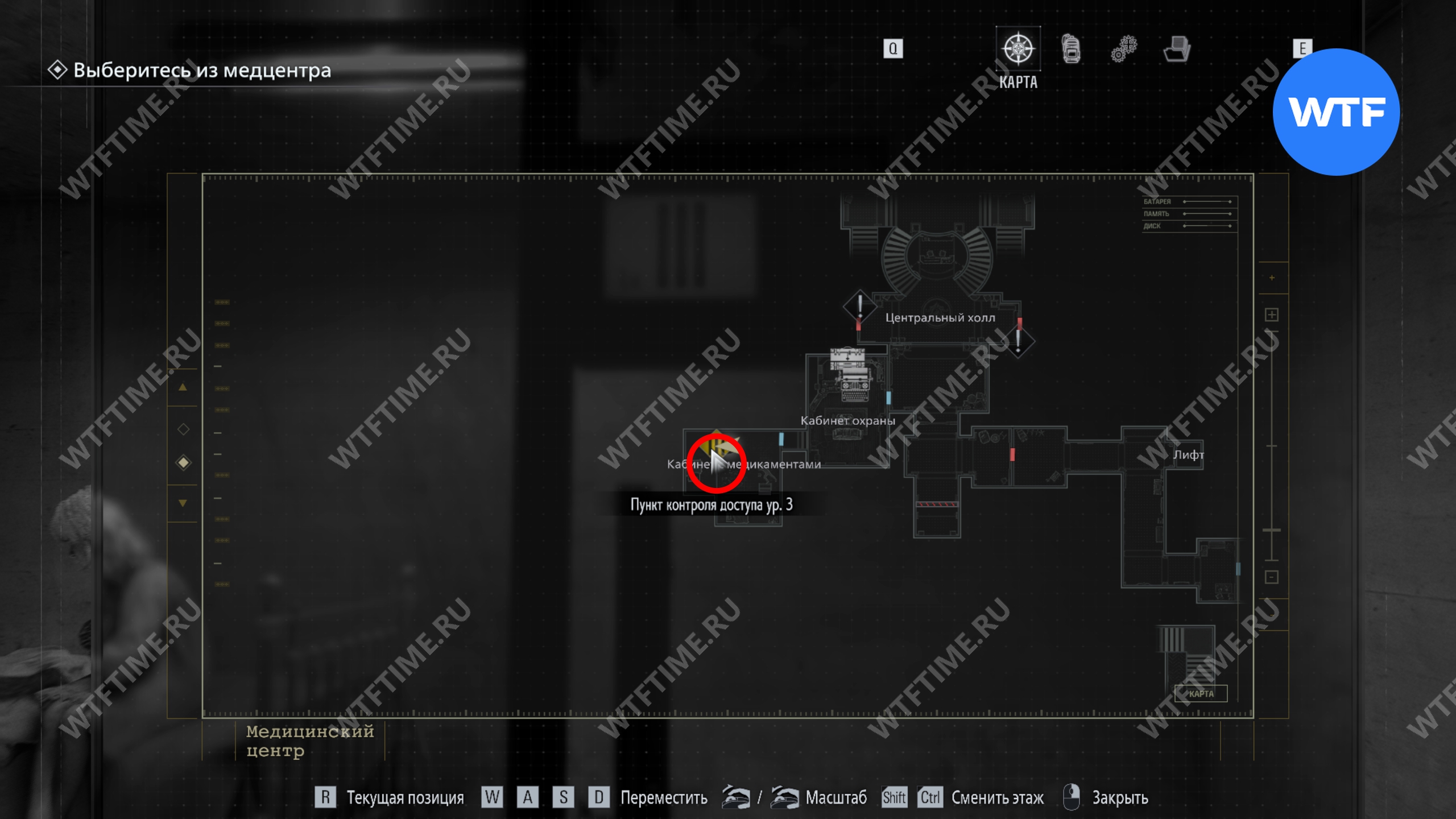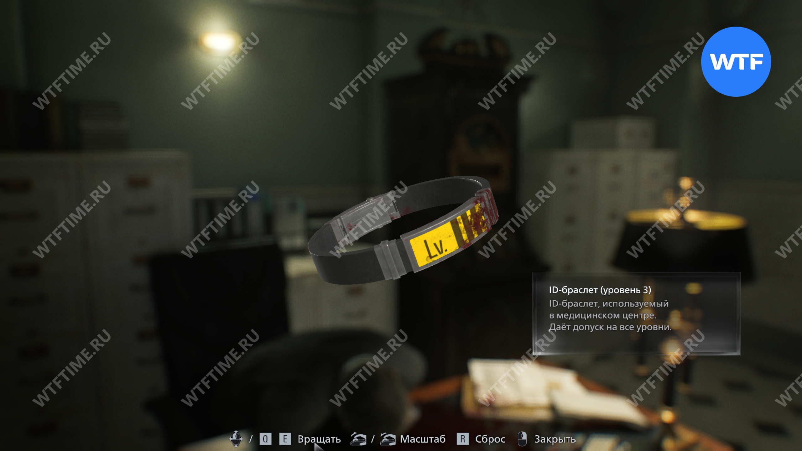 Войдите в кабинет руководителя службы безопасности и изучите блокнот, лежащий на столе, а также шкаф-головоломку. После этого вы автоматически получите ID-браслет (уровень 3).