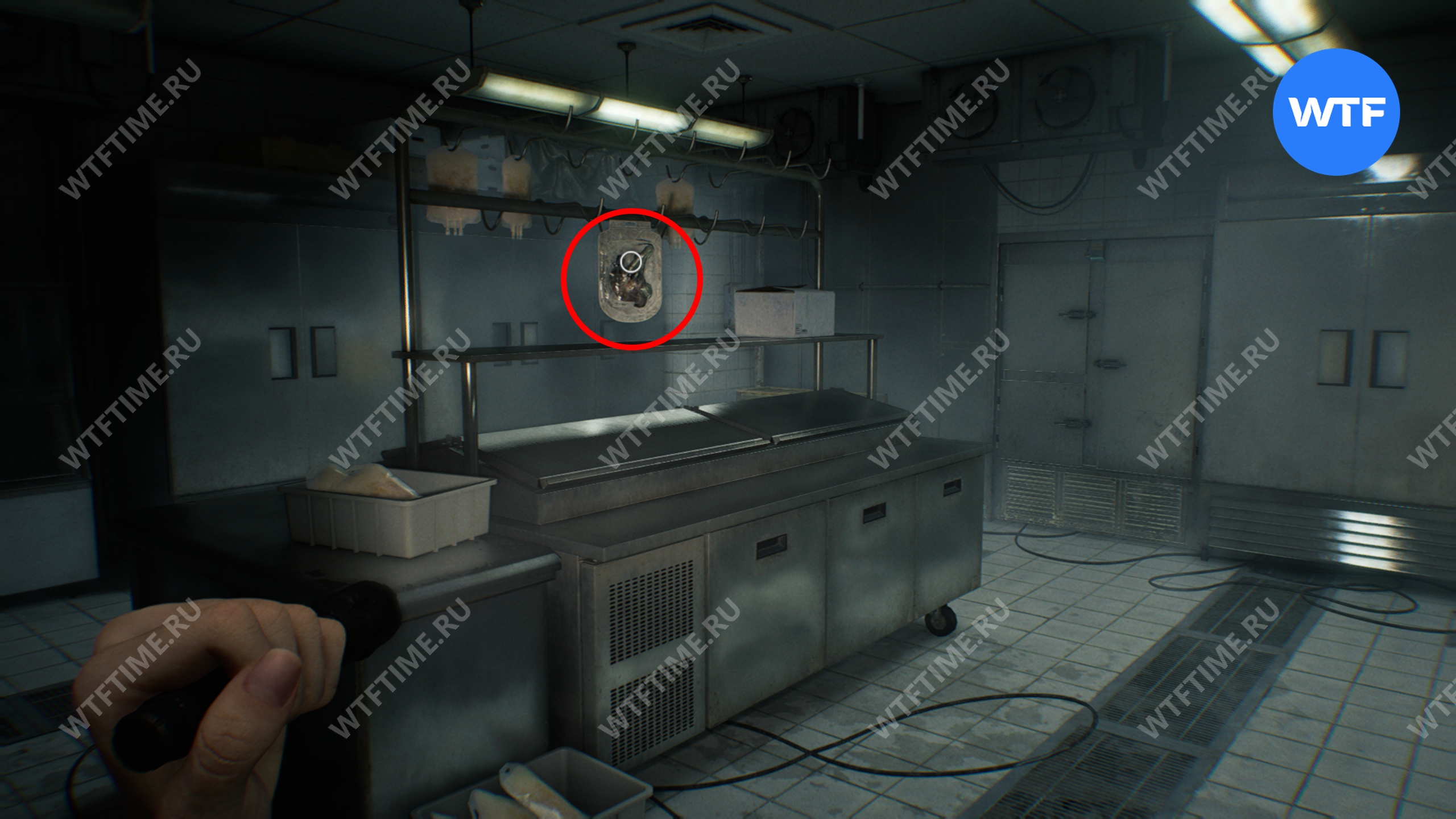 Если вы еще не разобрались с шеф-поваром, то инъектор поможет вам с ним справиться. В этой комнате также лежит труп без органов. Запомните его, позже мы вернемся к этой головоломке.