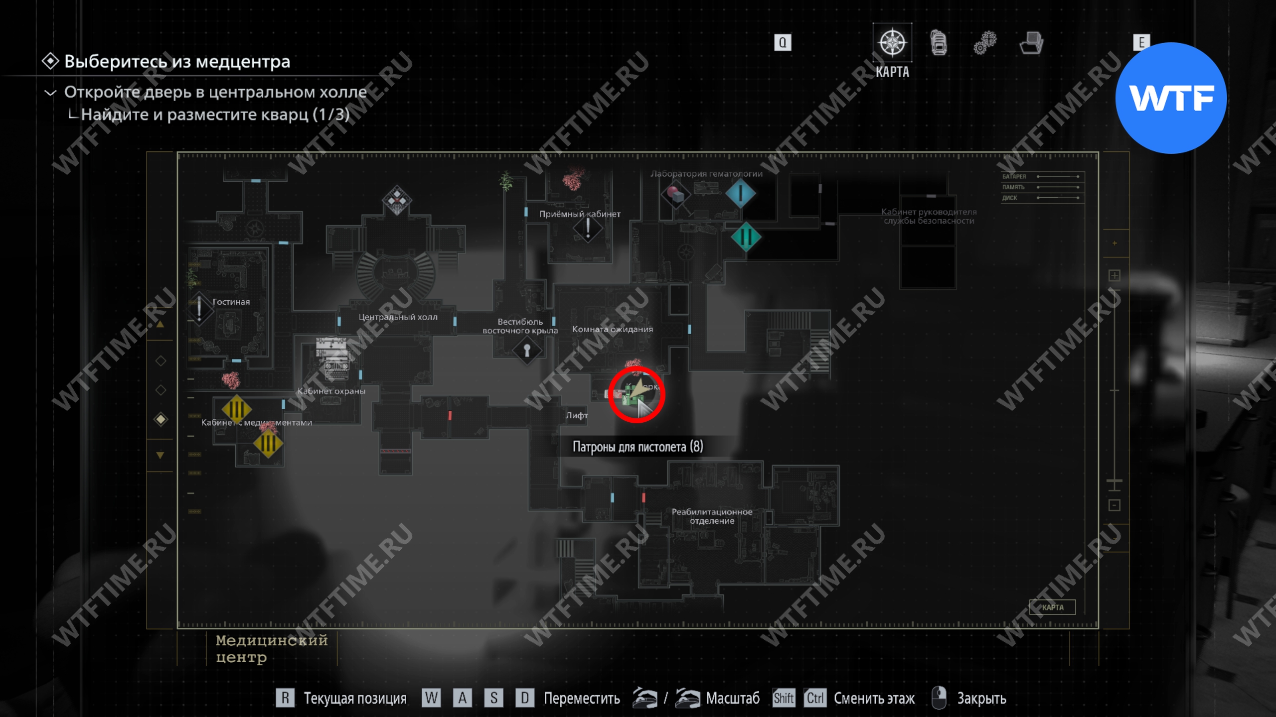 Теперь вернитесь в западное крыло и войдите при помощи браслета в подсобку рядом с регистратурой. Там вы найдете набедренную сумку, которая увеличит ваш инвентарь на 2.