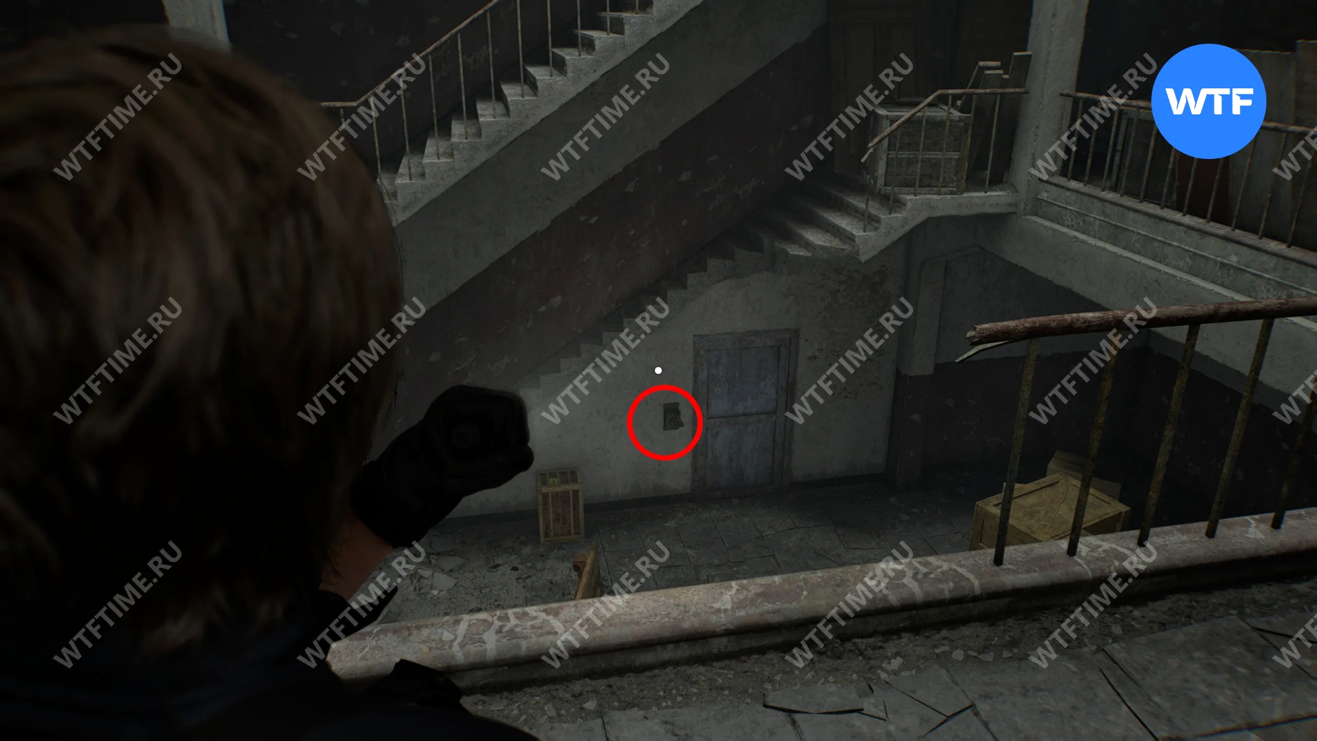 Через балкон пройдите на соседнюю лестничную клетку, а затем спрыгните вниз на первый этаж через сломанные перила. Возле двери вы увидите ржавую рукоятку, которую можно забрать с собой.