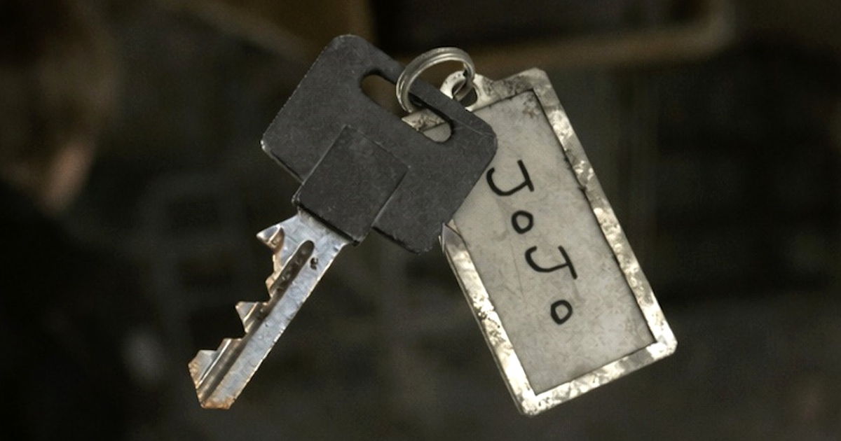 Вернитесь на первый этаж и загляните в командный пункт в северо-западной части здания. Вам нужно забраться на ящик возле доски с заметками, а затем посмотреть в сторону входа. На полке возле телевизора вы найдете ключ от шкафчика с надписью «Jojo».