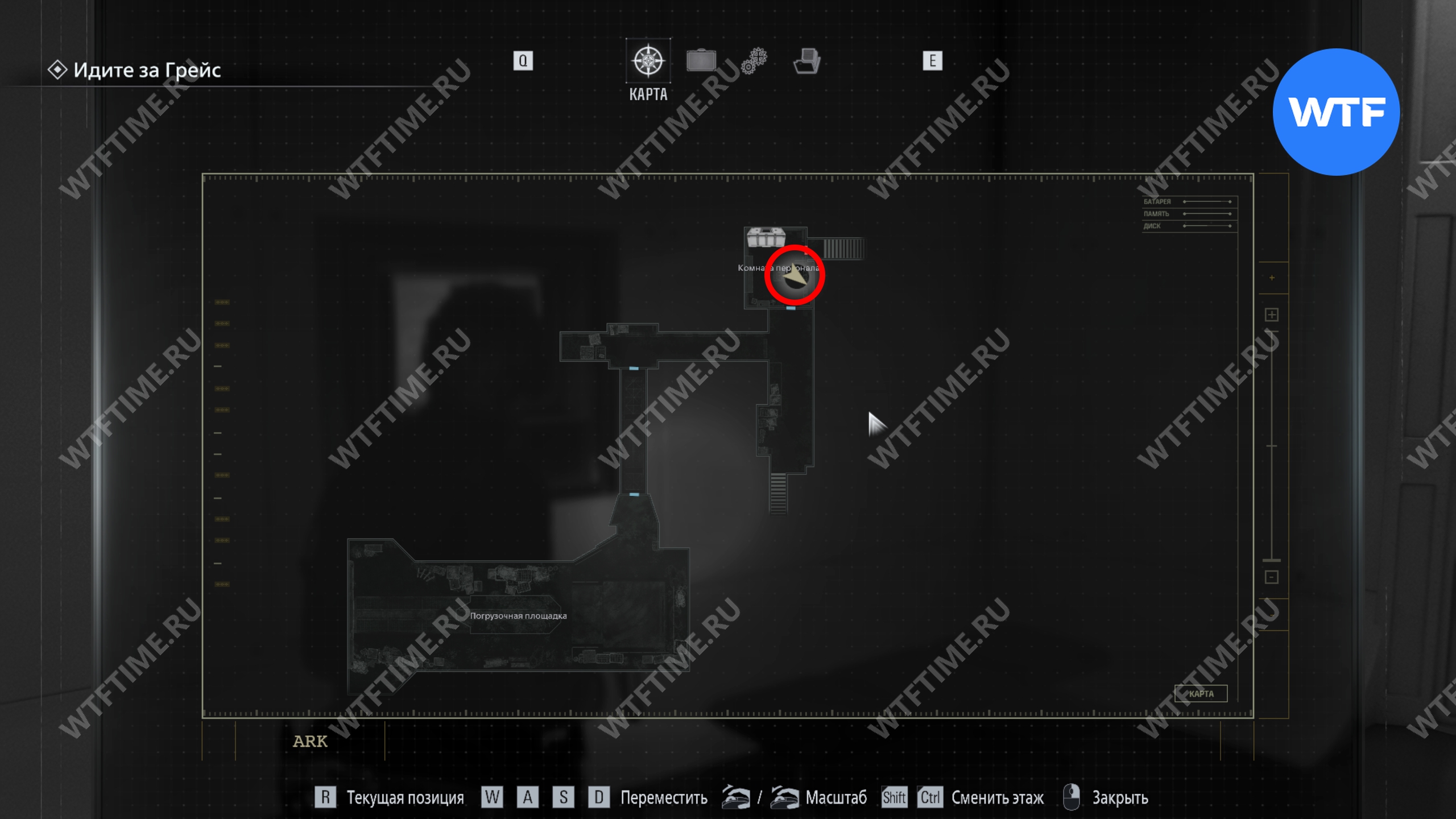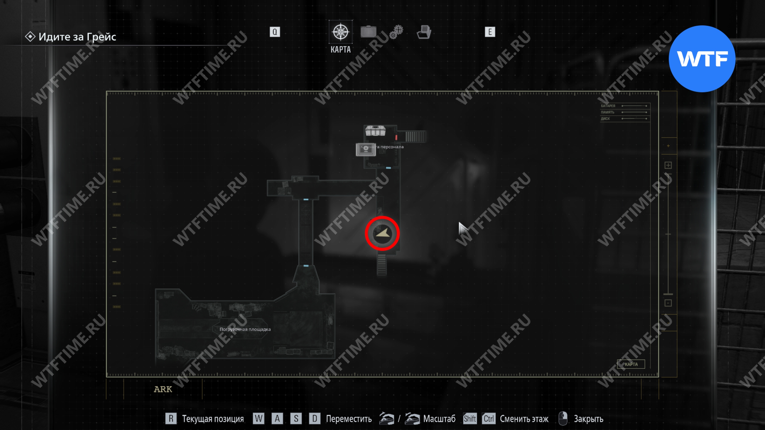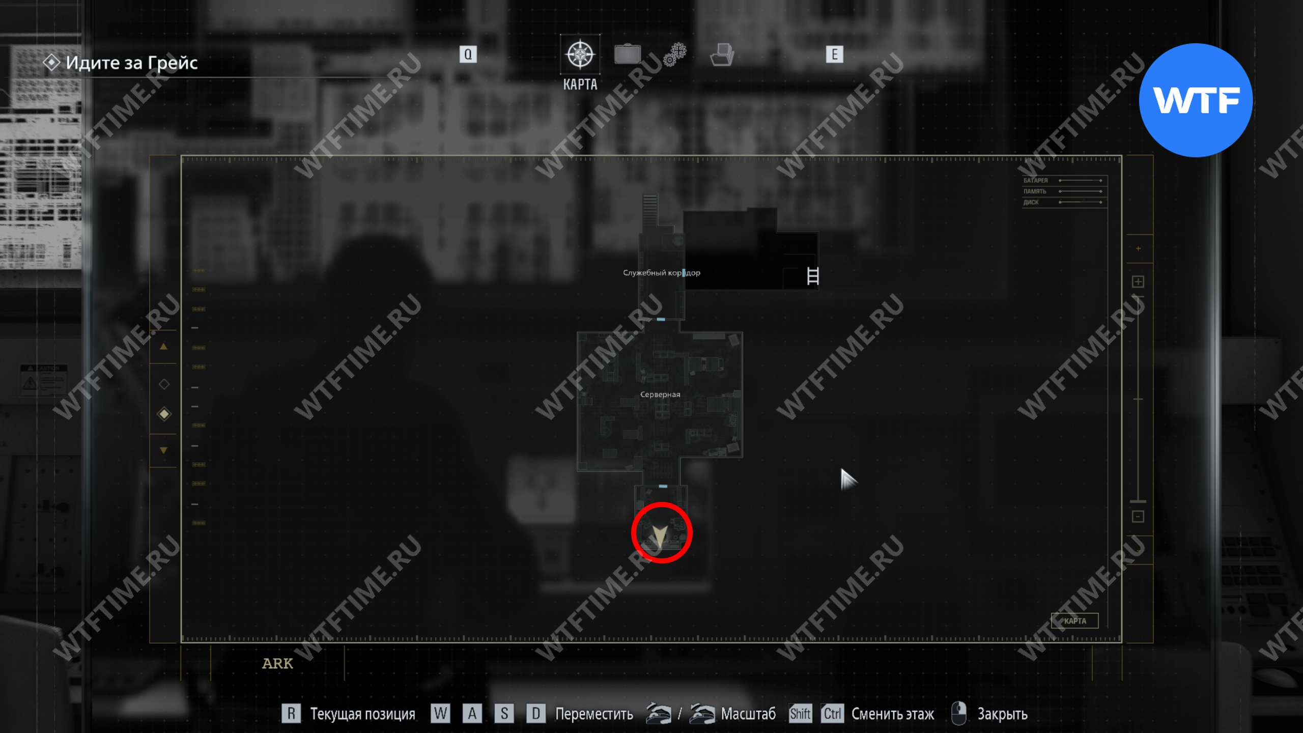 Продолжайте двигаться вперед по вентиляции, а затем по коридорам. Пройдите через зал управления отходами и доберитесь до лестницы в северной части этажа. Она приведет вас в комнату с печатной машинкой.