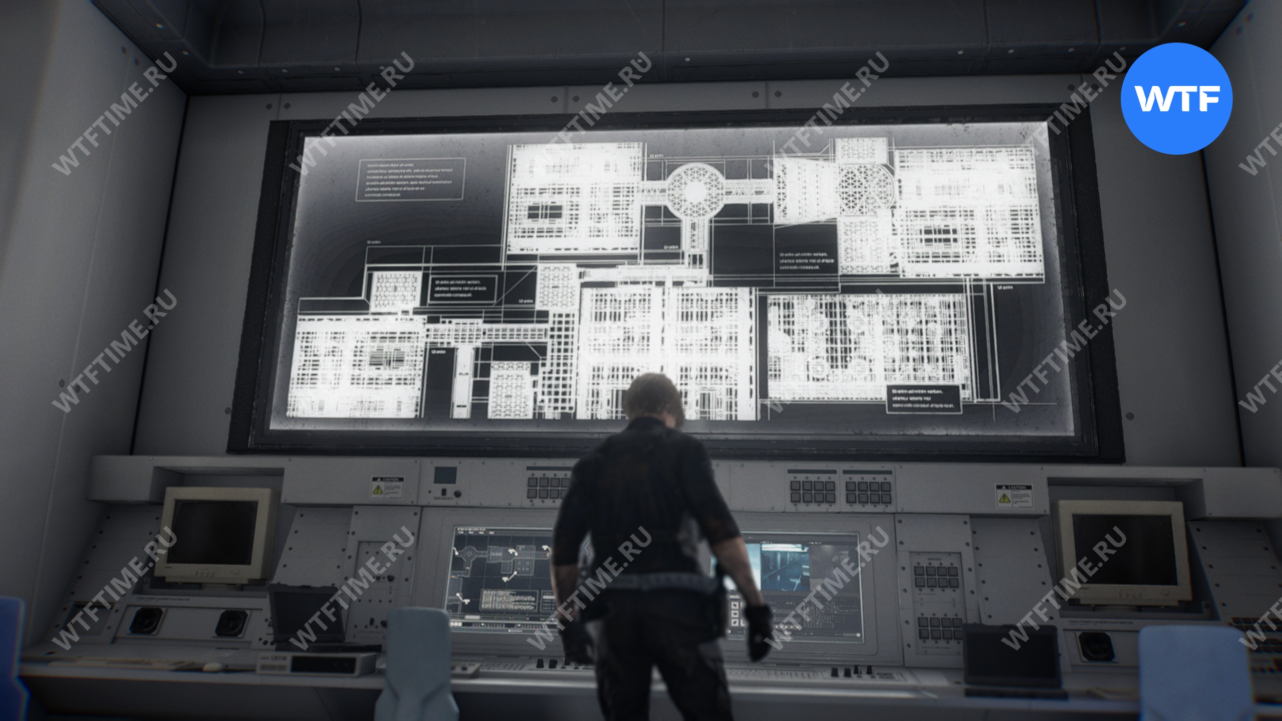 Вернитесь в вестибюль и вставьте две найденные сферы в панель с углублениями — это приведет вас в архив. Прежде чем подходить к большому экрану в центре, проверьте последний монитор у правой стены, чтобы прочитать документ «Журнал доступа: протокол 1-го заседания».