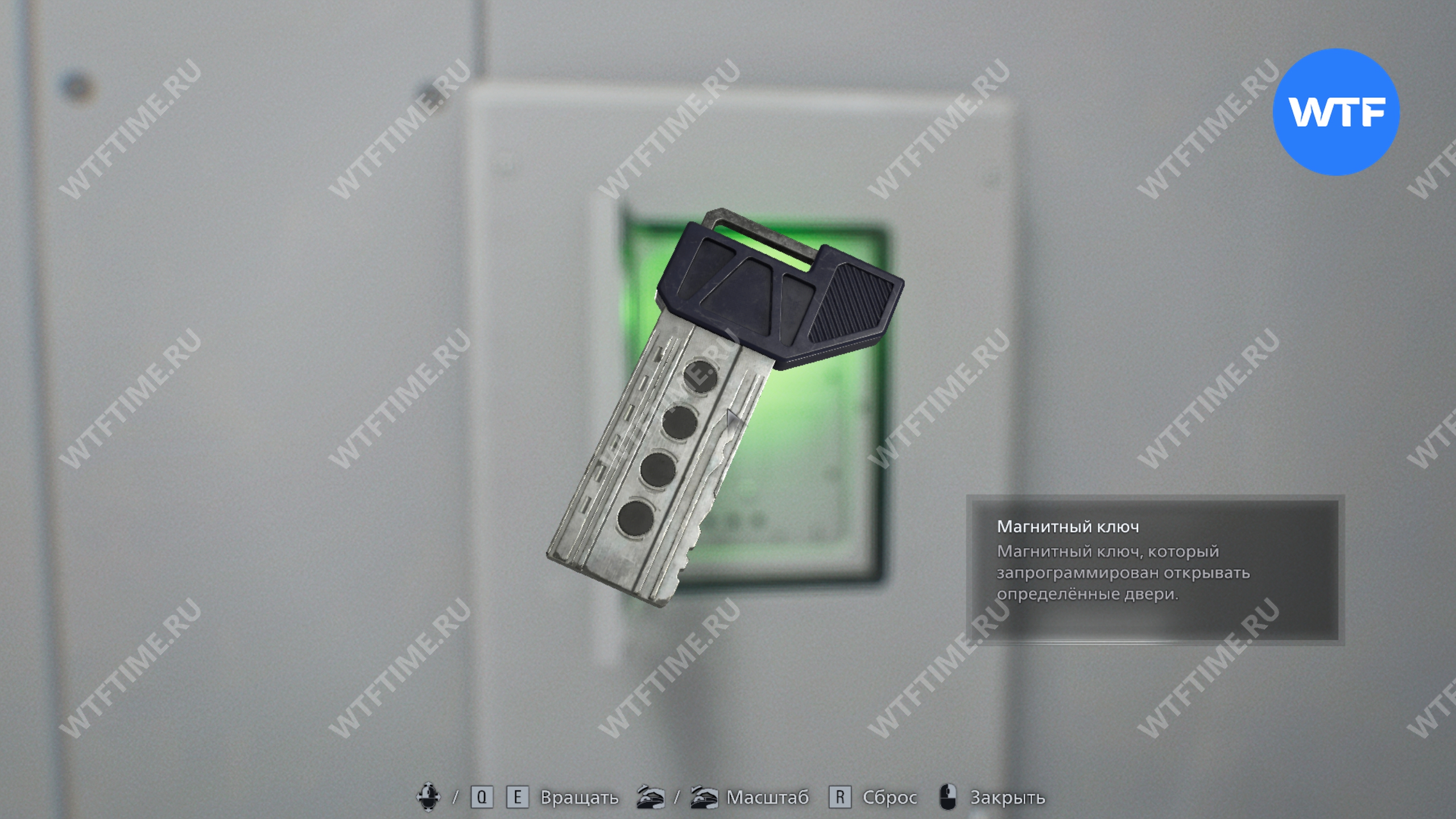 После кат сцены обернитесь и заберите магнитный ключ. Он находится внутри небольшого шкафчика на стене, который будет светиться зеленым.