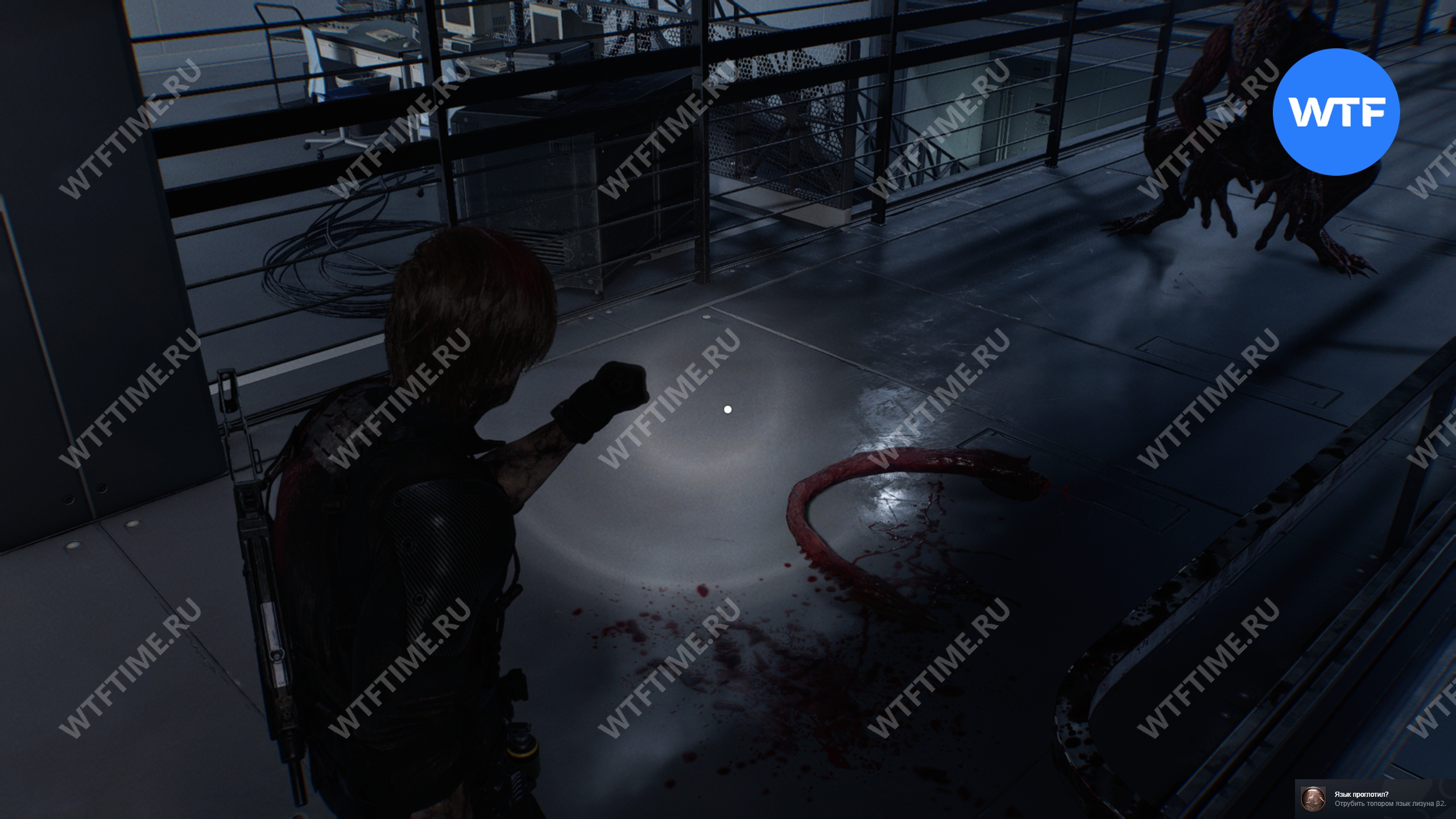 Важно точно рассчитать время удара: вы должны парировать прямо перед тем, как язык вас коснется. Если не получится выбить ачивку тут, то еще несколько лизунов есть в следующей комнате.