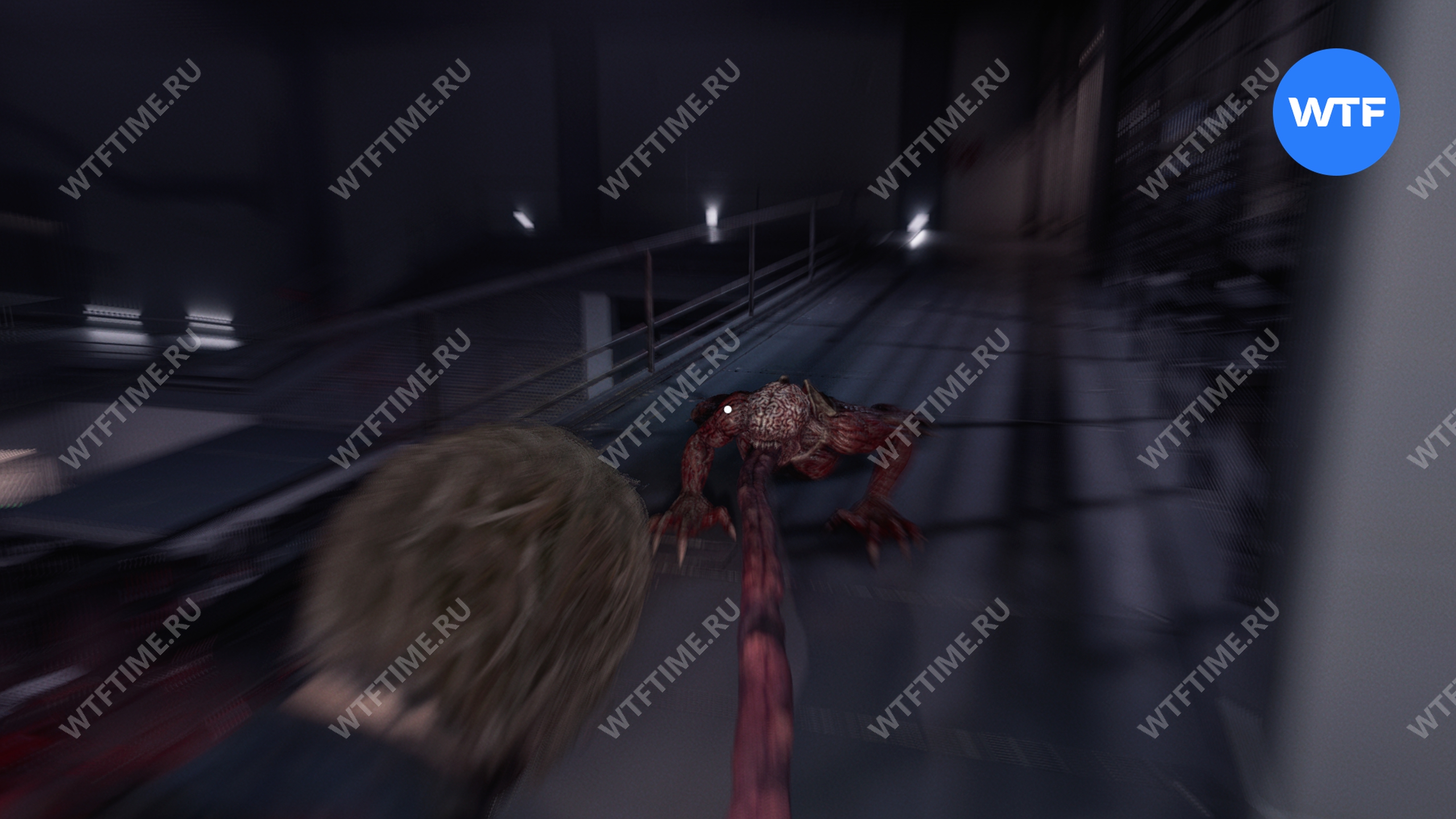 Убейте лизунов, пройдите по мостику, спрыгните вниз и возвращайтесь обратно в комнату ожидания. Здесь на вас нападут еще два лизуна, которые с грохотом разобьют стекло.