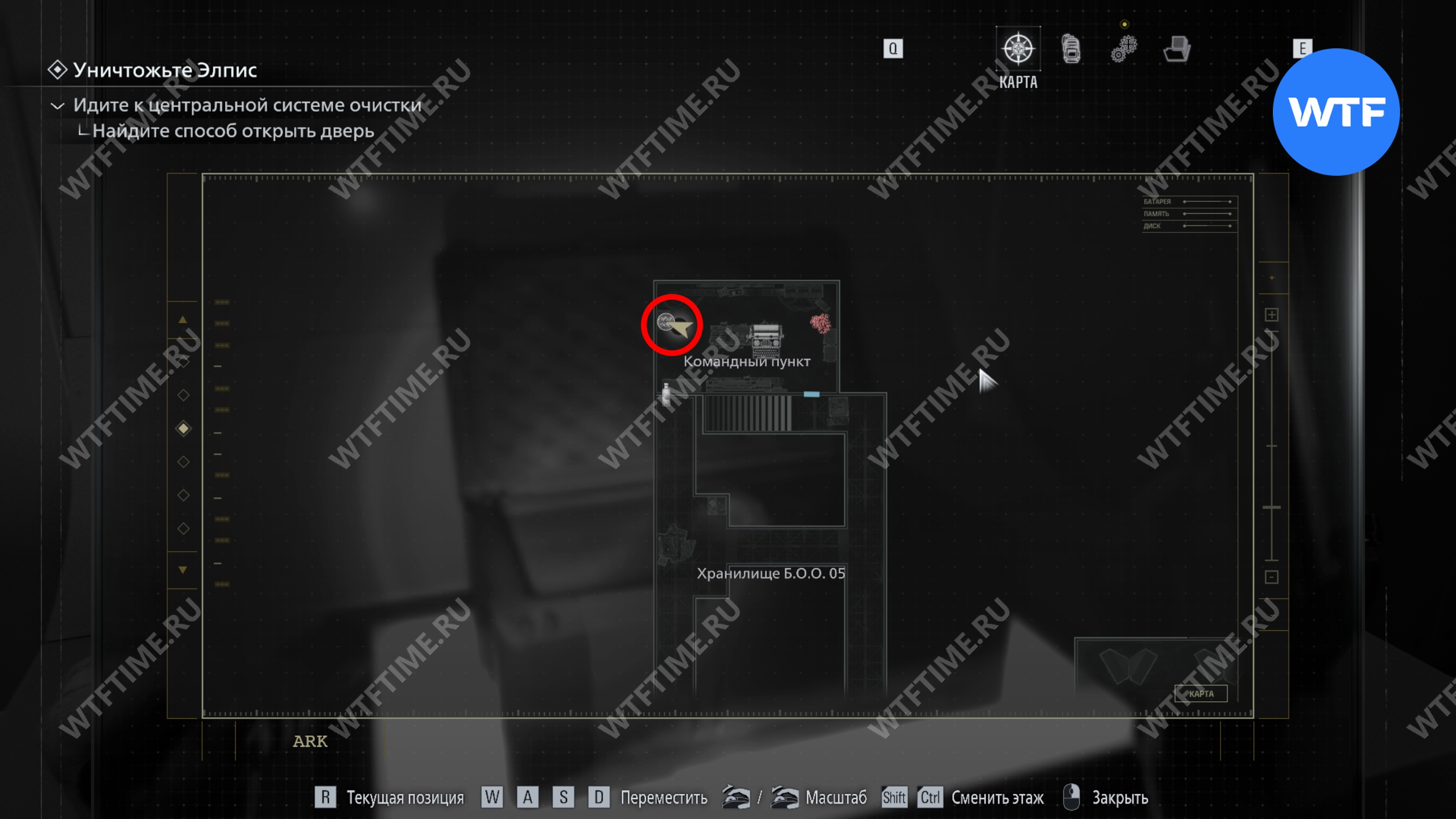 Пройдя через хранилище, вы доберетесь до командного пункта, где сработает сигнализация. Справа от большого монитора можно найти фигурку мистера Енота. Также здесь можно обновить карту ARK с экрана снизу.