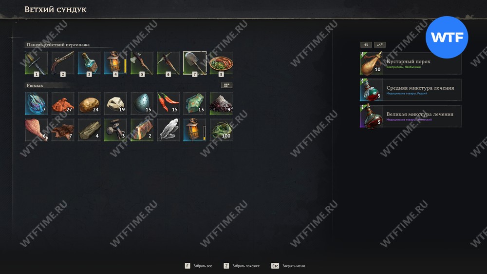 Внутри вы найдете 10 кустарного пороха, 5 средних микстур леченья и 5 великих микстур леченья. Это очень полезный лут, который пригодится вам для исследования других интересных мест на острове.