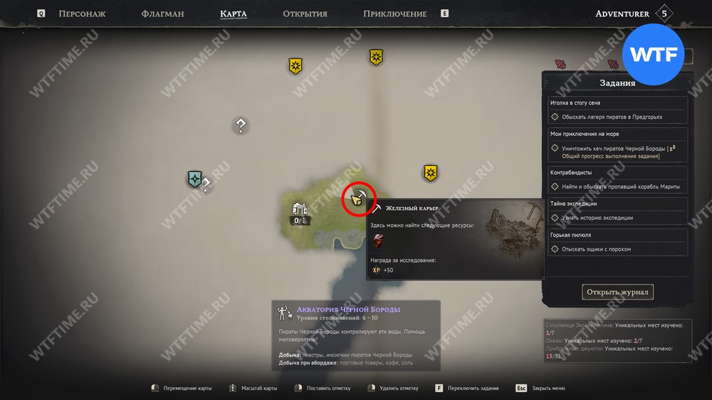 На первом же острове, куда приведет вас следующая сюжетная задача «Иголка в стогу сена», вы сможете отыскать железный карьер — это и есть место добычи горного железа.