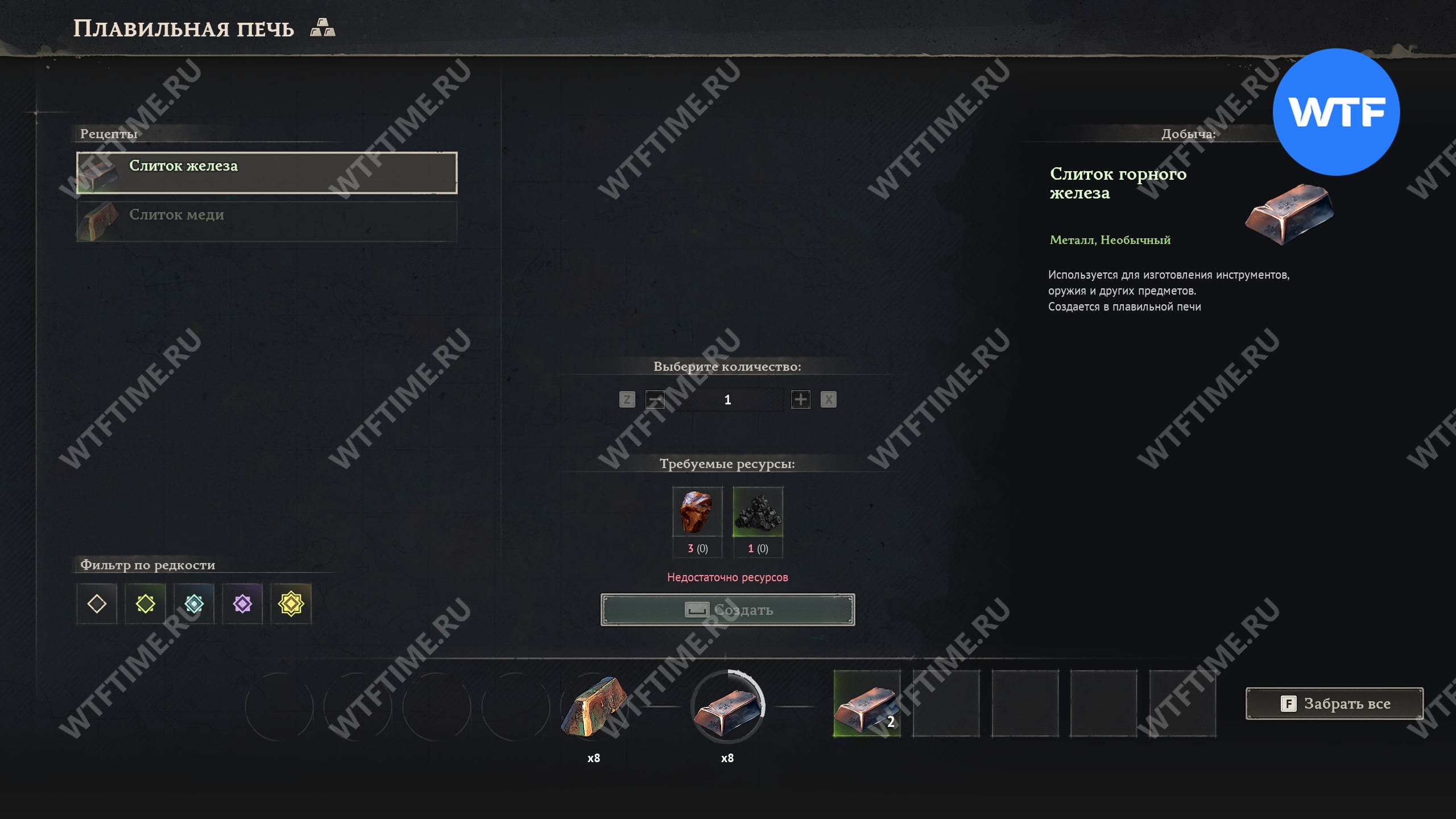 Чтобы использовать горное железо в дальнейшем, вы должны переплавить руду в слитки горного железа. Для этого нужно воспользоваться плавильной печью, которая уже должна быть в вашем лагере.