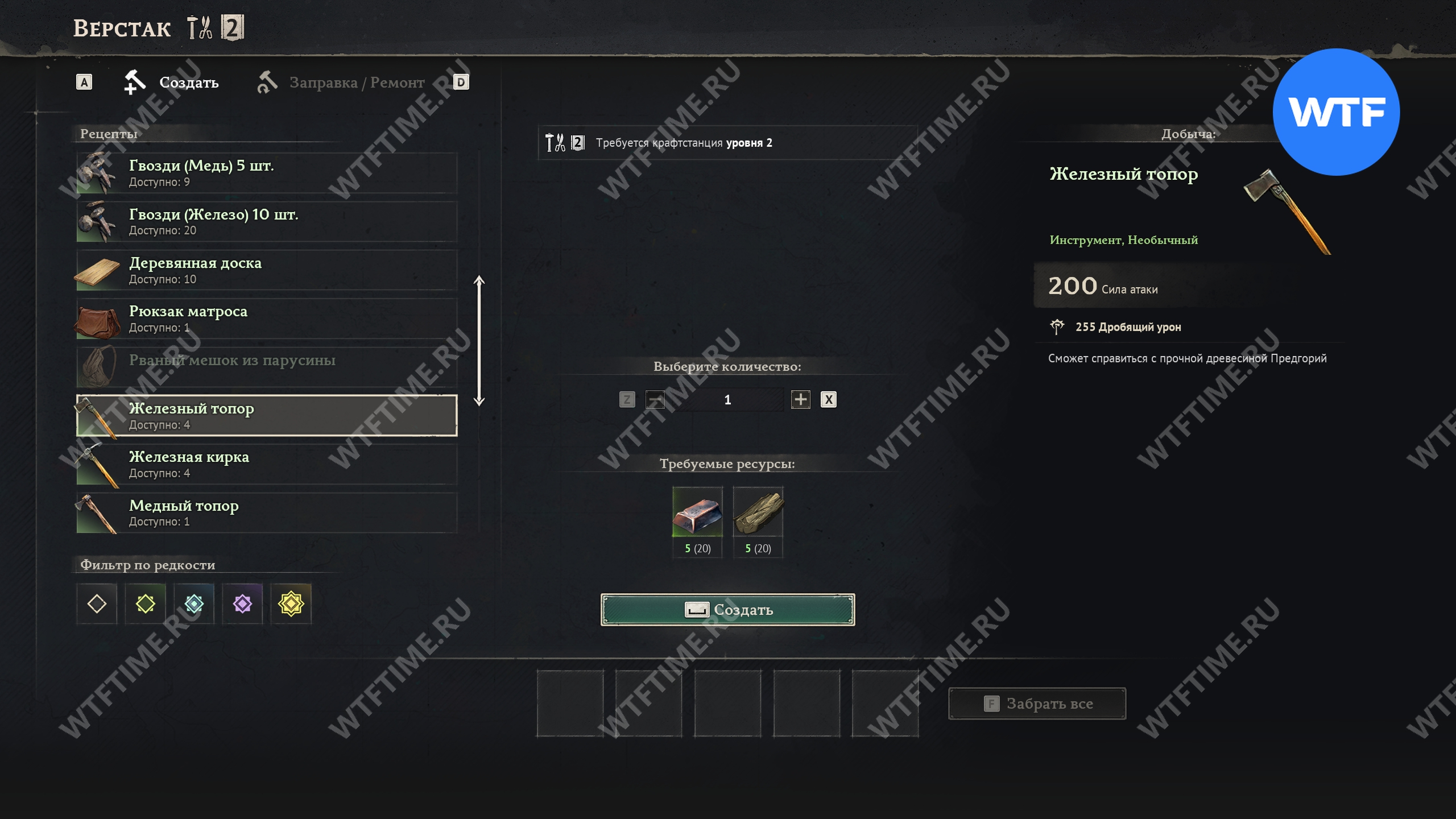 Обратите внимание, что для их создания требуется крафтстанция 2 уровня. Например, вы можете построить стойку для распиливания бревен и улучшить свой верстак, если еще не сделали этого ранее.