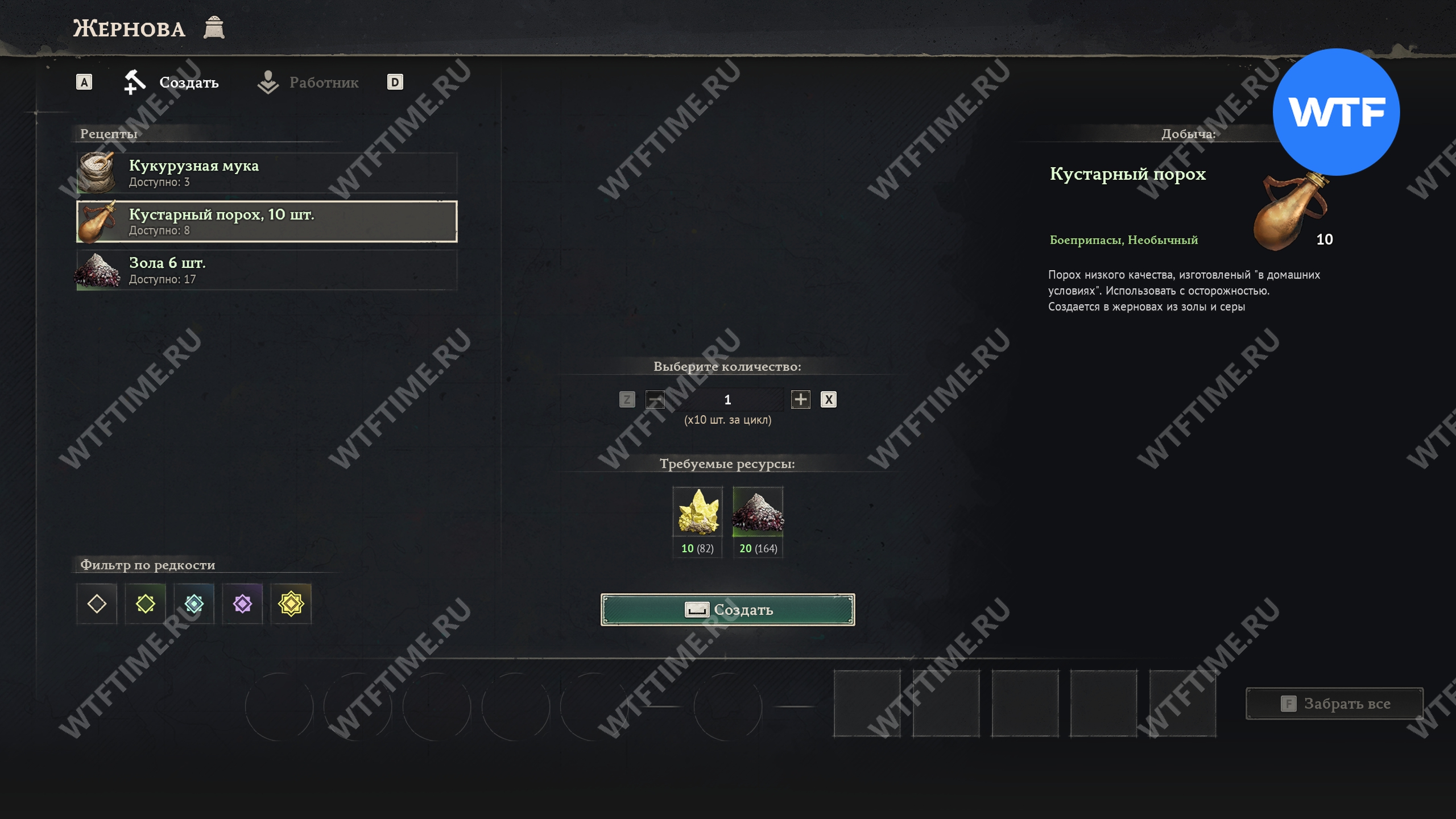 После строительства жерновов вы сможете самостоятельно изготавливать кустарный порох, а также муку, которая пригодится вам для некоторых кулинарных рецептов.