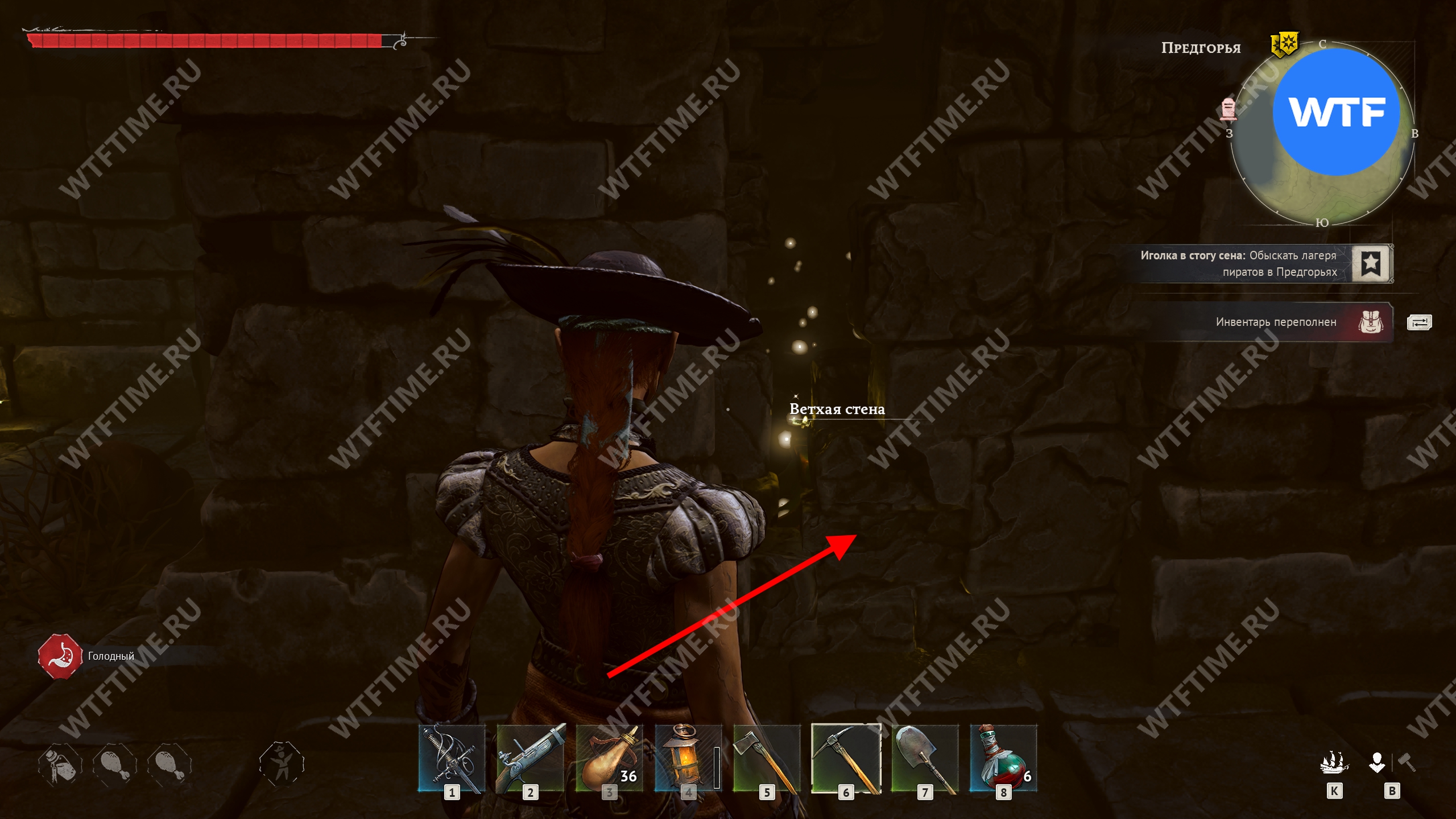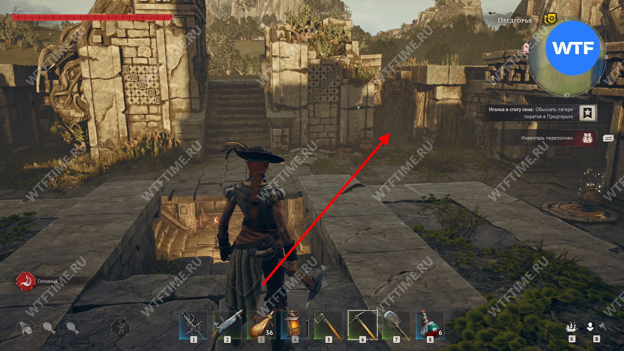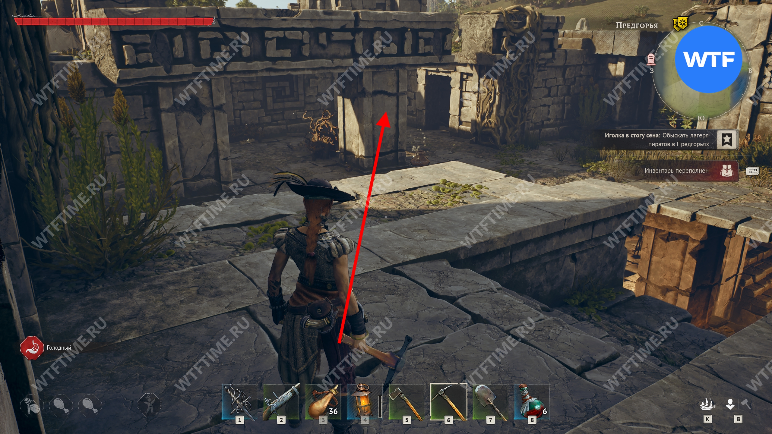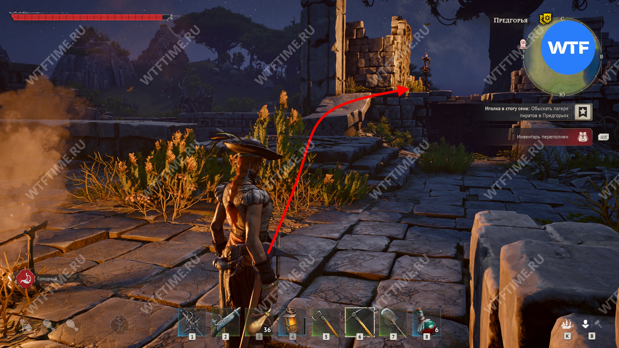 Чтобы вернуться обратно наверх, можно срубить колючие кусты и воспользоваться деревянной лестницей в углу. Вы также можете перейти в режим строительства и построить лестницу самостоятельно.