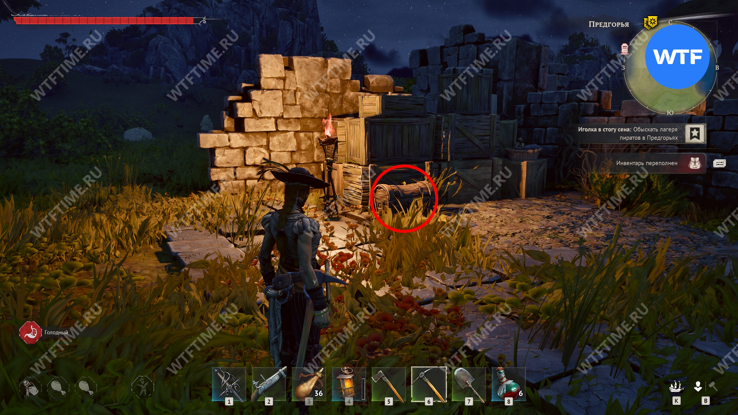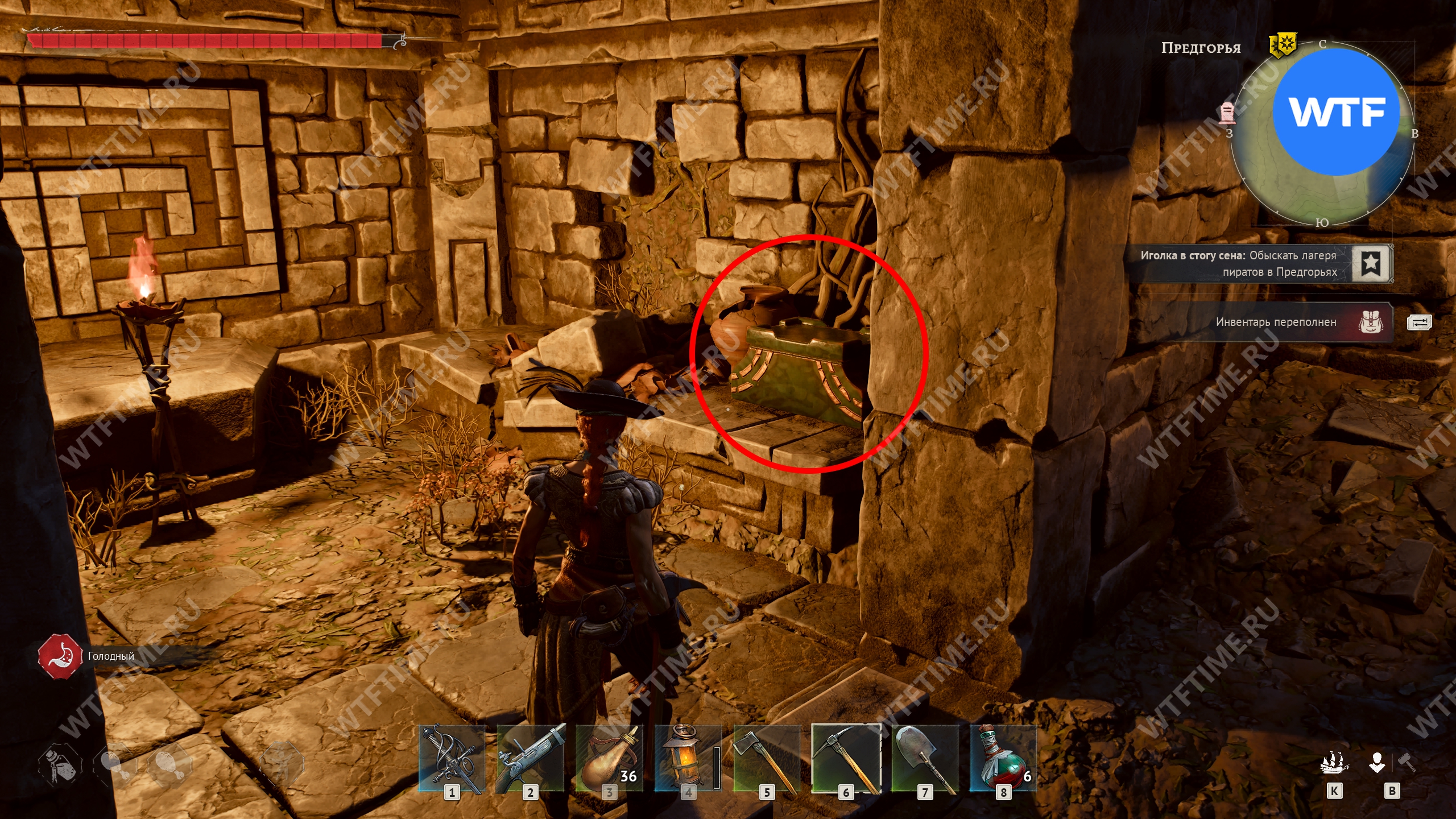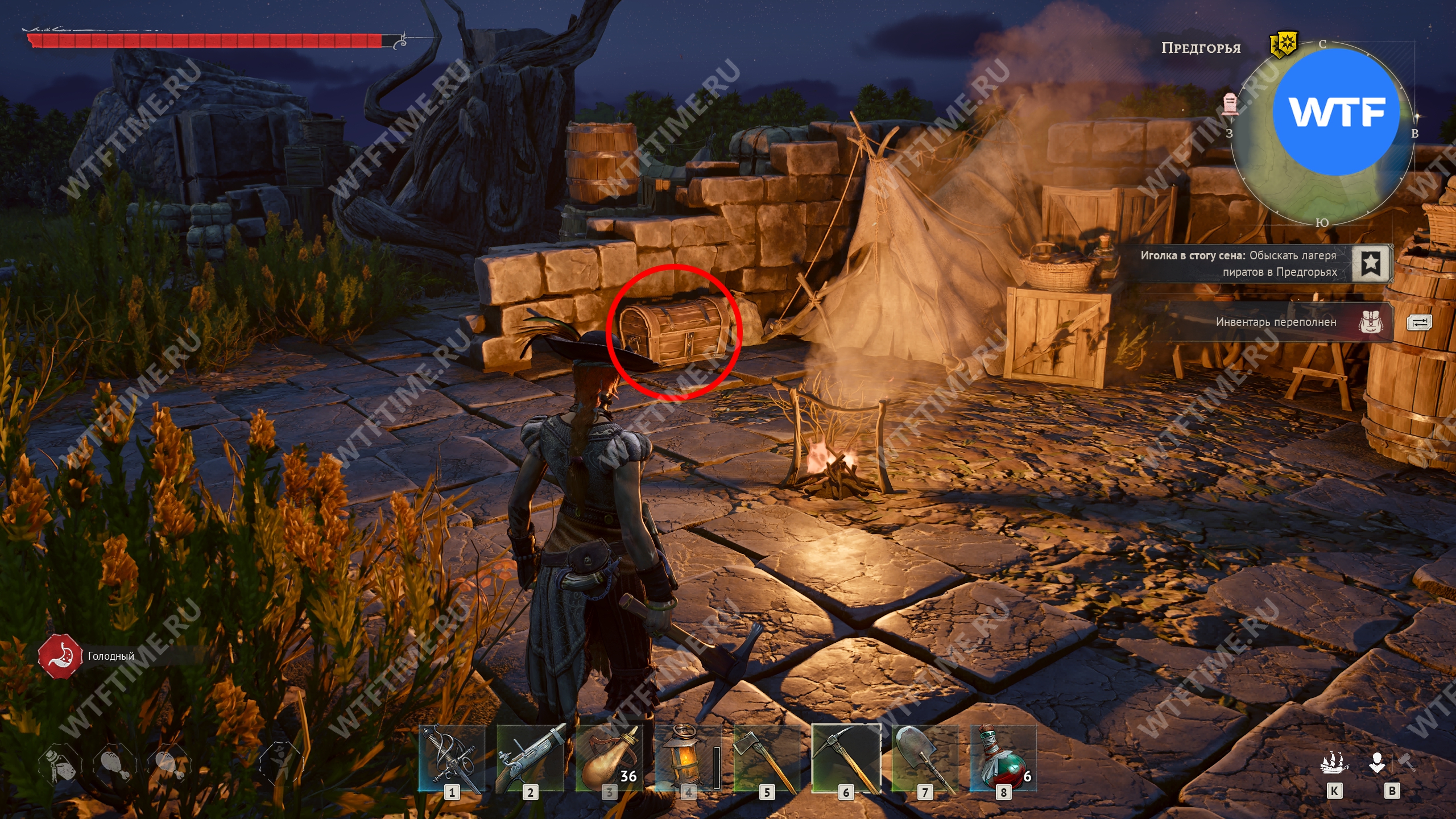 Теперь обойдите эту полуразрушенную стену. Второй сундук будет стоять с обратной стороны, слева от стола и палатки, возле небольшого костра.