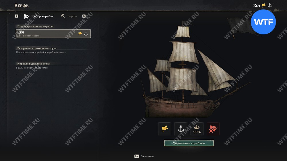 Свой самый первый корабль — кеч — вы получаете после завершения сюжетного задания «Мне нужна лодка побольше». Это также открывает для вас строительство верфи и корабельной мастерской, где вы можете заниматься его оснащением.
